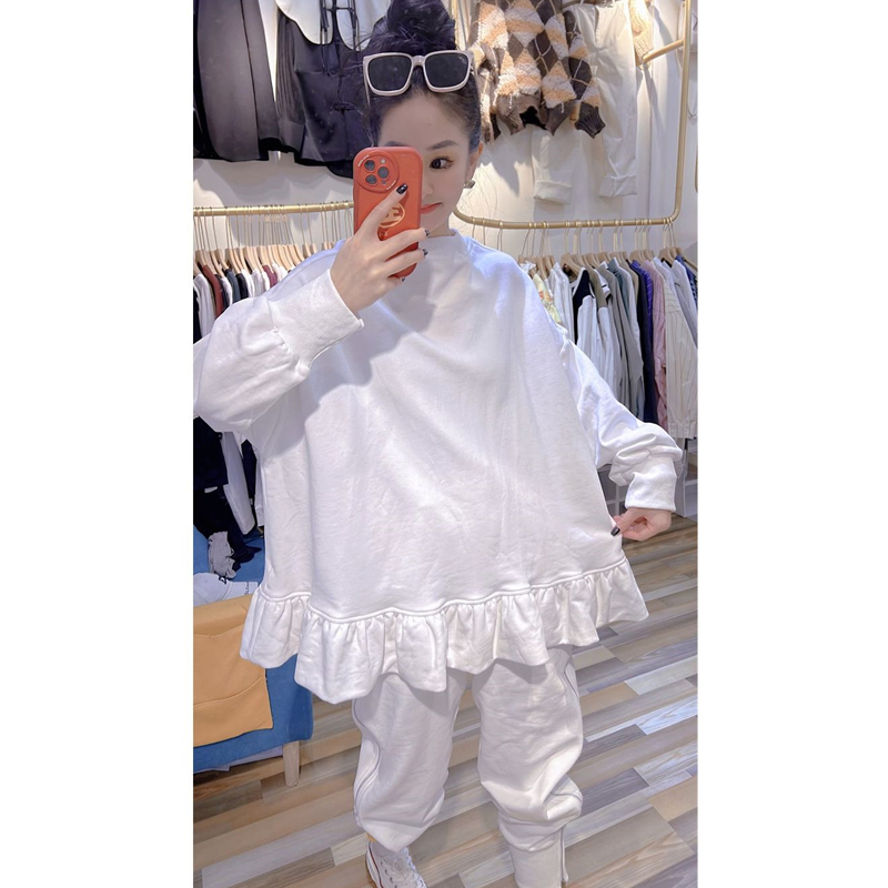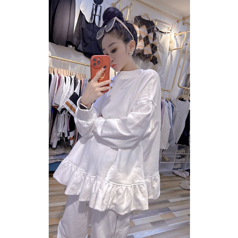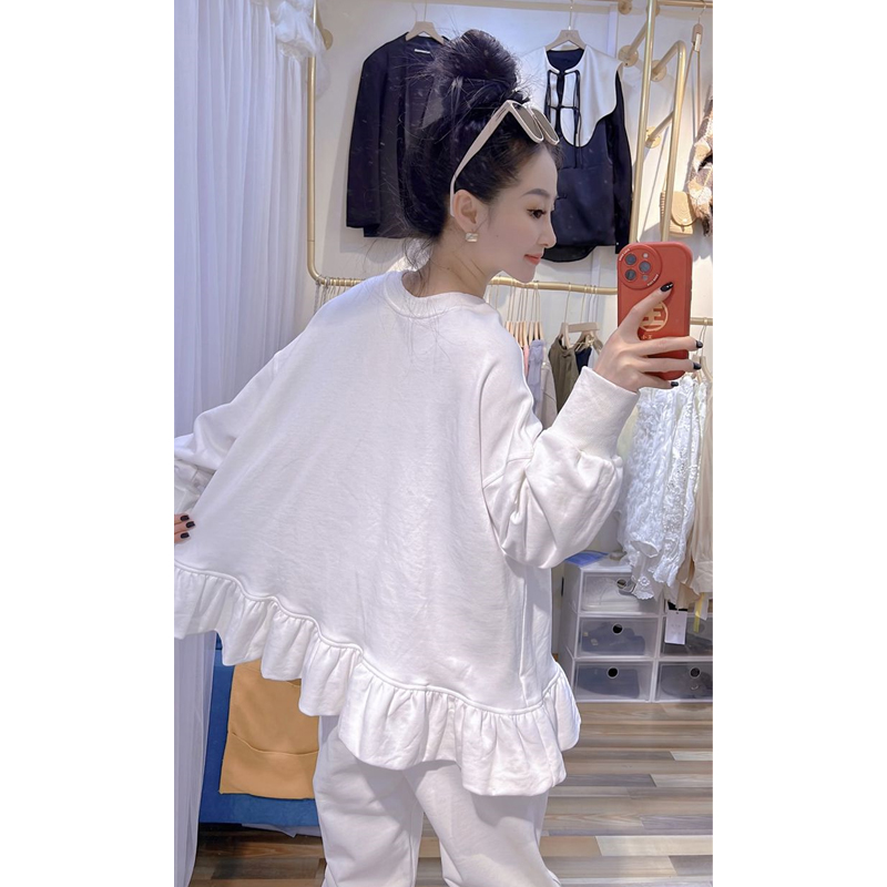 1.00 Kg-150.00 kg Big Woman Plus Size Spring and Autumn Ruffles White Casual Sweatshirt Female Easiest for Match Loose Western Style Tops Fashion