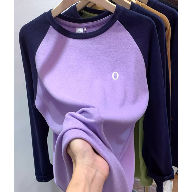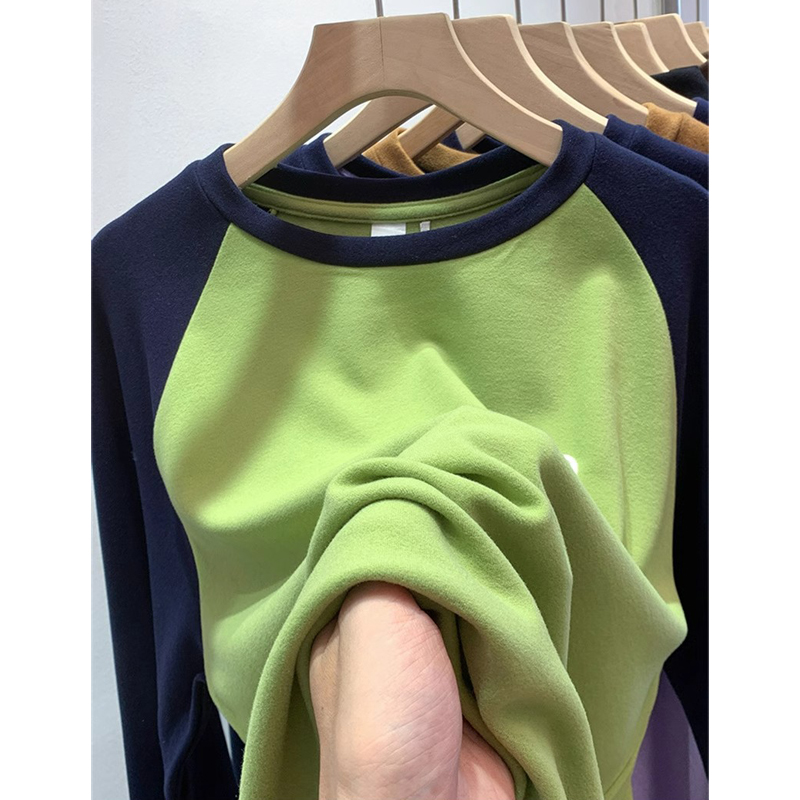 1.00 Kg-150.00 kg Contrast Color Dralon Bottoming Shirt for Women Fall and Winter New Arrival Thickened Inner Wear Outer Wear Long Sleeves Loose Plus Size Tops