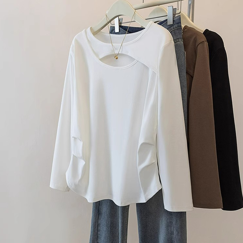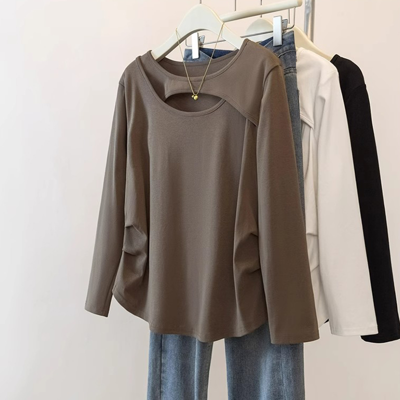 1.00 Kg-150.00 kg plus Size Hollow-out Long Sleeves T-shirt Female Autumn and Winter New Arrival Plus Size Ladies Slim Looking Belly Covering Asymmetrical Inner Wear Blouse