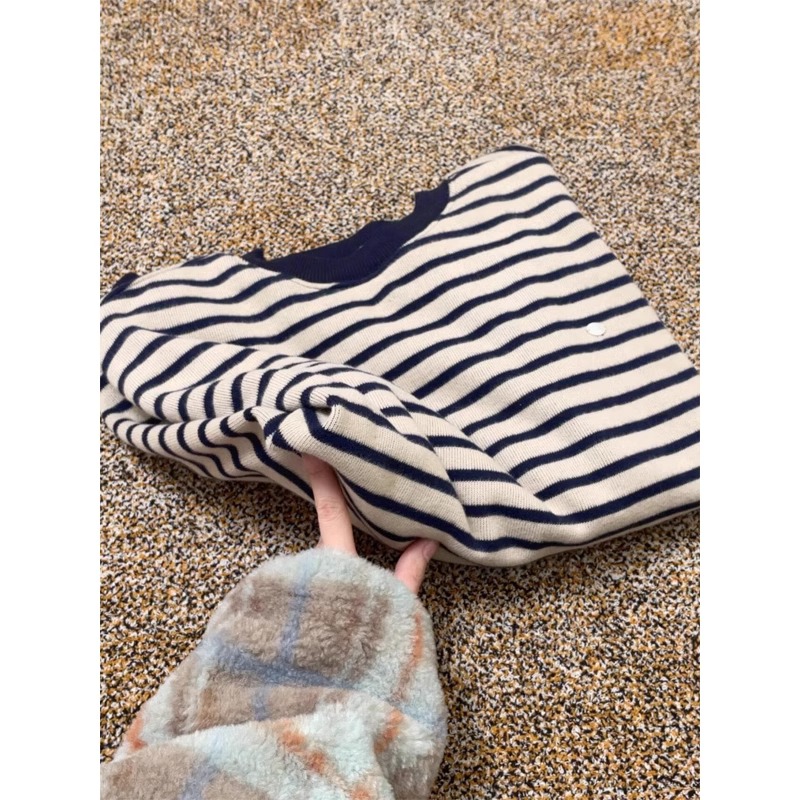 1.00 Kg-150.00 kg Plus Size Stripes round Neck Sweatshirt Female Spring & Fall New Arrival American Retro Chubby Girl Loose Long Sleeve Top Tide