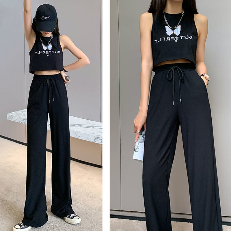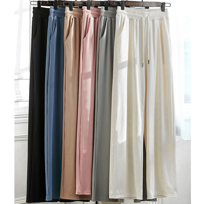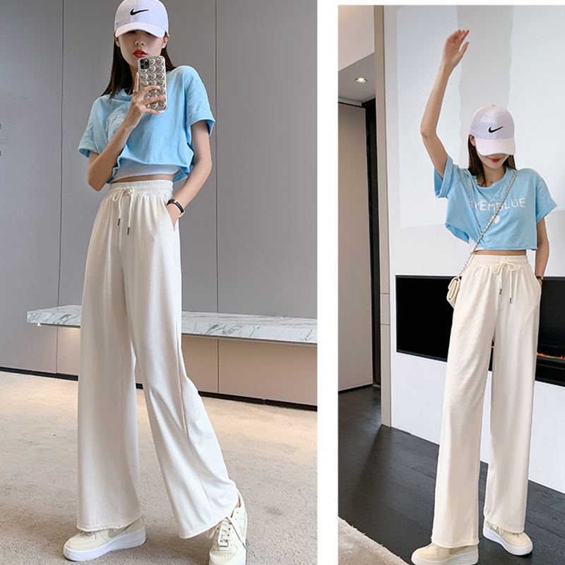 100-150kg Chubby Girl Slimming High Waist Draping Wide-Leg Pants, Spring/Autumn Plus Size Straight Floor-Length Pants