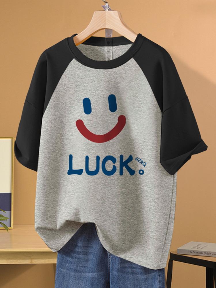 100.00kg Plus Size Ladies Raglan Sleeve T-Shirt Women's Short Sleeve 2025 Summer Stylish Small Shoulder Plus Size Loose Top Wear
