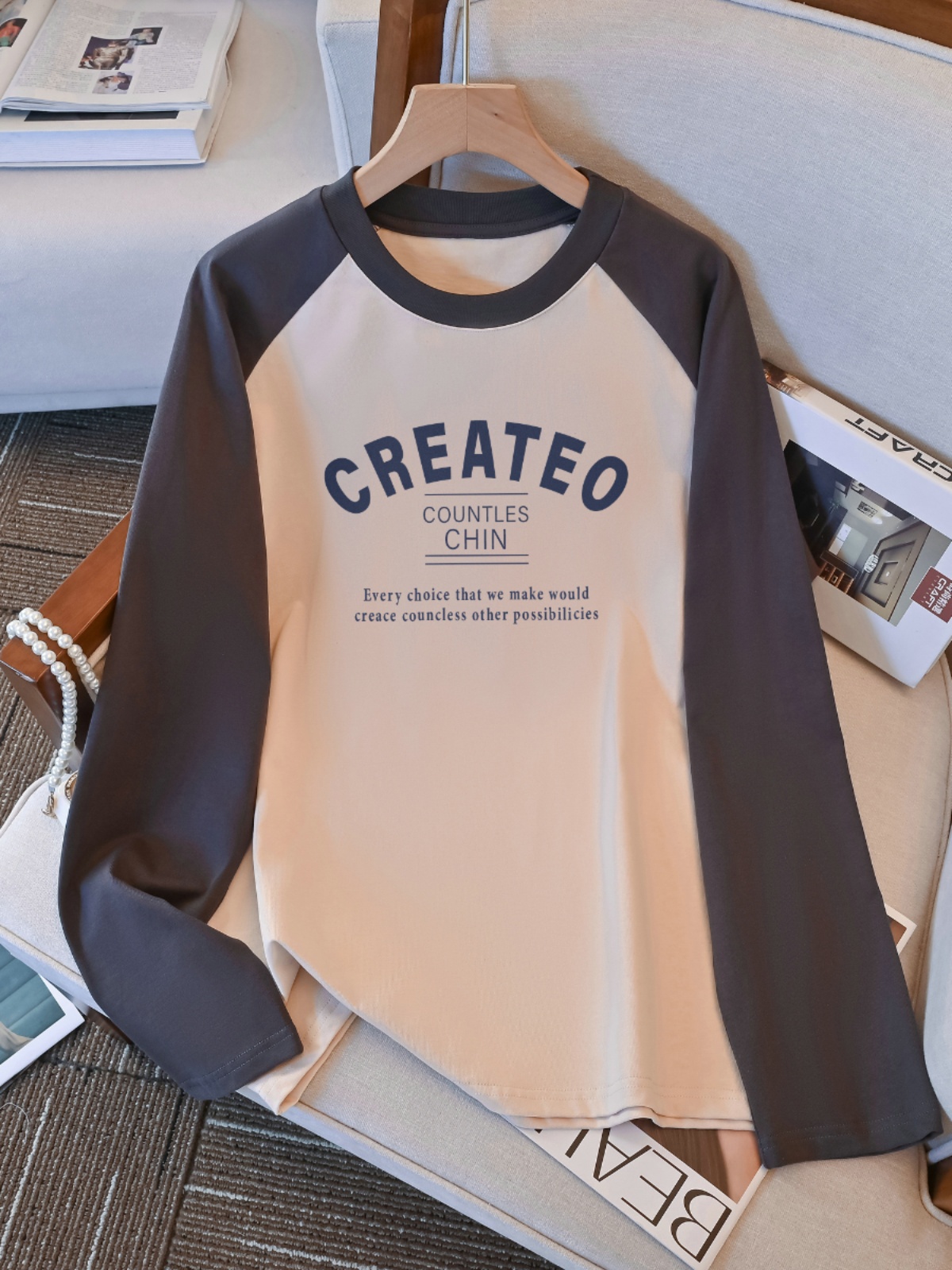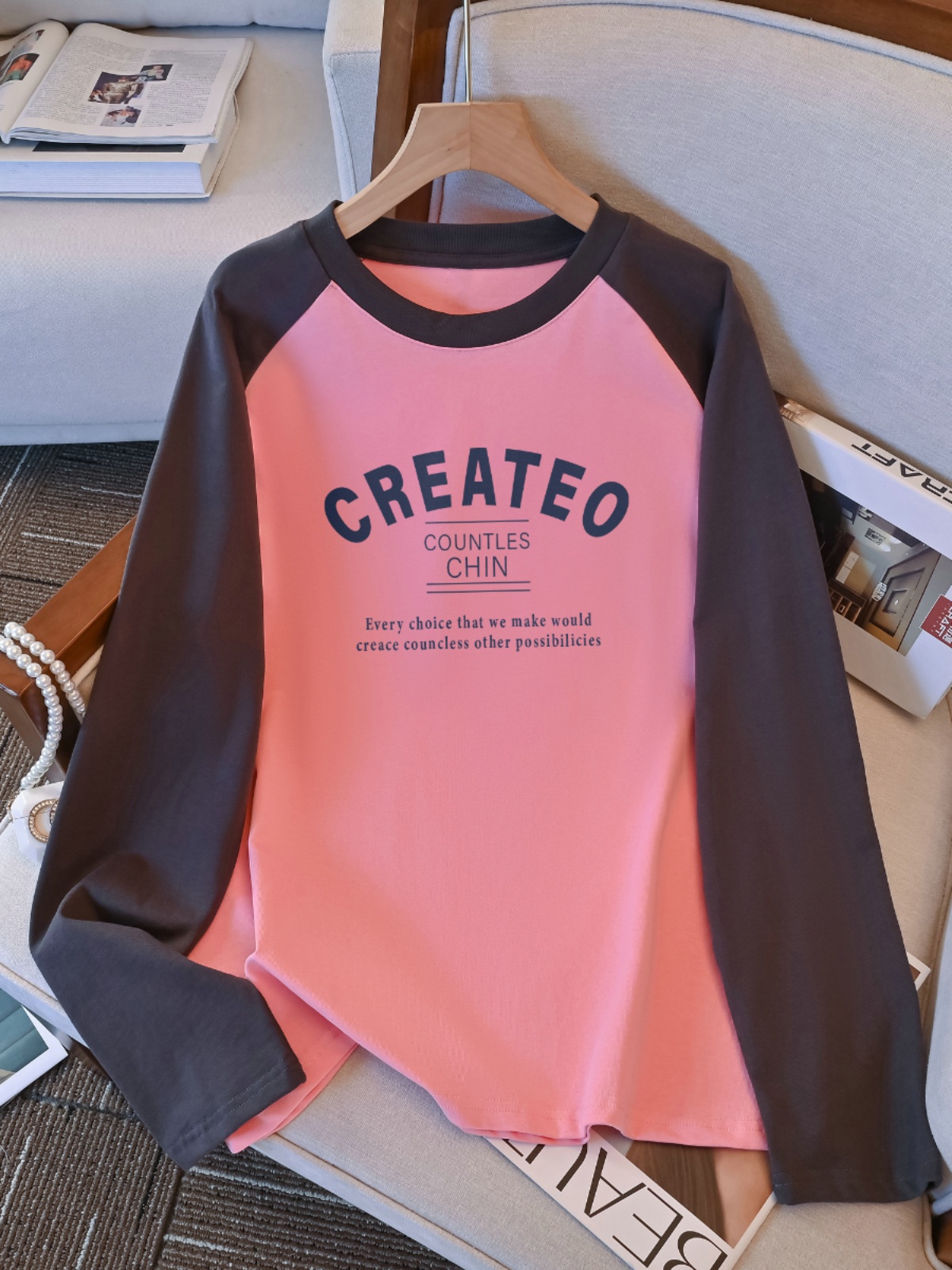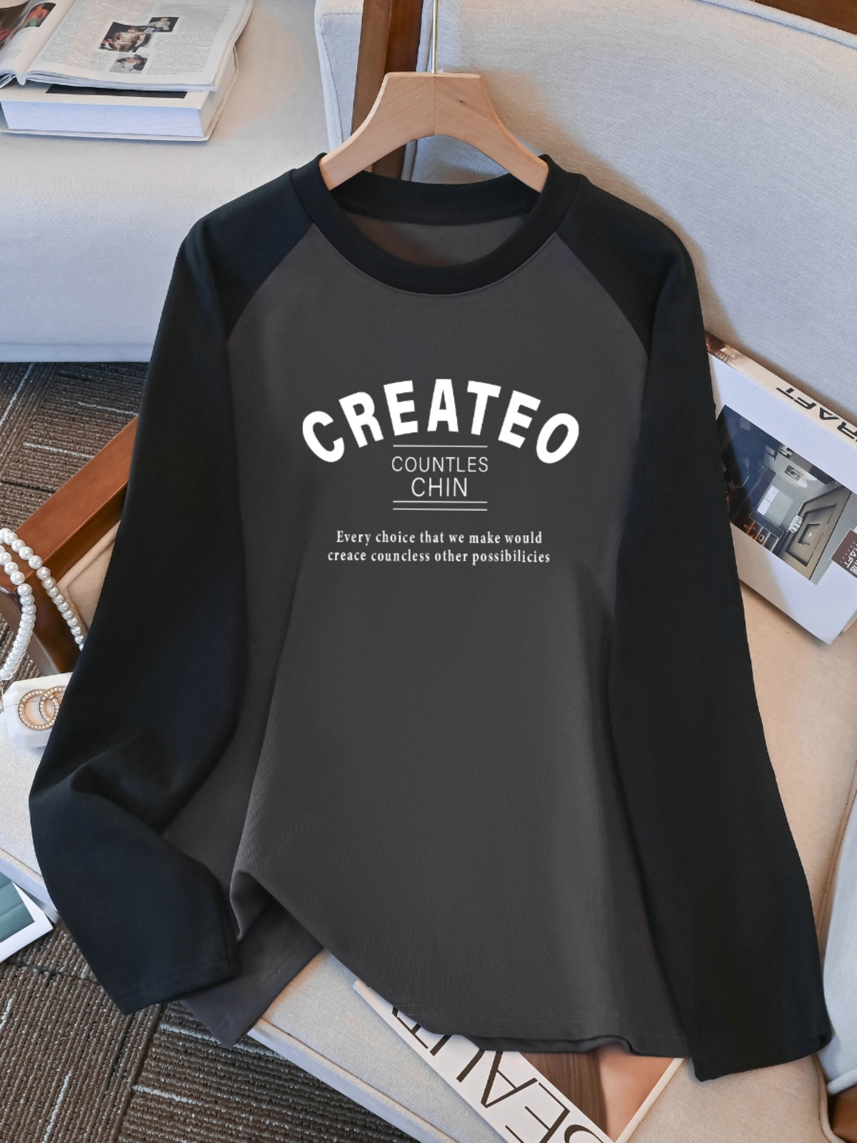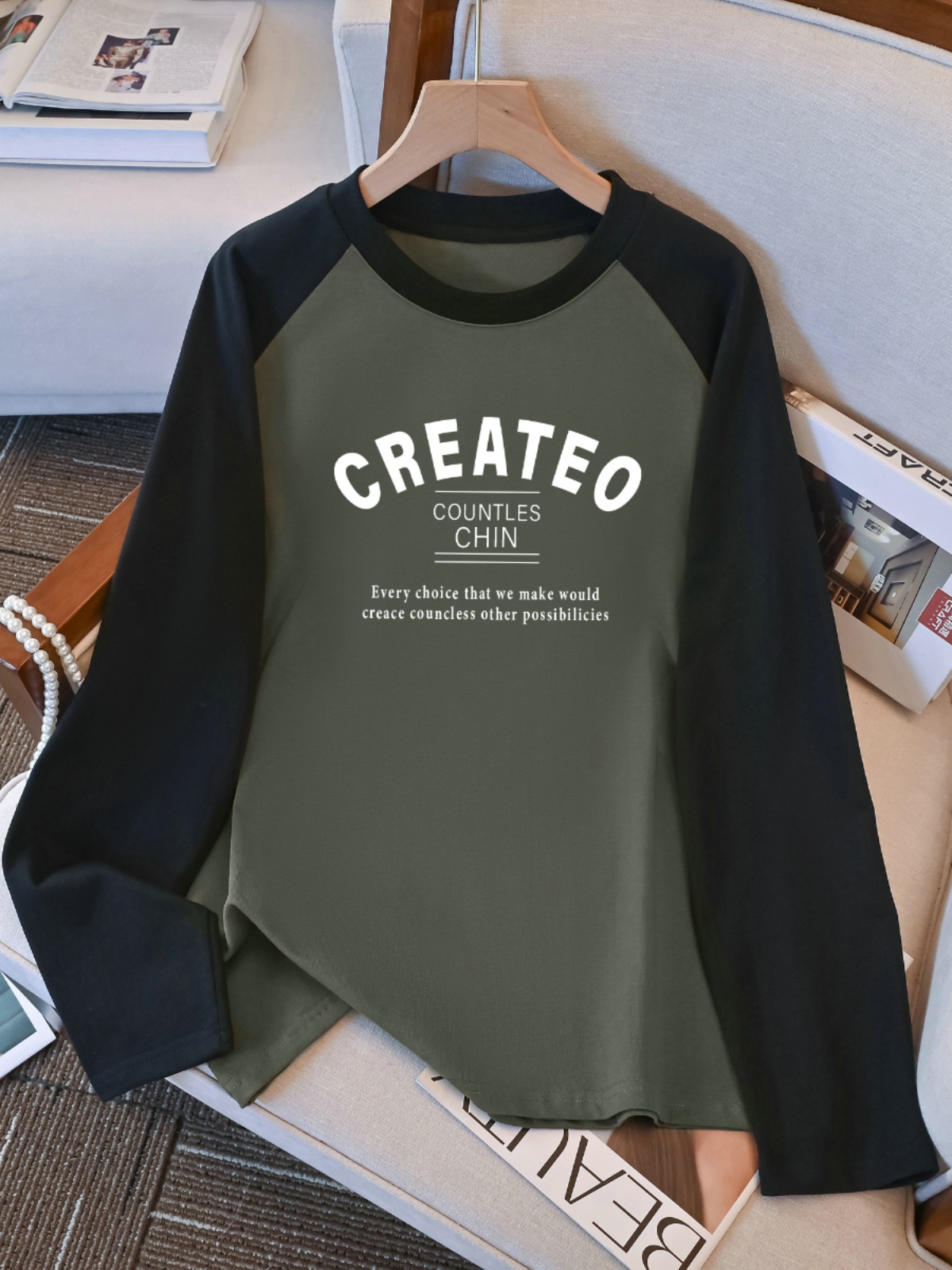 100.00kg Plus Size Plus Size Ladies Raglan Sleeve T-shirt for Women Early Autumn New Best Selling Loose Slim Looking Inner Bottoming Shirt Top Clothes