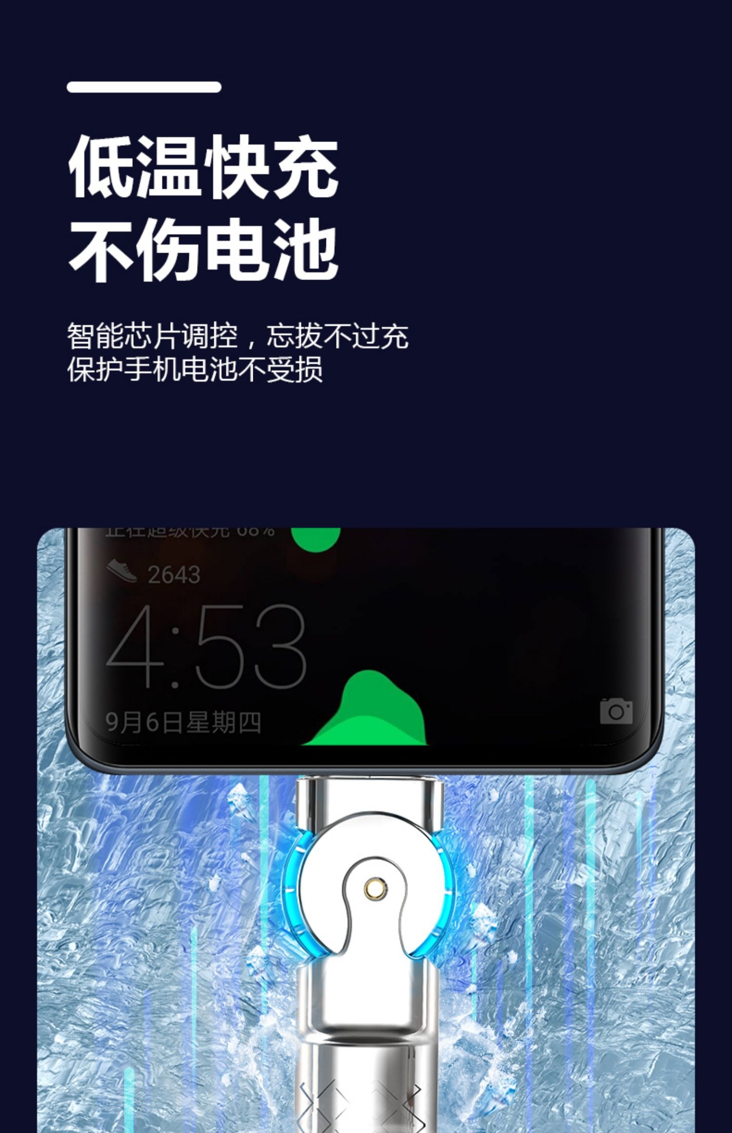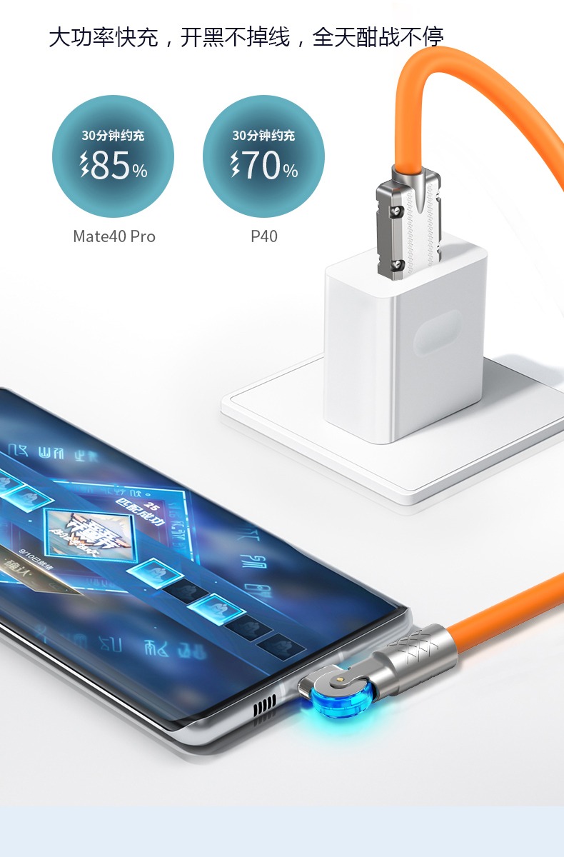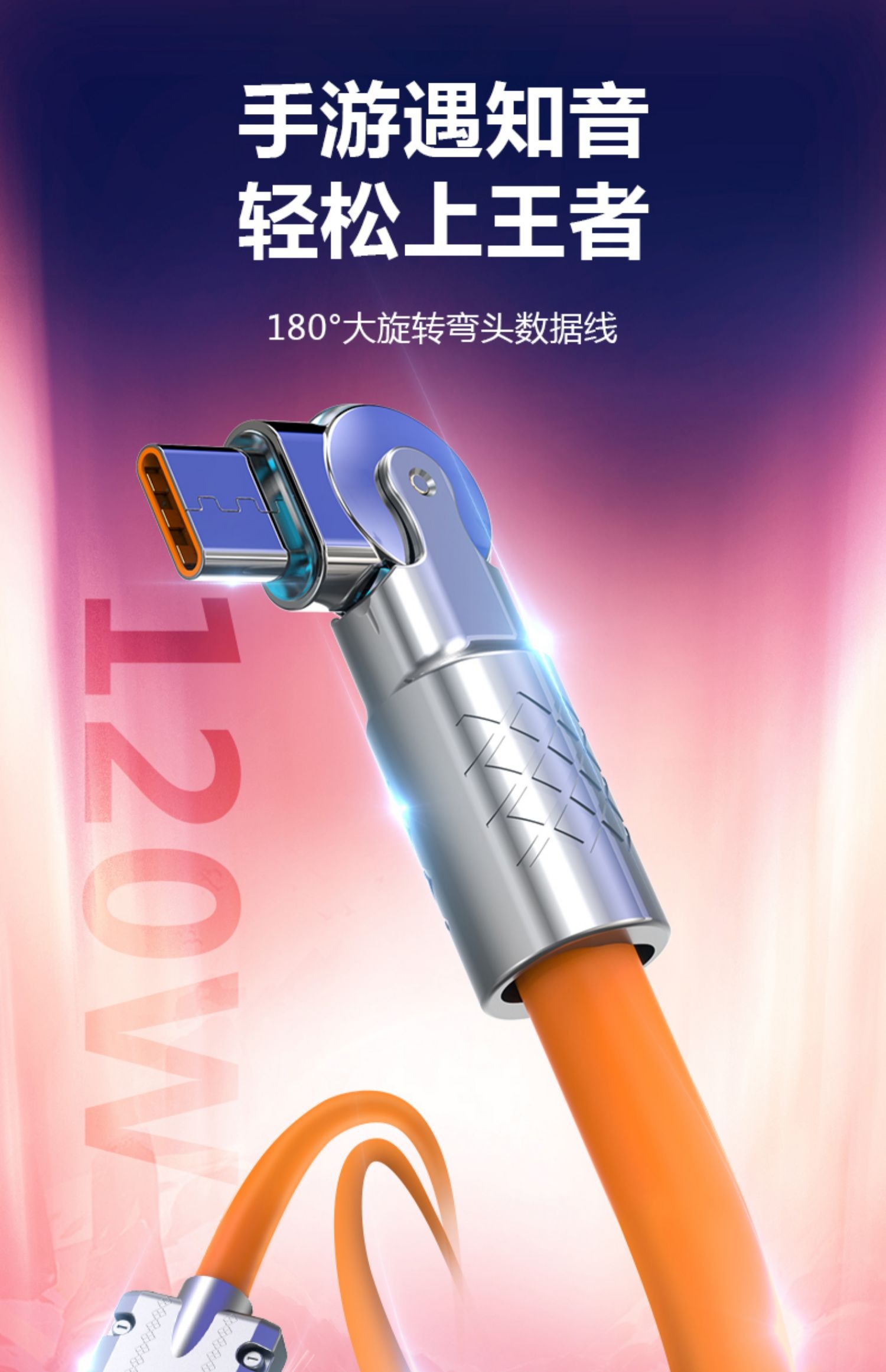 180° Rotatable Head 120W Fast Charge Type-C Data Cable 6A Zinc Alloy for Huawei Honor Mate P50 Mobile Phone Charging
