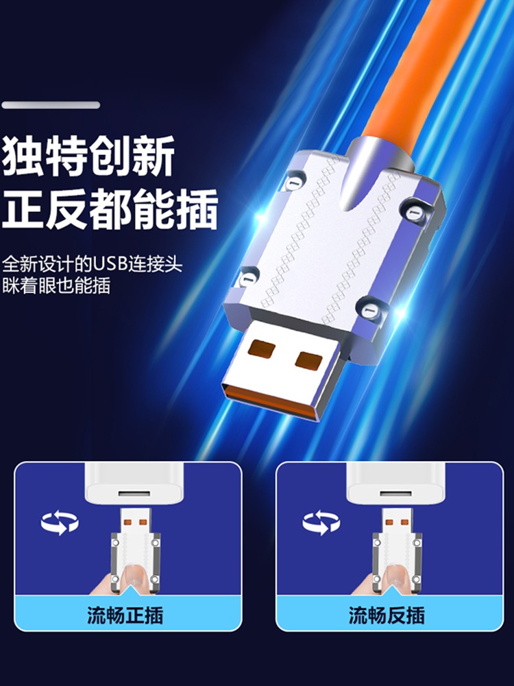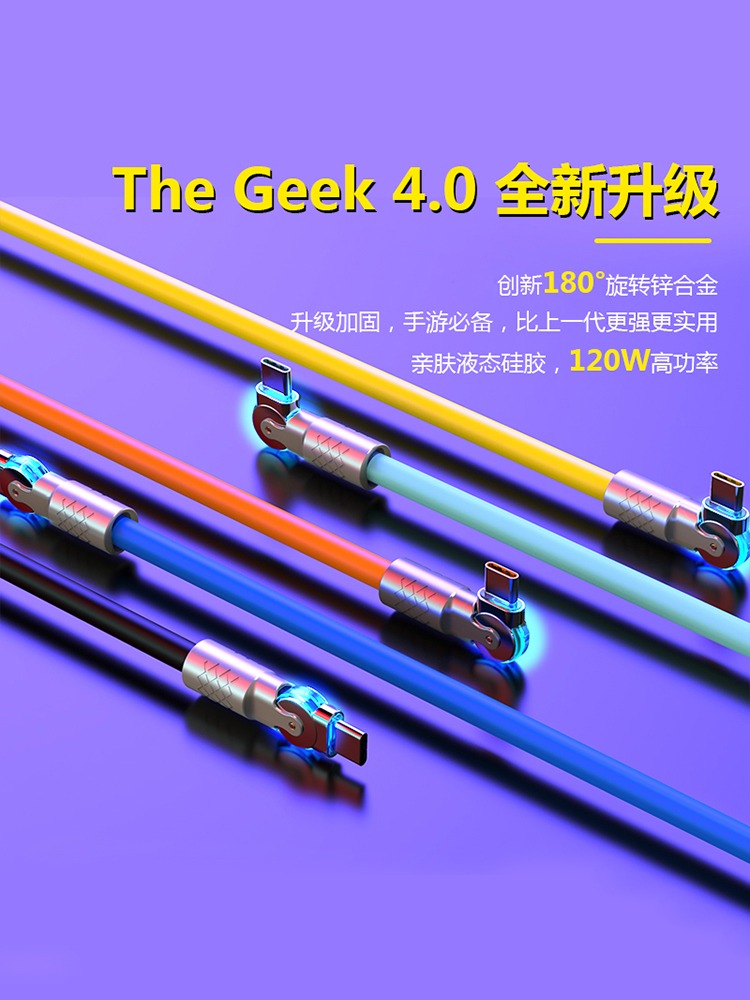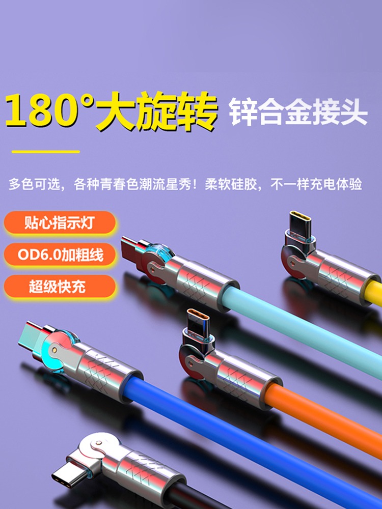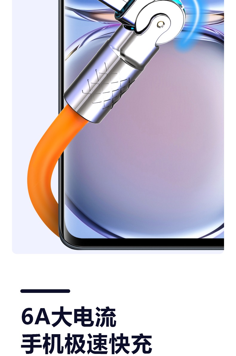 180° Rotatable Head 120W Fast Charge Type-C Data Cable 6A Zinc Alloy for Huawei Honor Mate P50 Mobile Phone Charging