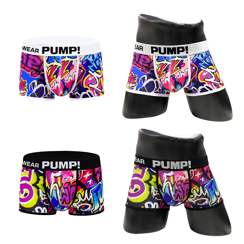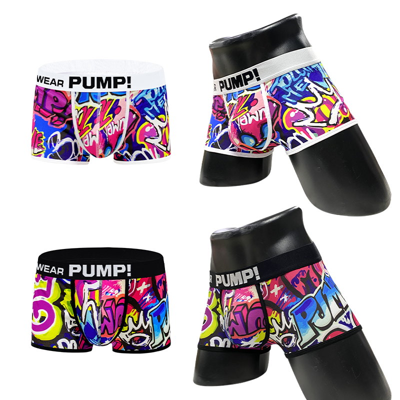 2 PCS Men s Graffiti Boxer European American Style Sexy Sports Low Waist Personality Trend Boxershorts Man Underwear