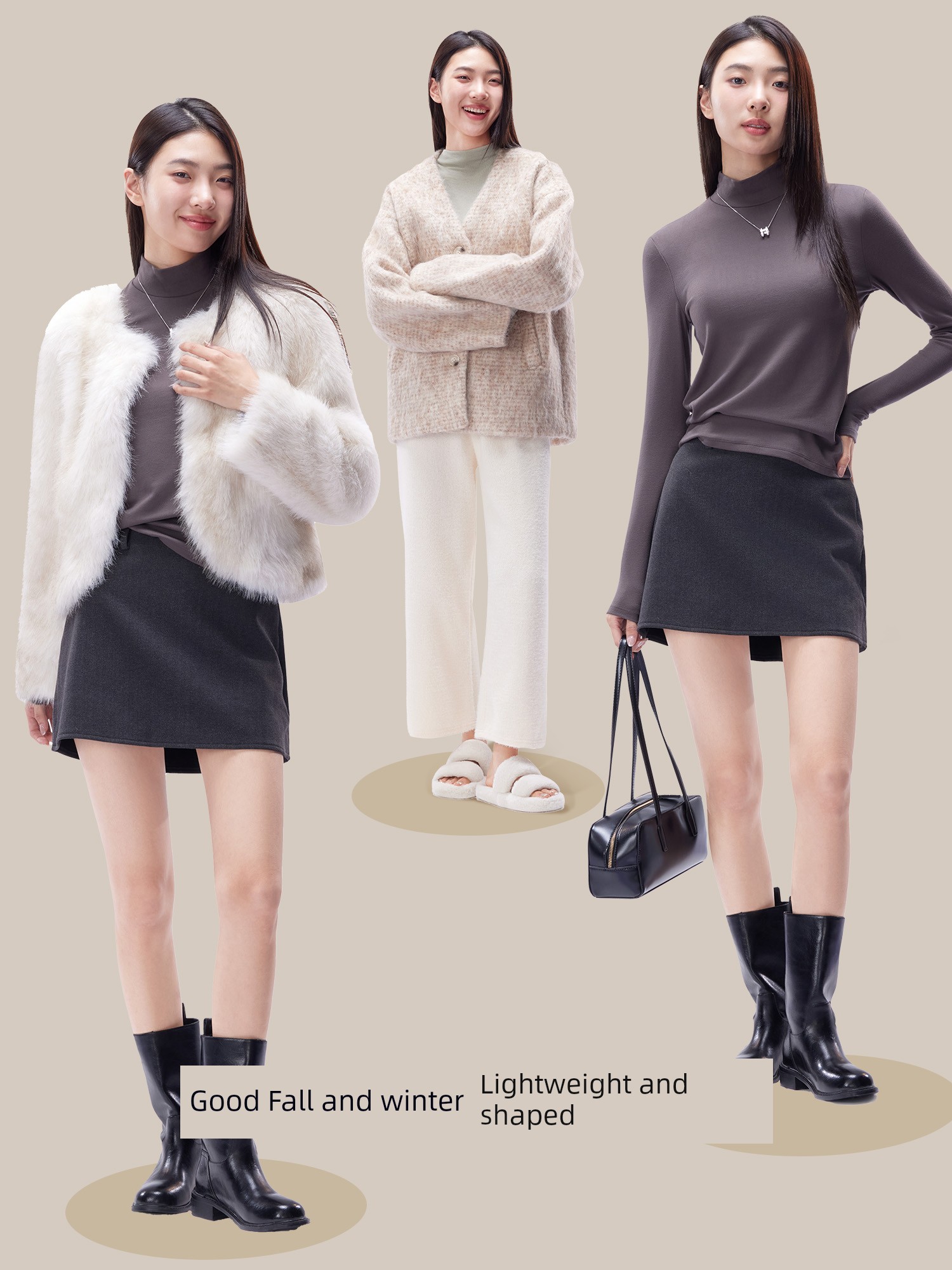 [20% off for 1 Piece, 60% off for 2 Pieces] Half Turtleneck Bottoming Shirt Women's Autumn and Winter Fleece-lined Silm Outer Wear Inner Wear