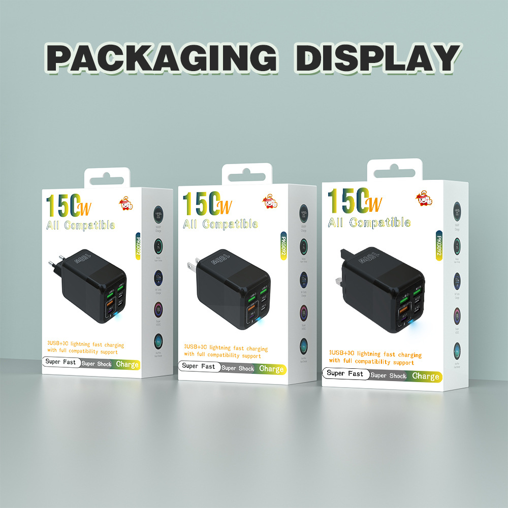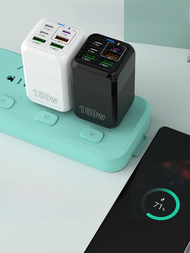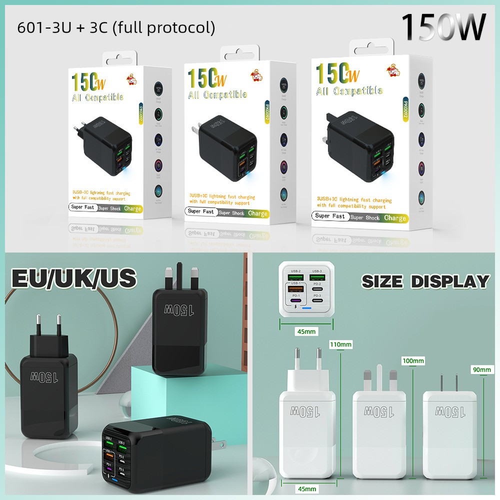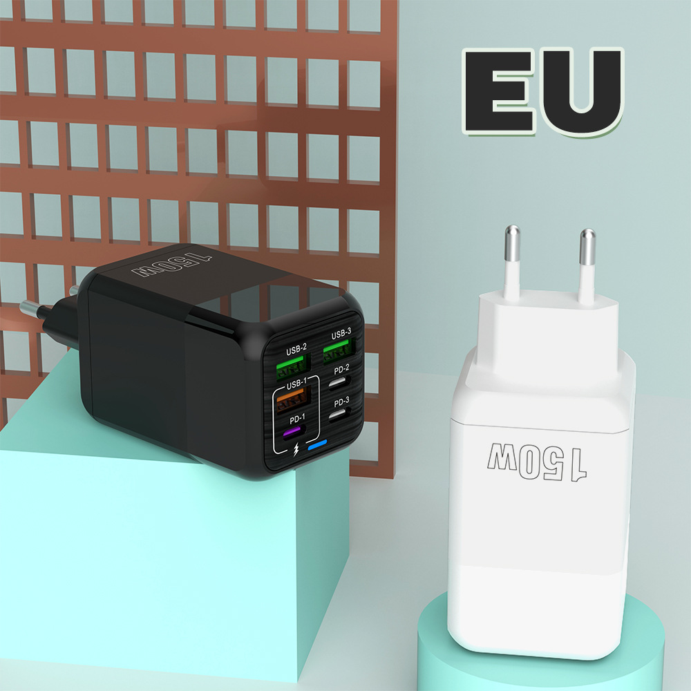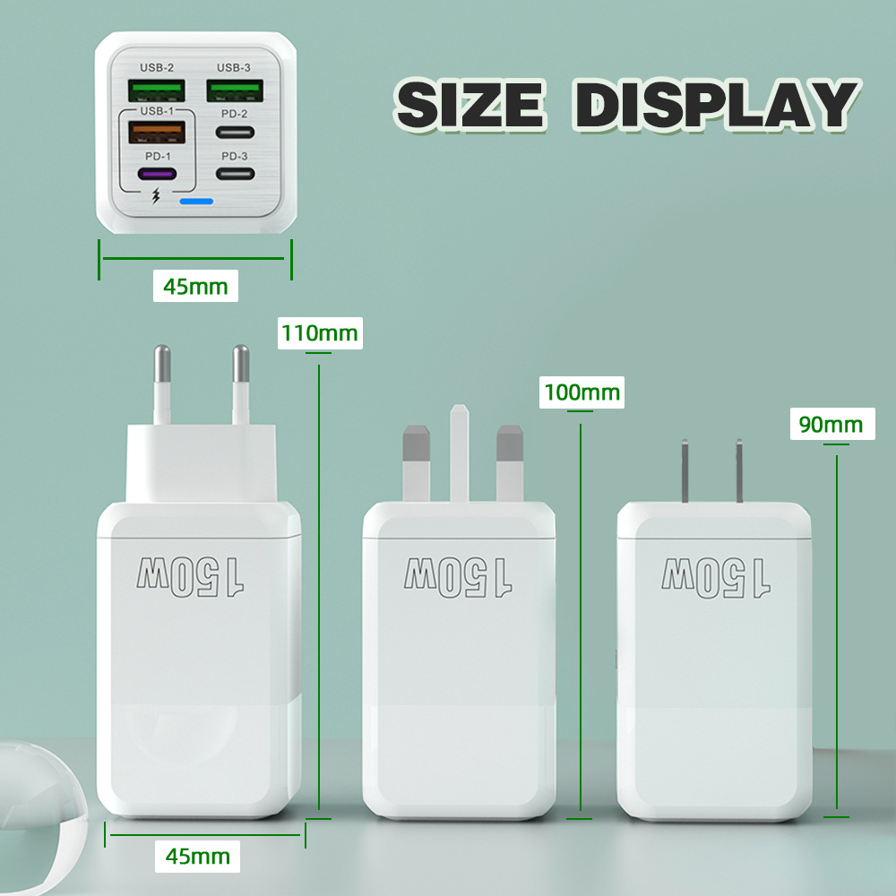 2024 New Arrival 150w Multi-Port Charger 3usb + 3PD Mobile Phone 6-in-1 Multi-Port Charging Plug 5 V3.1a Fast Charging Head