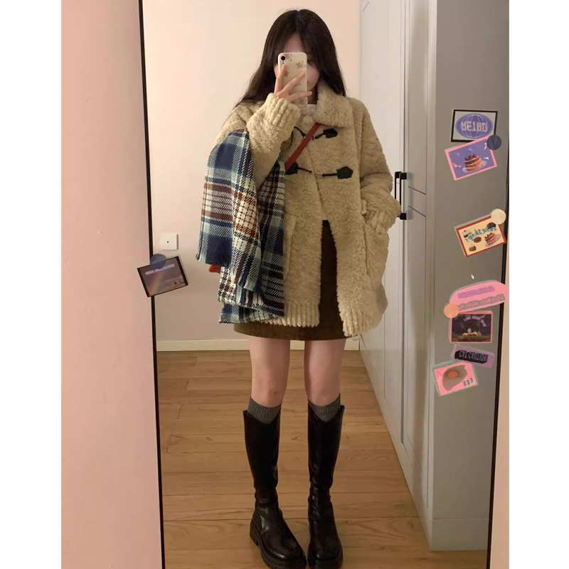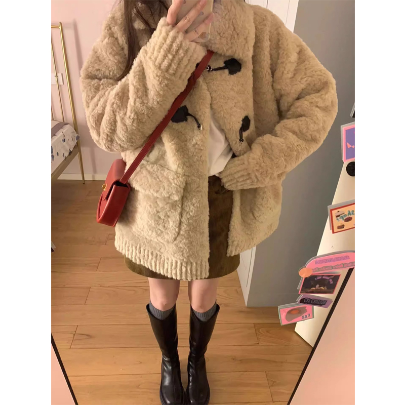 2024 Winter New Lamb Wool Outerwear Women's Thick Warm Korean Style Loose Slimming Button Coat