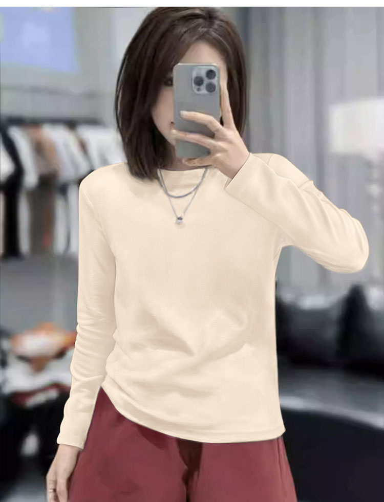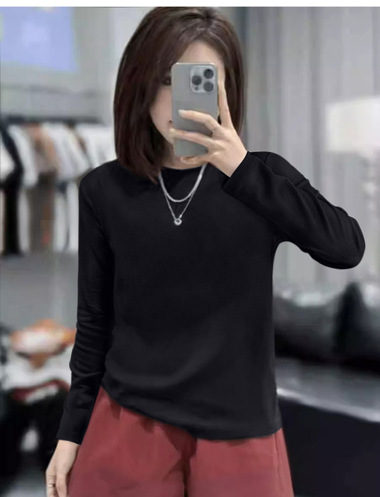 2025 Autumn and Winter New Arrival Plus Size Silm Pure Cotton T-Shirt Women's Long-Sleeved Bottoming Shirt Stylish Niche Style Short Tops