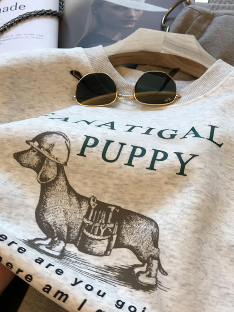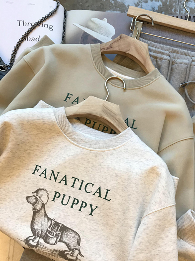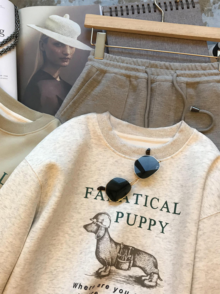 2025 New Arrival American Retro Fancy Super Nice Loose Gray round-Collar Brushed Hoody Female Spring & Fall Stylish