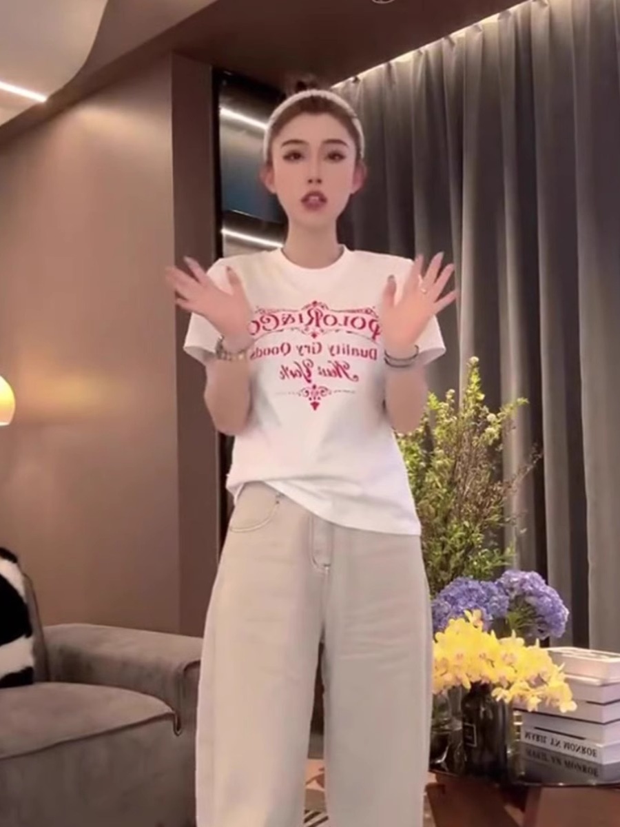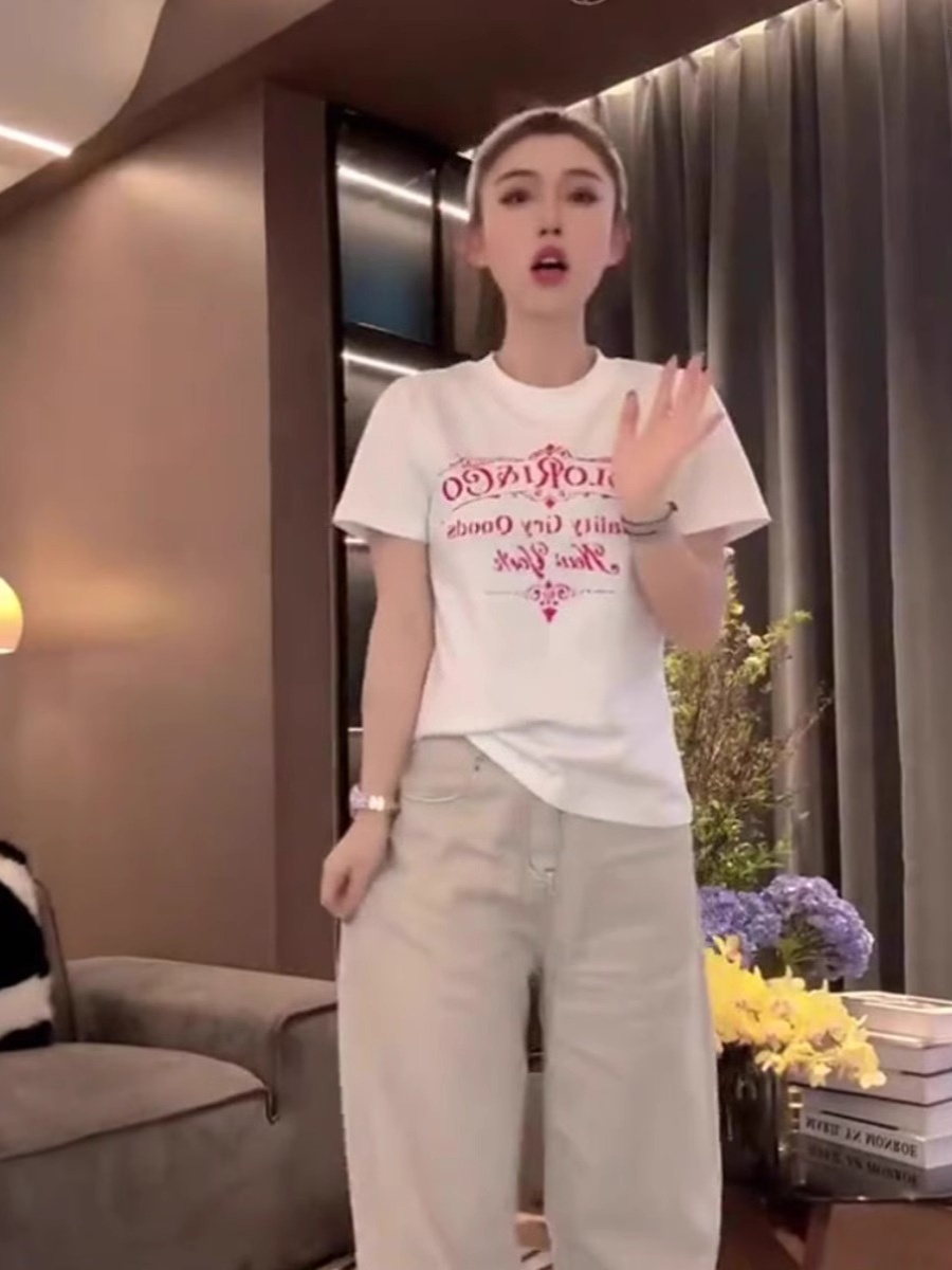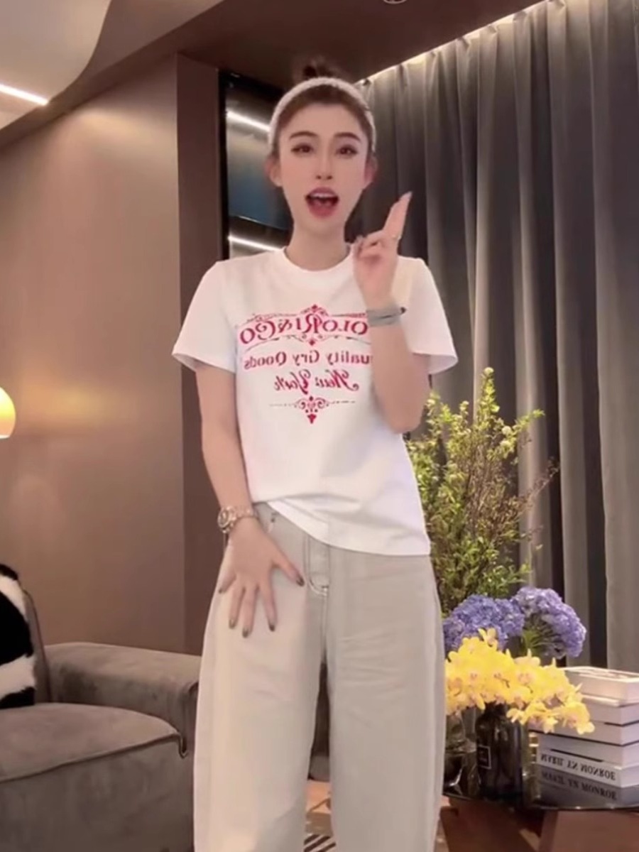 2025 New Arrival Letter Print T-shirt Female Summer Stylish Minority All-Match Mid Length Long Length All-Match Minimalist Short Sleeve Female
