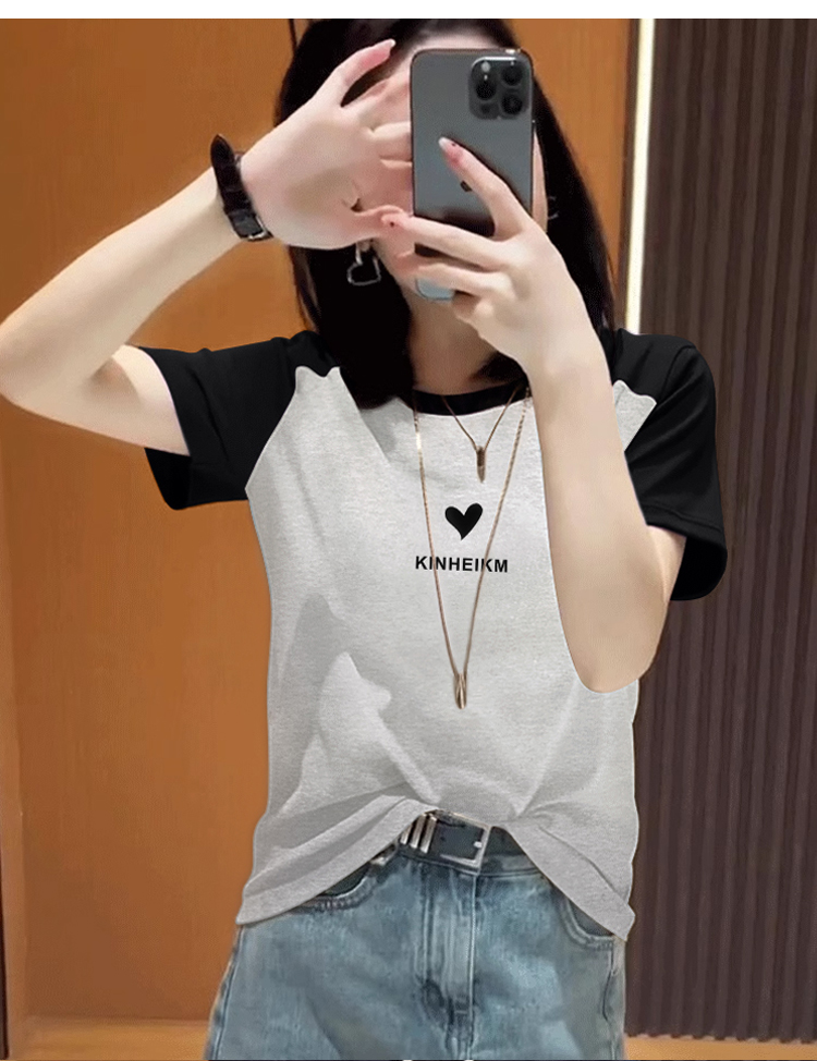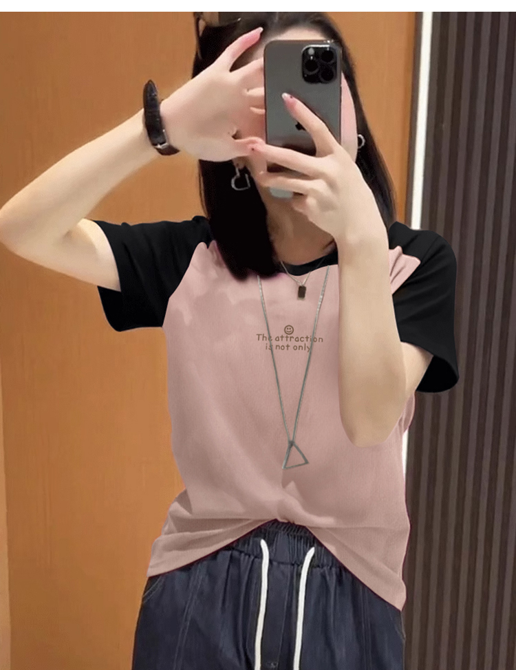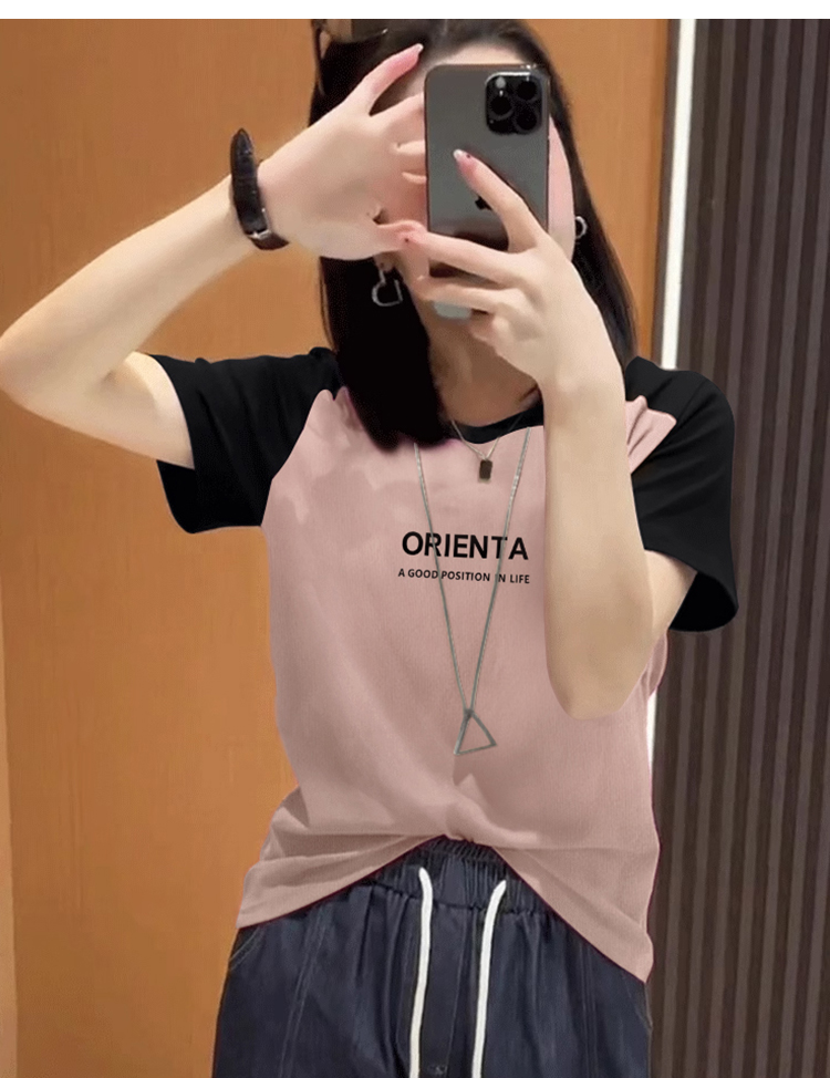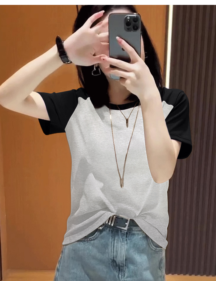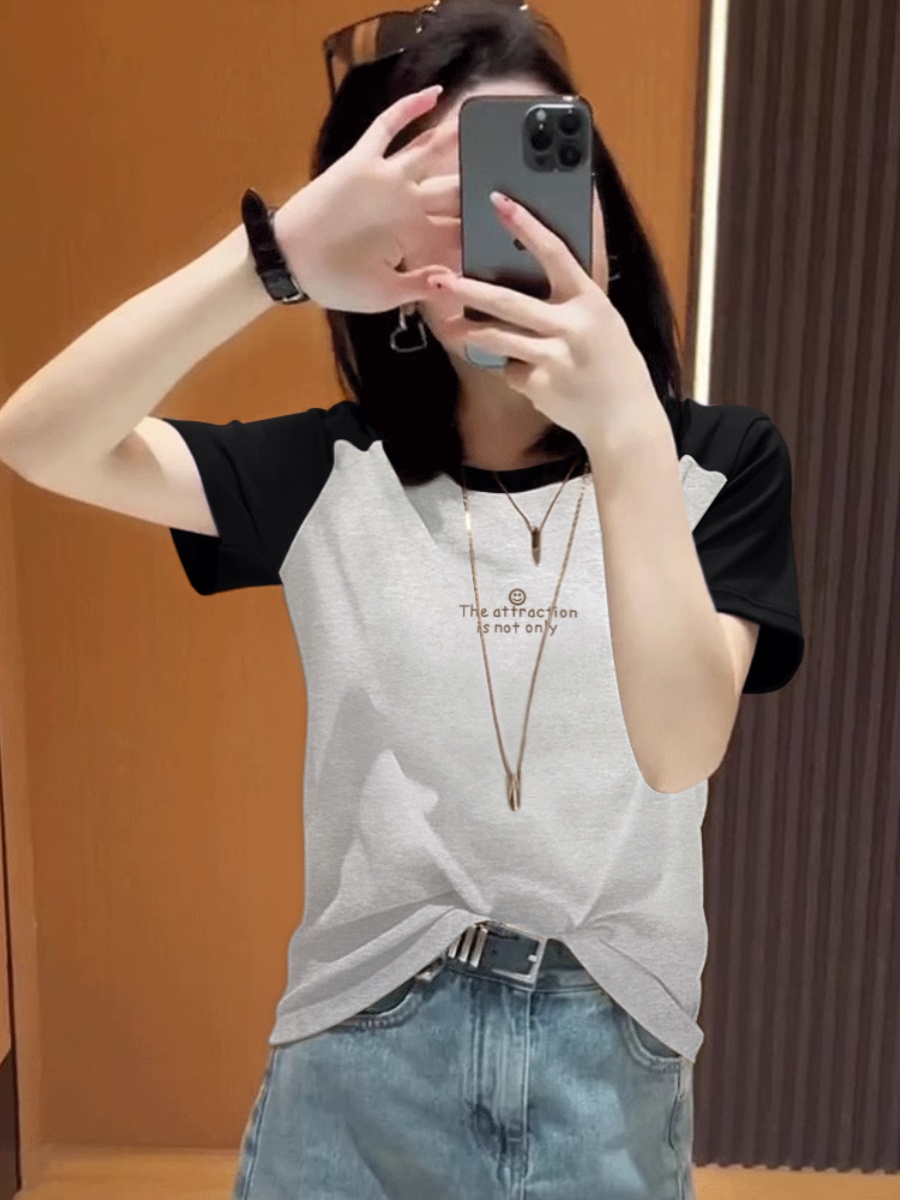 2025 New Arrival Shoulder European Goods Pure Cotton Contrast-Color Short Sleeve T-Shirt Women's Short Stylish Niche Style Raglan Tops Ins Fashion