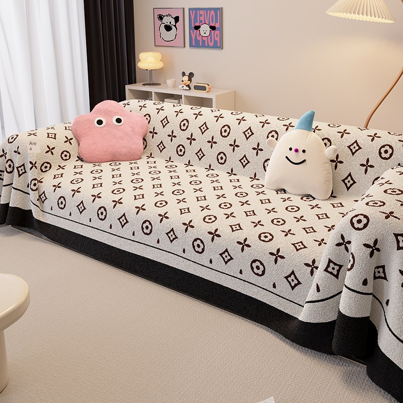 2025 New Arrival Sofa Towel Cover Cloth Autumn and Winter Double-Sided Milk Fiber Heattech Fixed Non Slip Straight Row Leather Sofa Cushion