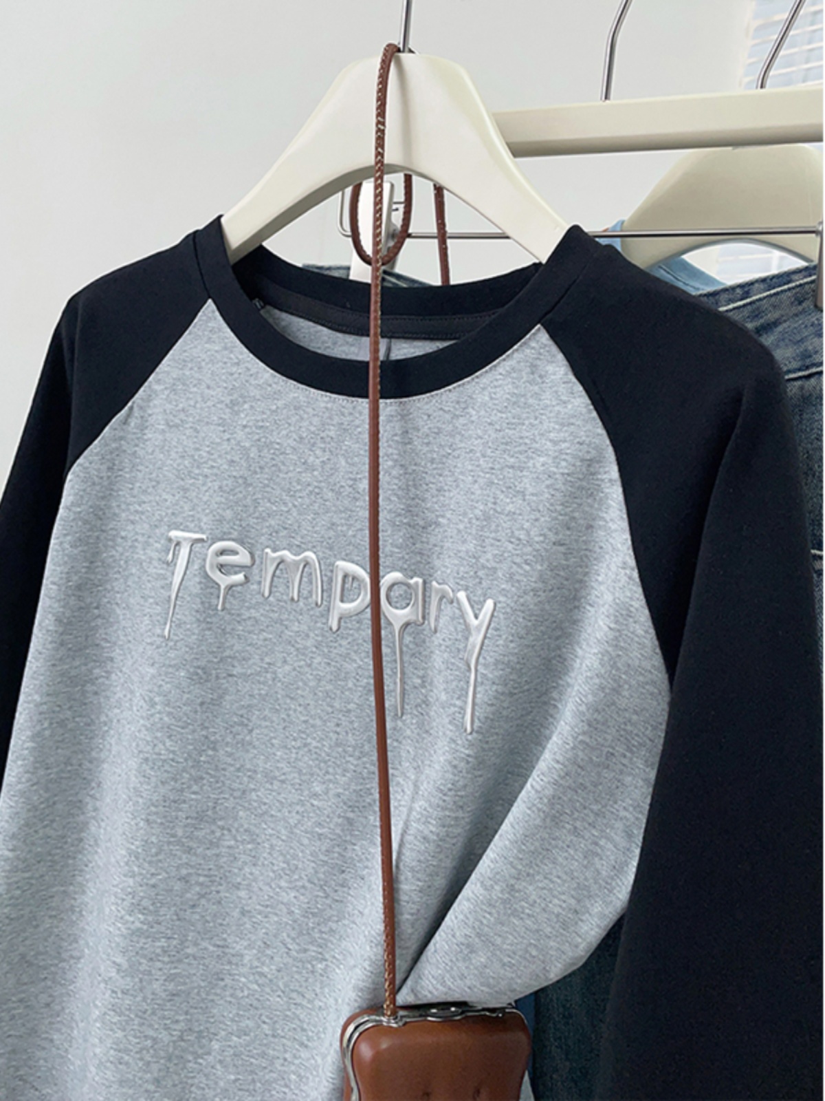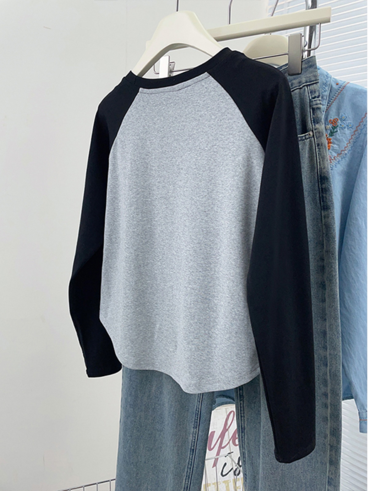 2025 New Arrival Spring & Fall Raglan Sleeve T-Shirt Female Stylish Niche Style Long Sleeves Inner Bottoming Shirt Short Embroidery Tops