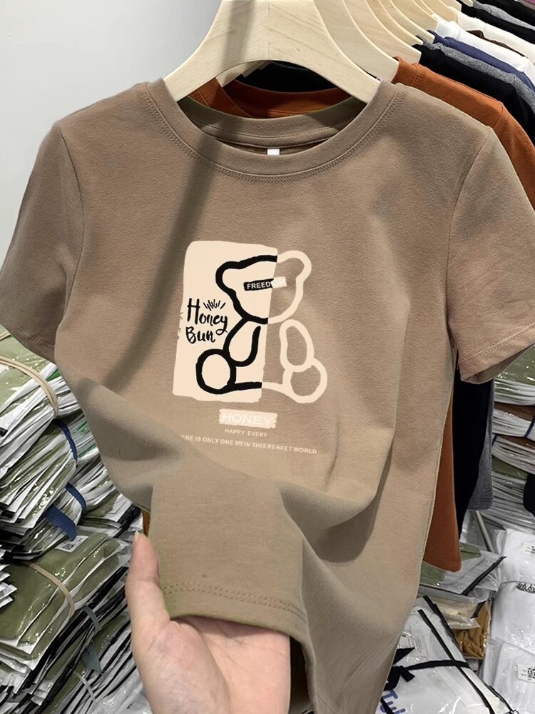 2025 New Arrival Summer Plus Size Plus Size Ladies Shoulder Short Sleeve T-Shirt Women's Slim Looking Belly Covering Pure Cotton Hong Kong Style Chic Top Clothes
