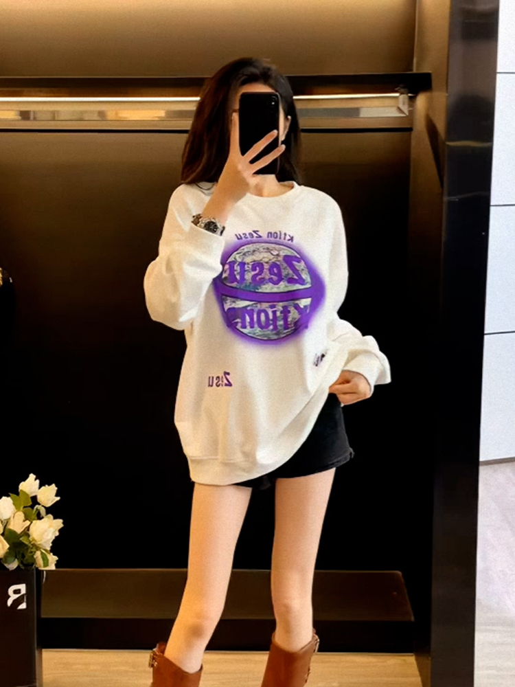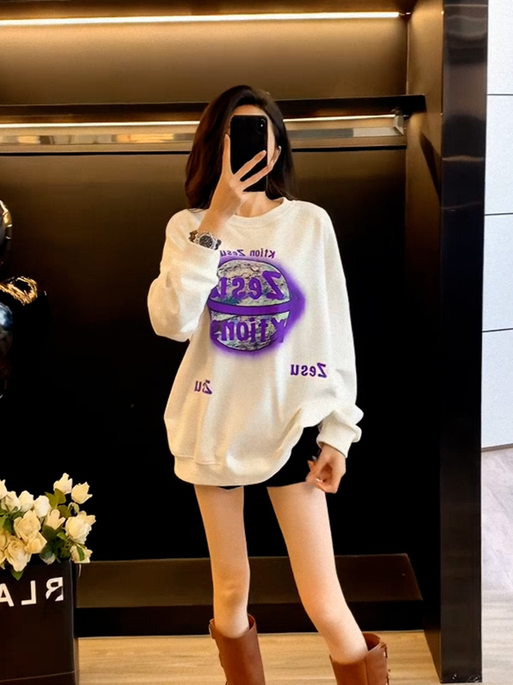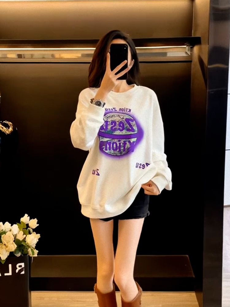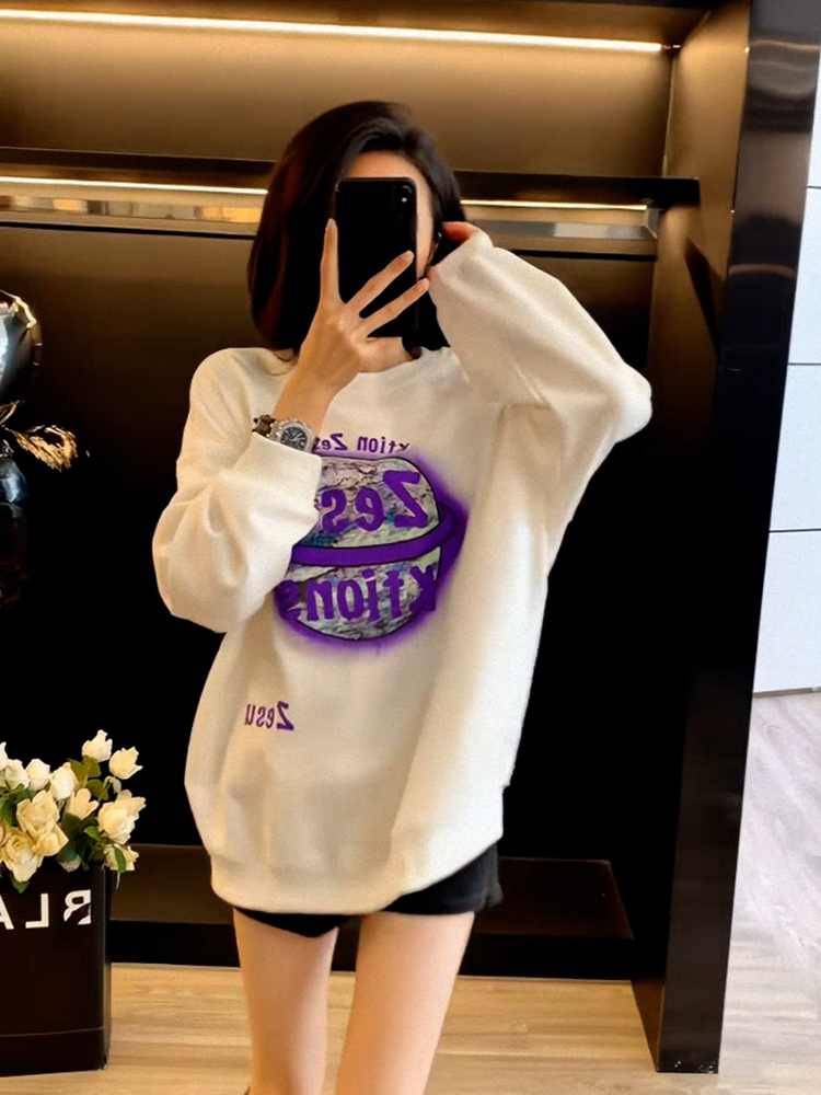 2025 New Design Sense Niche Style Creative Printing round Neck Long Sleeves Sweaters Women's Clothing Autumn Leisure Slim Looking Tops Tide