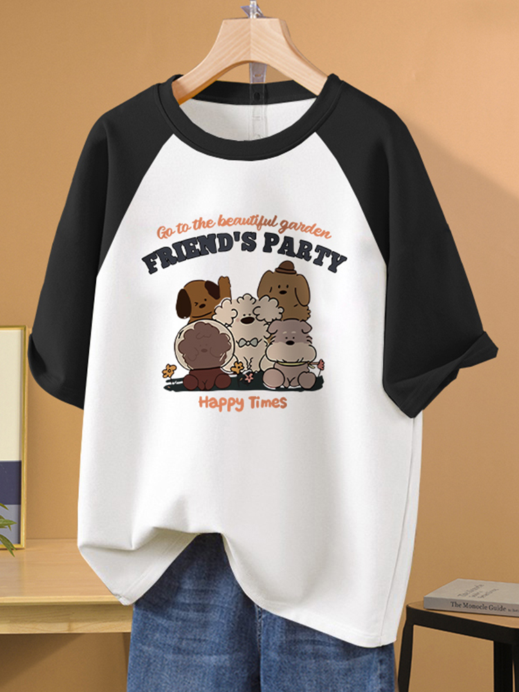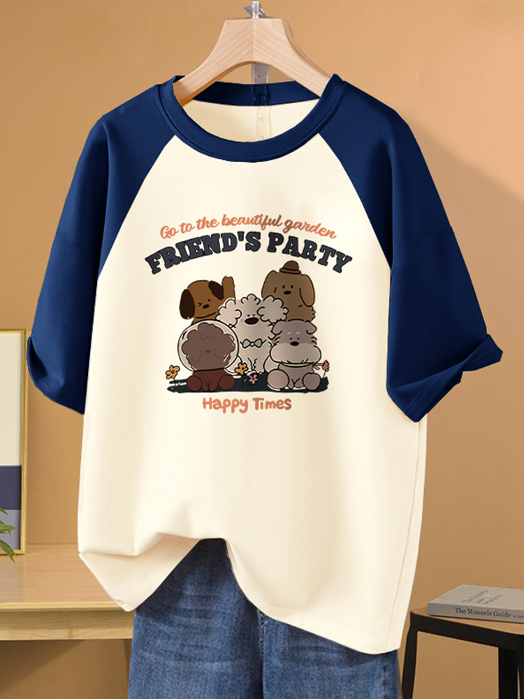 2025 New Pure Cotton Short Sleeve Trendy Ins Korean Style T-shirt Female Student plus Size Loose Top round Neck Shoulder Summer