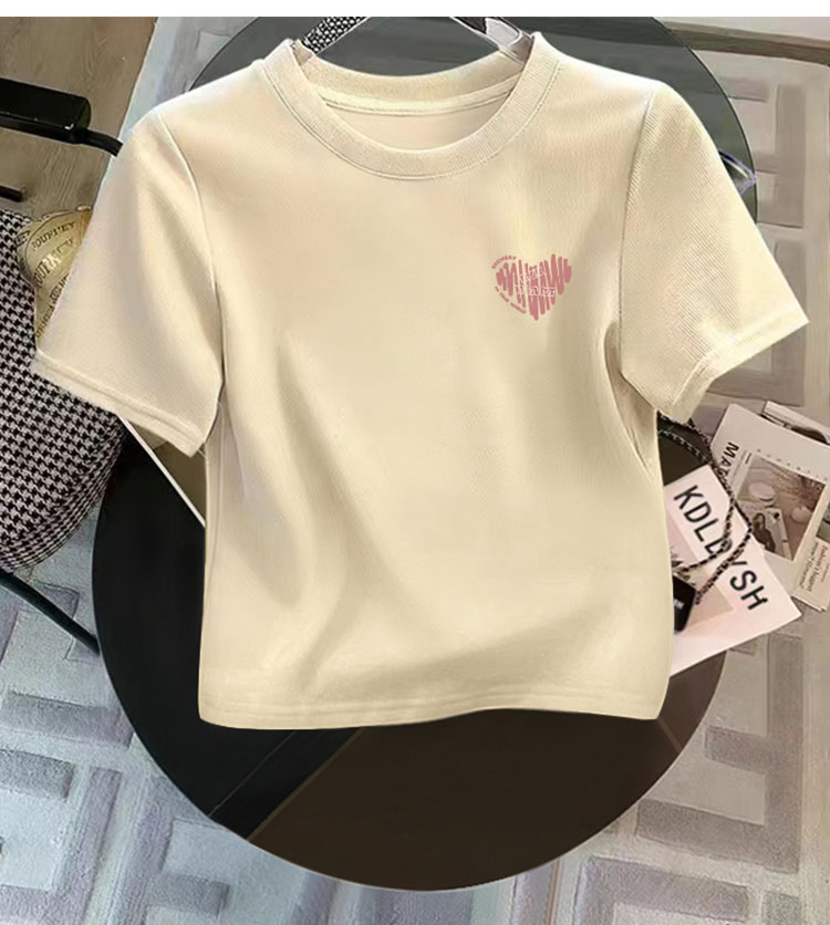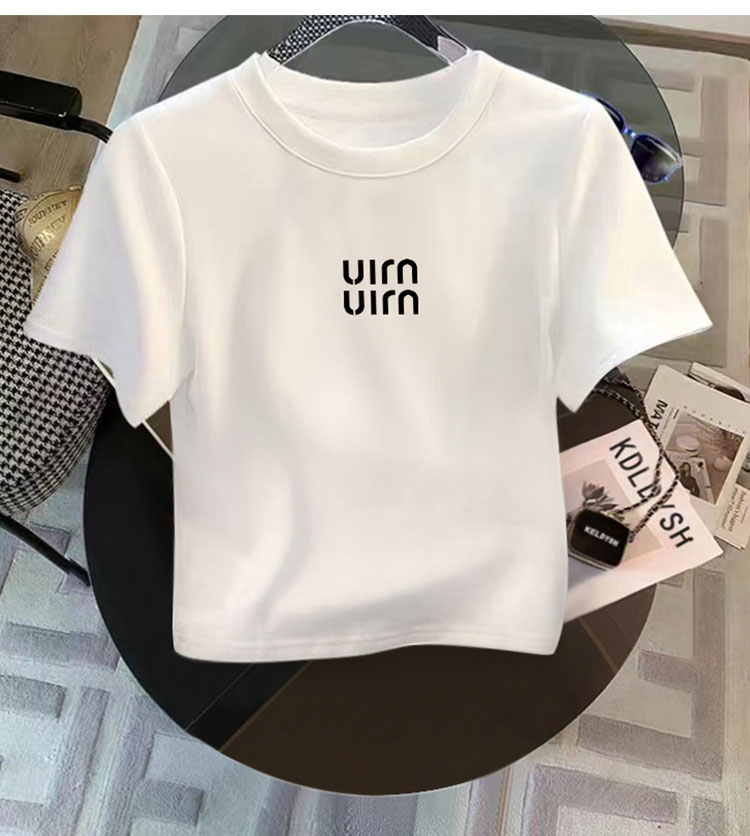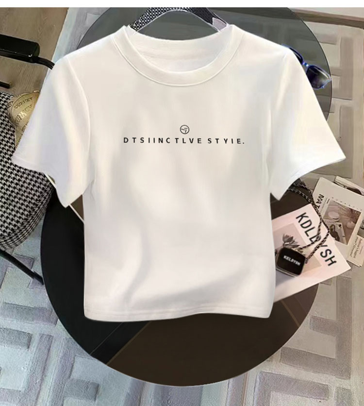 2025 Short Sleeve T-Shirt Women's Stylish Niche Style Short Summer Shoulder T-shirt Loose Slimming round Neck Small Shirt Top
