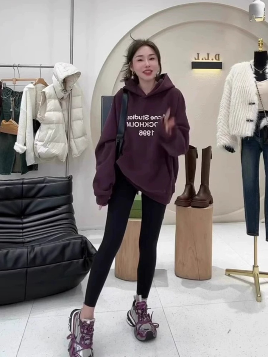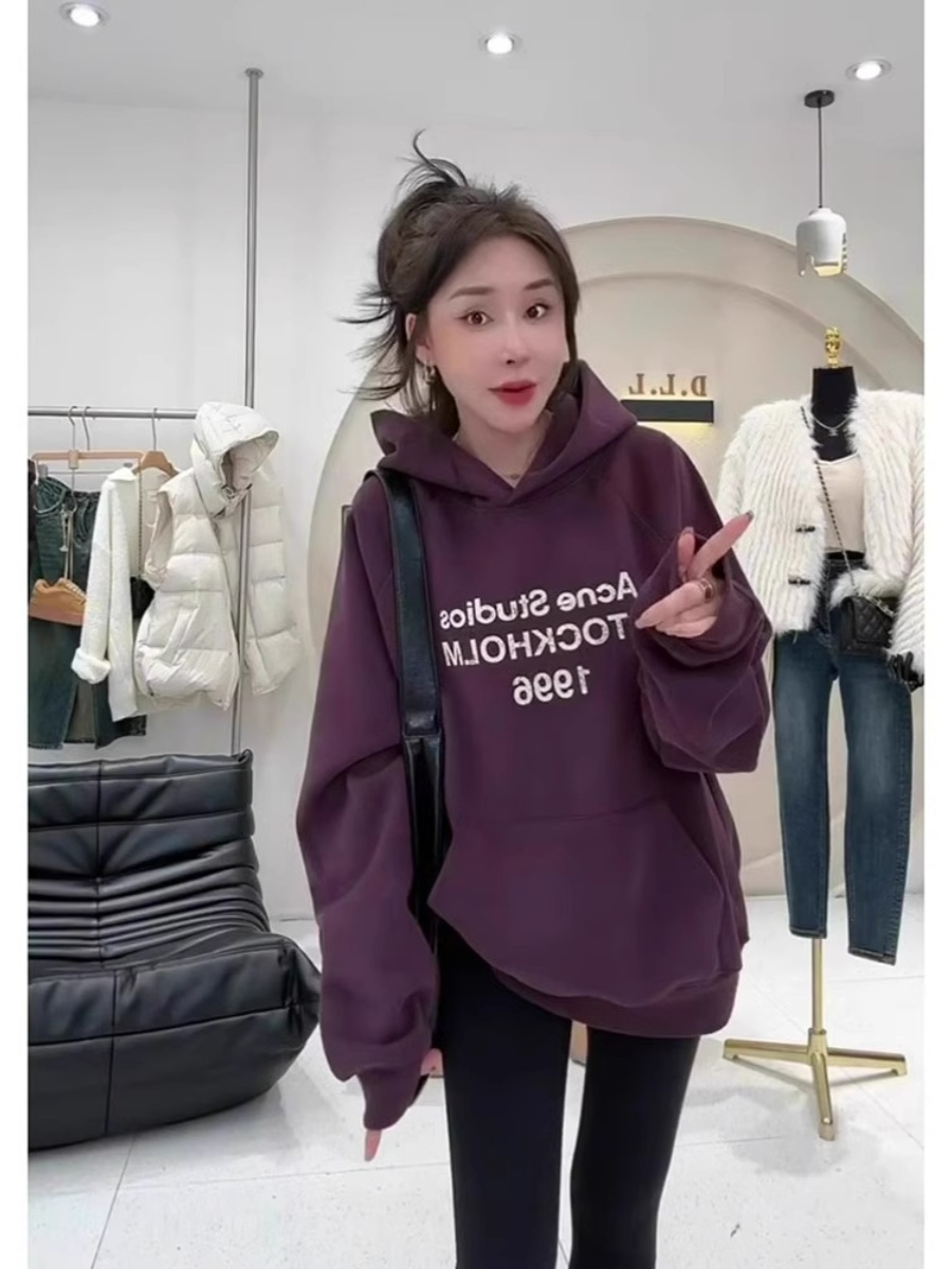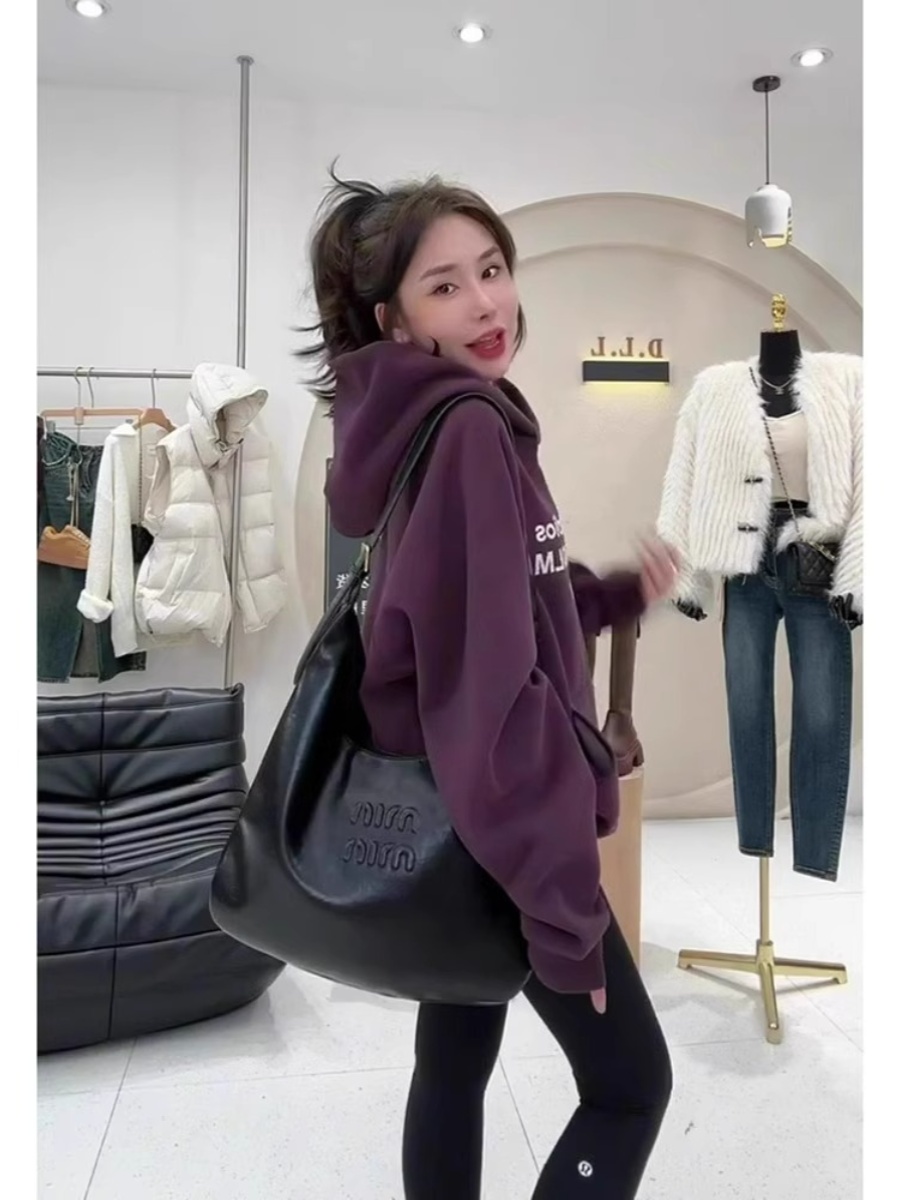 2025 Spring and Autumn New Arrival Best Selling This Year Popular Beautiful Idle Style Purple Loose Figure Flattering Hoodie Women's