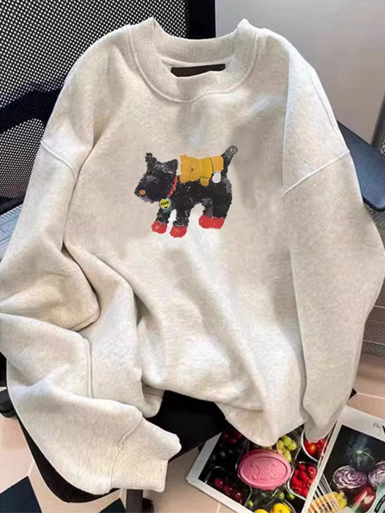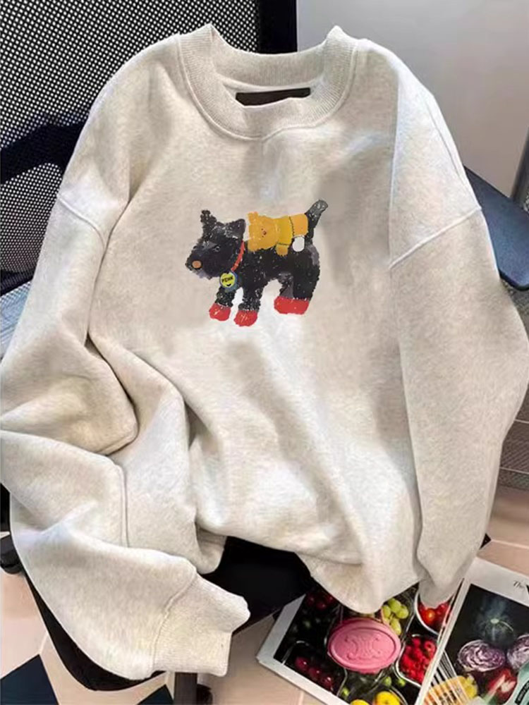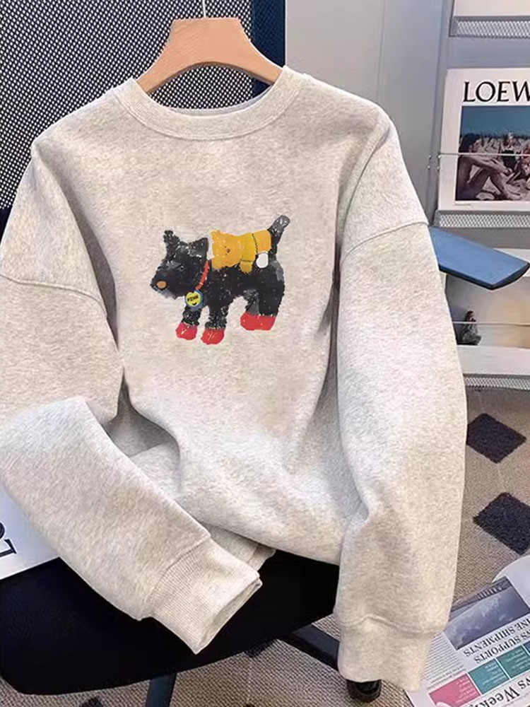2025 Spring and Autumn New Arrival Melange Gray Velvet Padded Thickened Sweater Female Loose Best Selling Cartoon Print Top Outwear