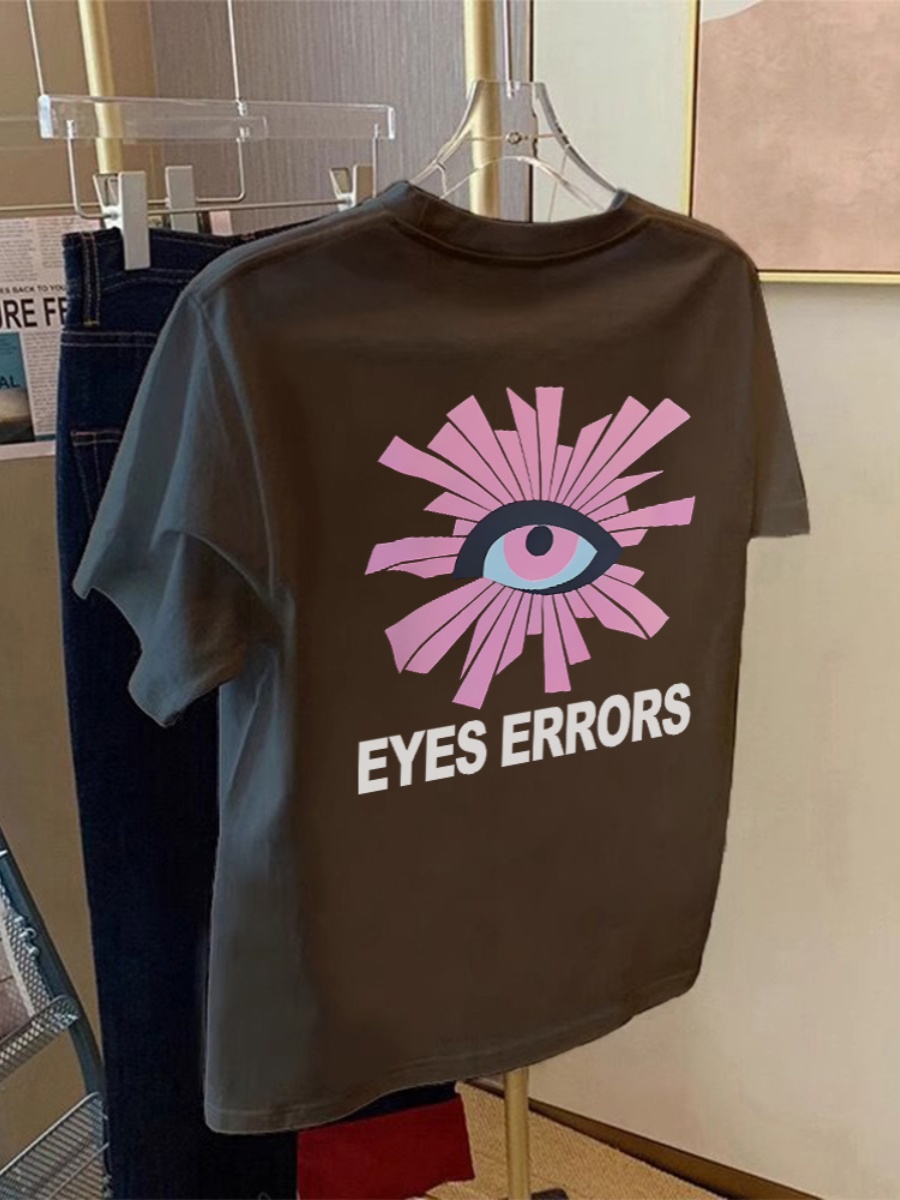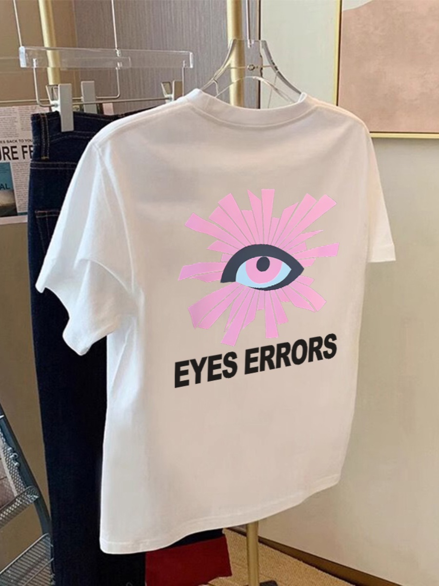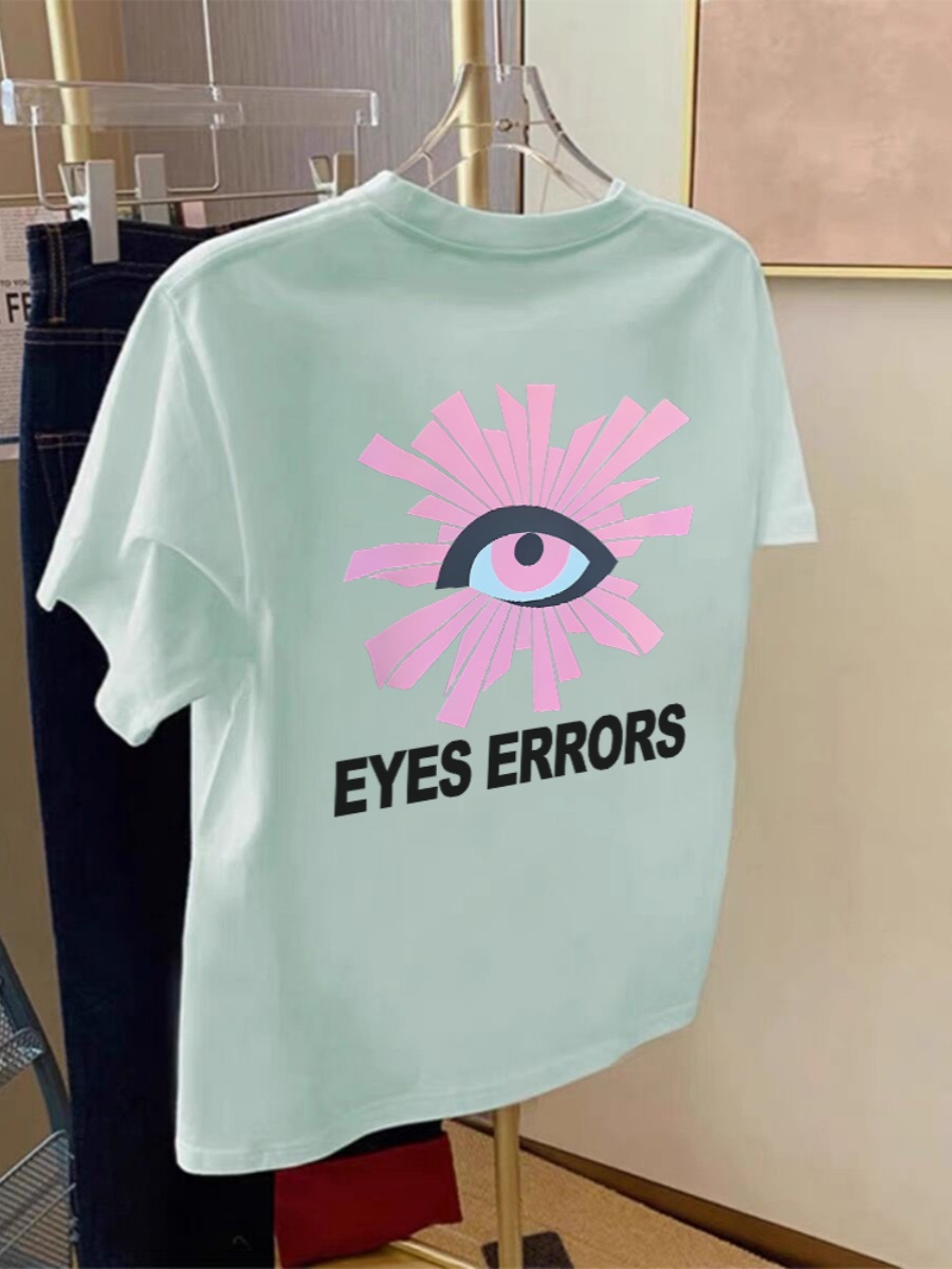 2025 Summer Eye of Truth Pure Cotton Print Heavy Weight Short Sleeve Tops American High Street Niche Style Chinese Fad Pure Cotton T-shirt for Women