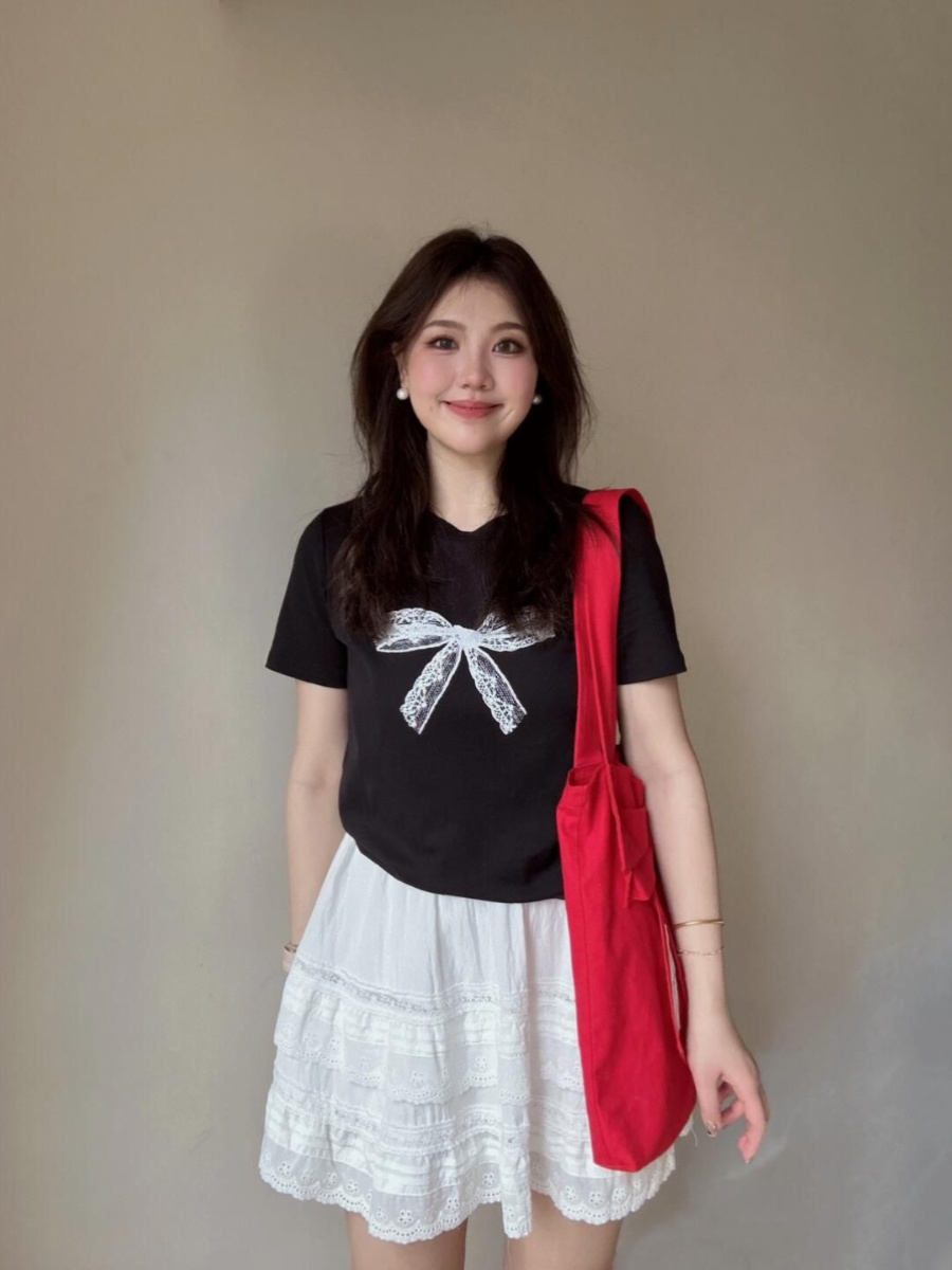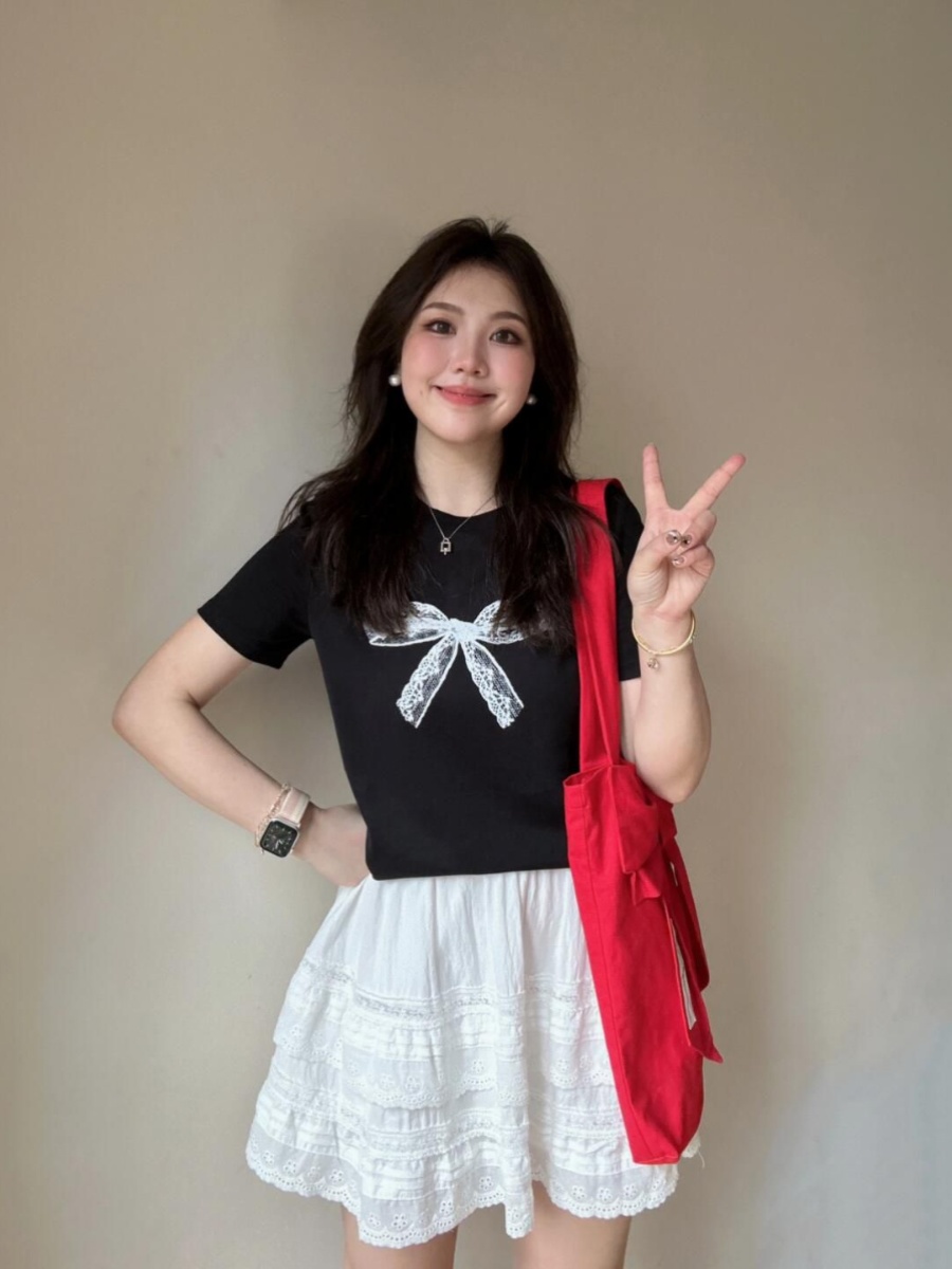 2025 Summer New Arrival Black Shoulder Short Sleeve T-Shirt Women's Silm Slim Looking All-Matching Western Style T-shirt Korean Style Tops