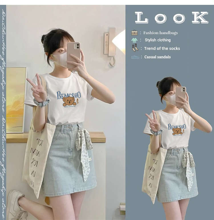 2025 Summer New Arrival Shoulder White Short Sleeve T-Shirt Women's Thin Loose Plus Size Pure Cotton Age-Reducing T-shirt Jacket Fashion