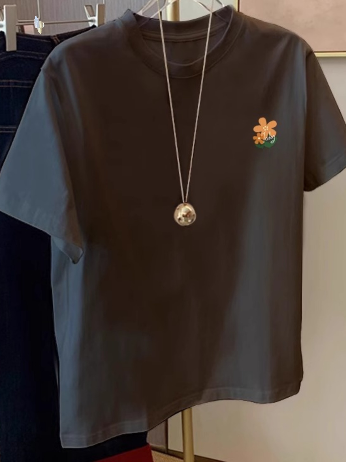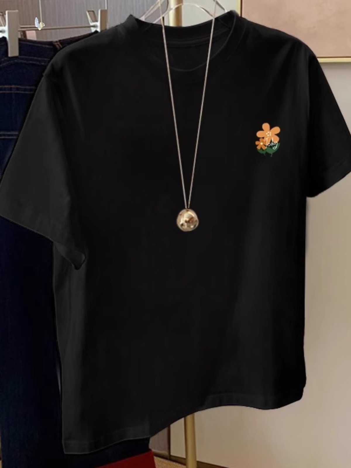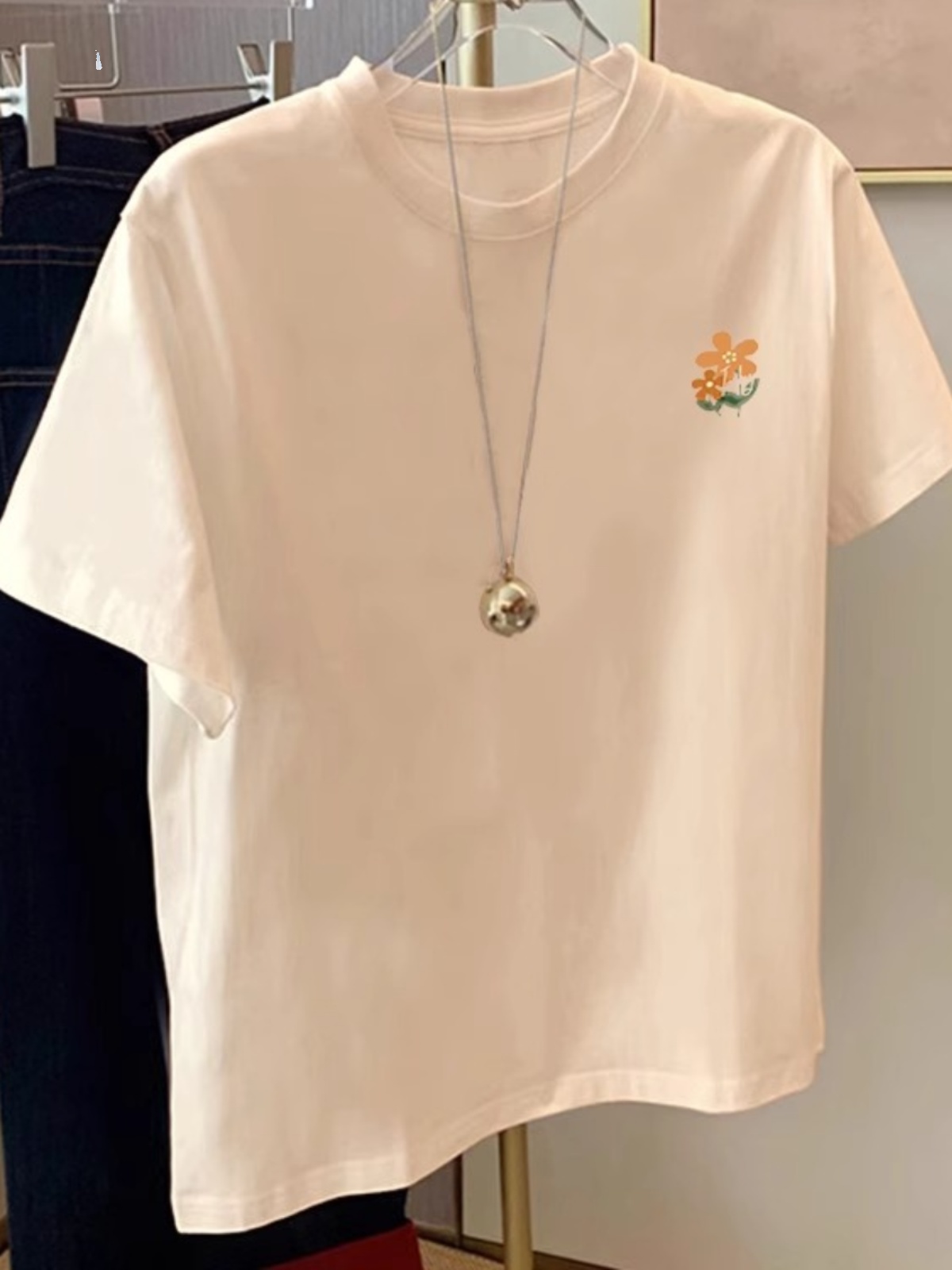 2025 Summer New Arrival White Pure Cotton Short-Sleeved T-Shirt Female Loose Easiest for Match Fashionable Stylish Younger Pattern Print Tops Ins