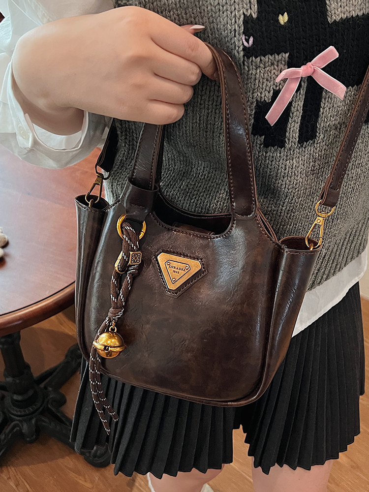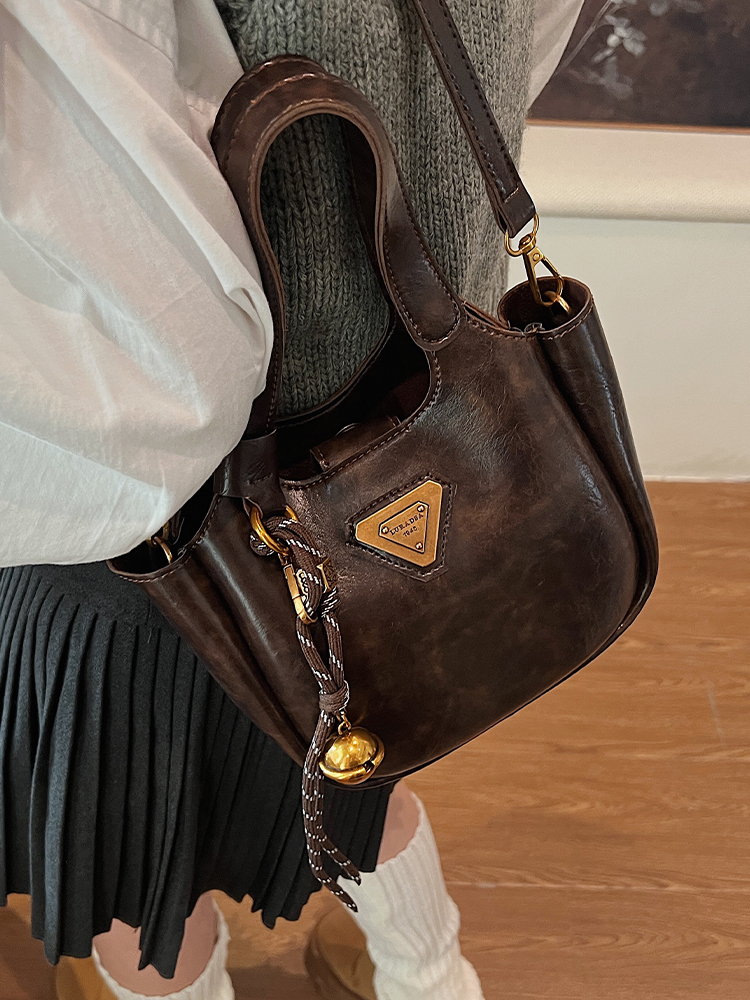 2060.Bag Autumn Winter Retro Hand Holding Bucket Bag Women's K-style New Arrival Casual Shoulder Bag 2024 Fancy Women's Bag