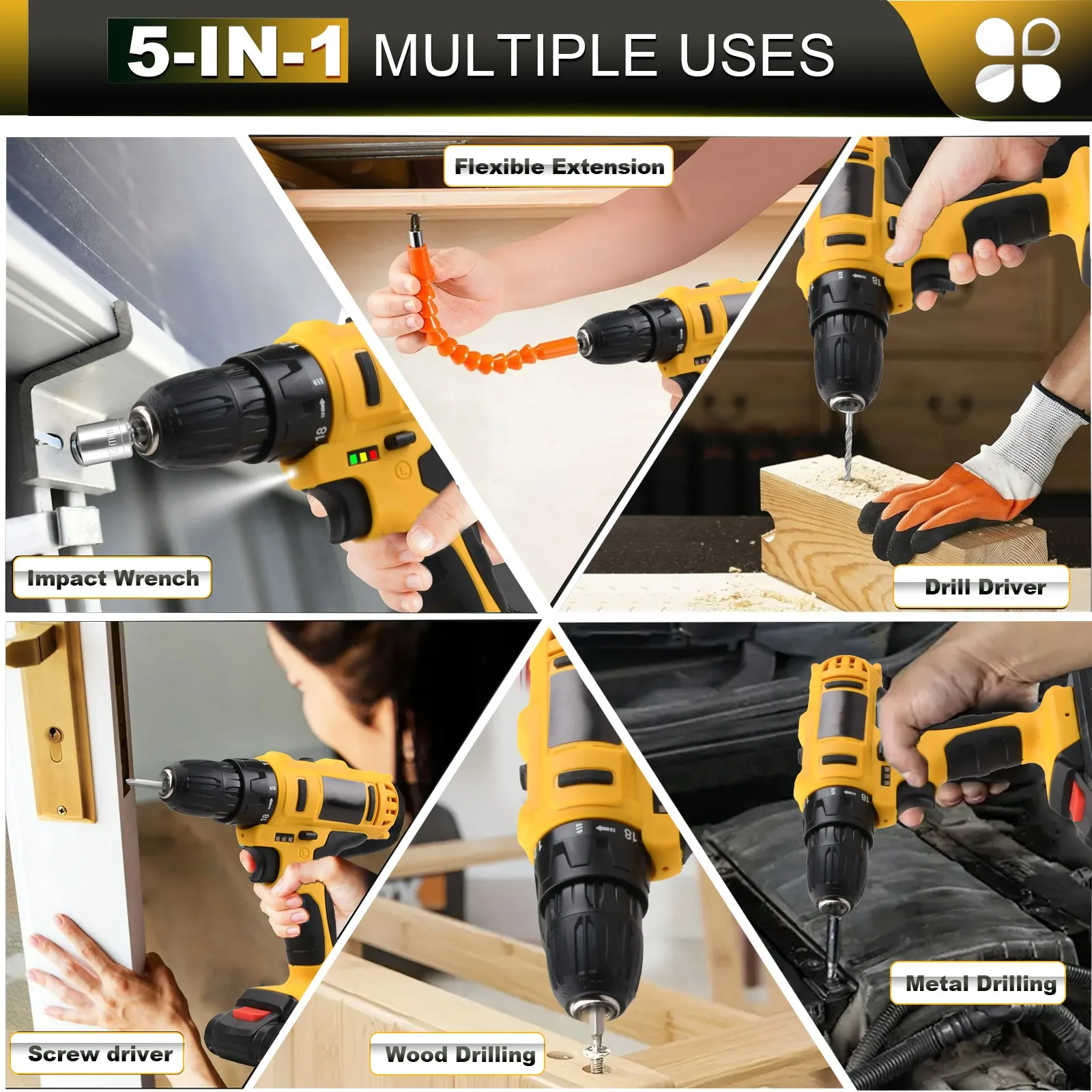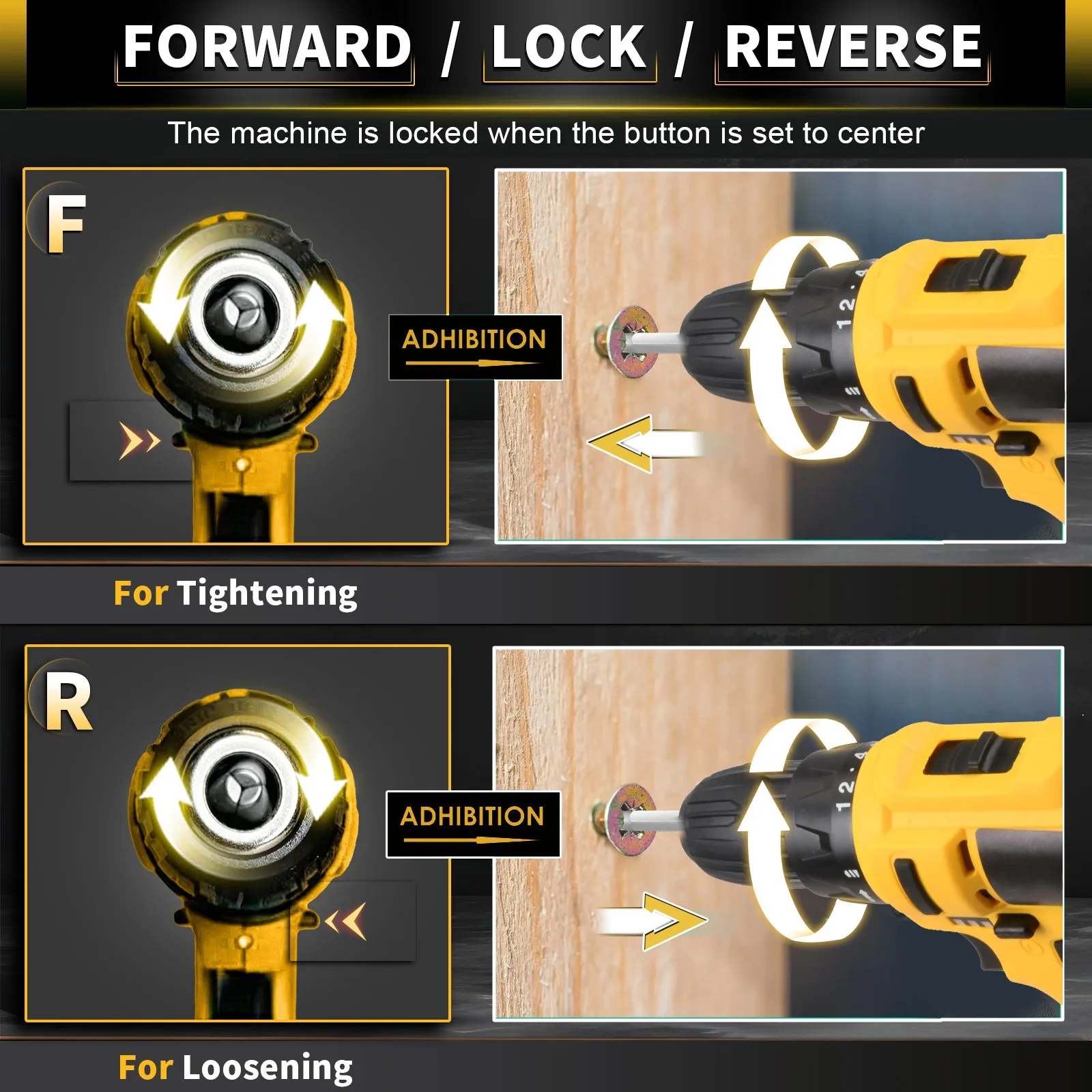 20V Cordless Drill Set Electric Screwdriver Mini DIY Tools Variable Speed Brushed Motor Power Source Battery Local US Warehouse