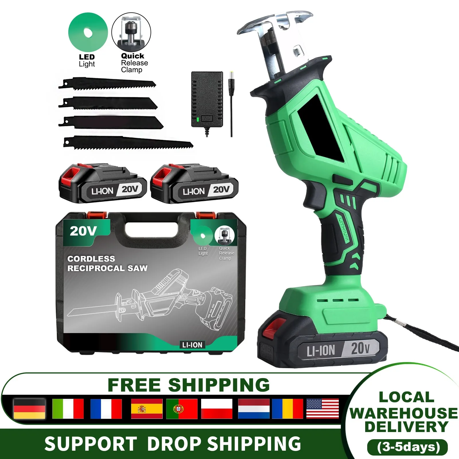 20V Cordless Electric Reciprocal Saw DIY Grade for Metal Wood PVC Plastic-Local US Warehouse