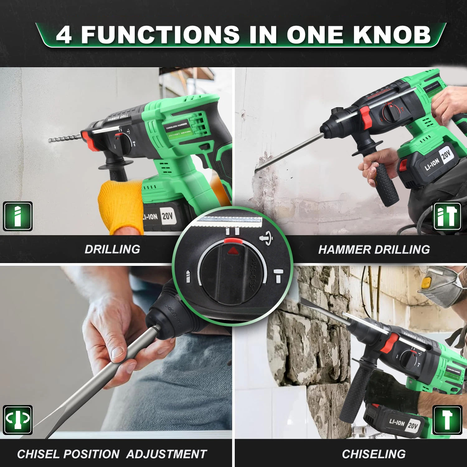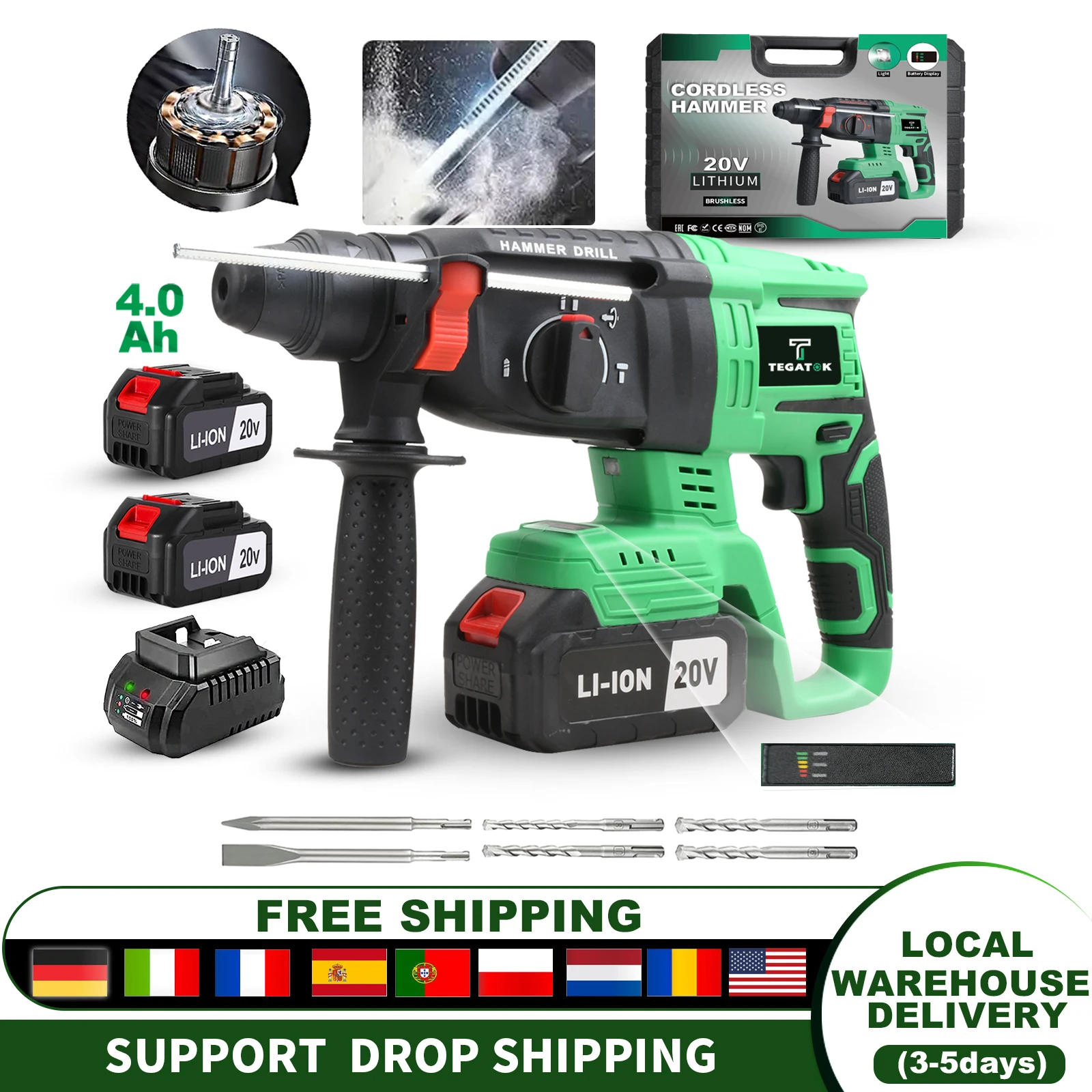 20V Cordless Hammer Drill with SDS Plus Bit Electric Rotary Hammer for Demolition and Drilling,Local US Warehouse