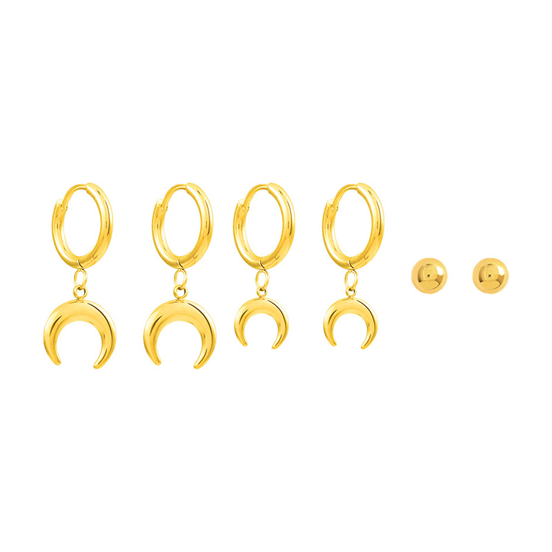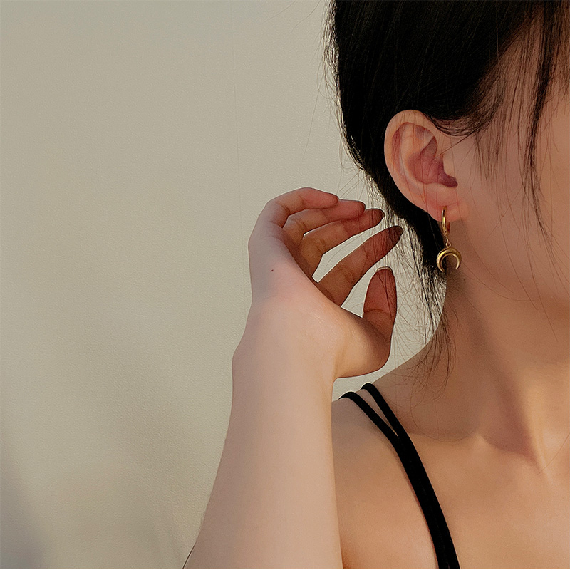 3-Piece Earrings Ins Cold Wind Crescent Ear Clip Pierced Ears Accessories Minimalist Elegant Titanium Steel Ear Studs Simple Earrings