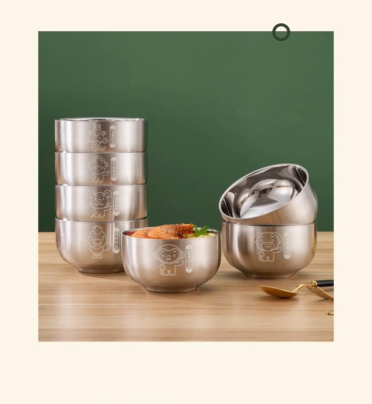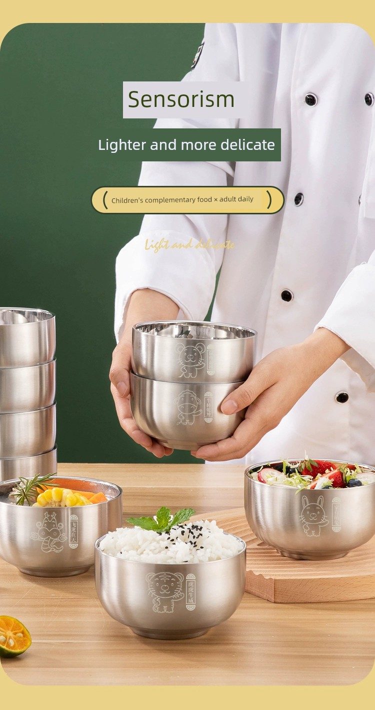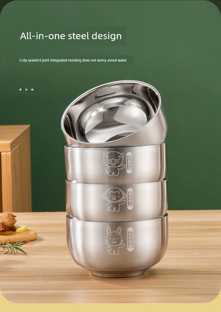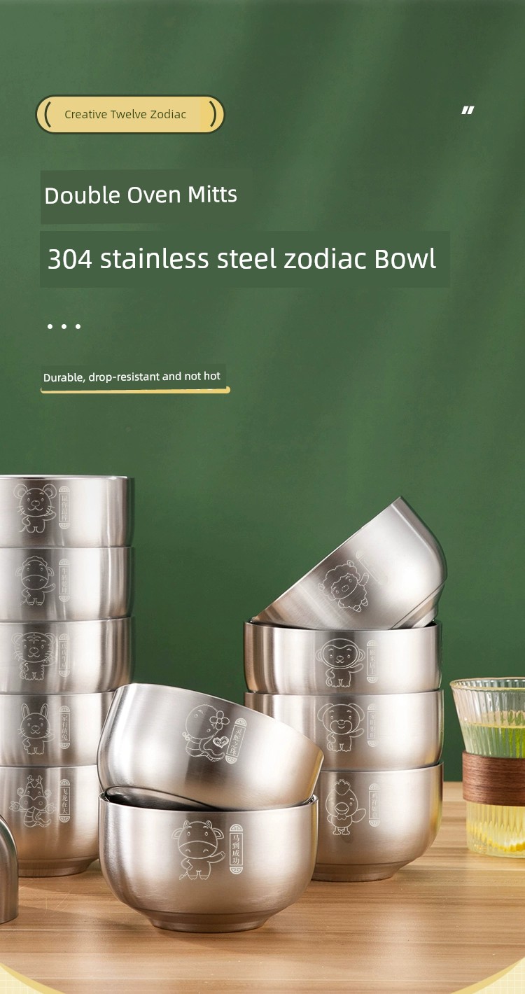 304 Stainless Steel Bowl Food Grade Twelve Zodiac Bowl Baby Double-Layer Anti-Scald Drop Proof Bowl For Home Children's Bowl Instant Noodles