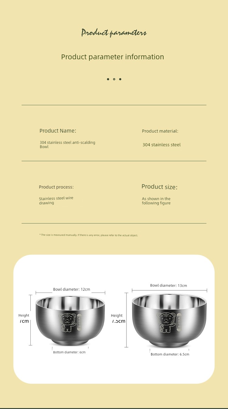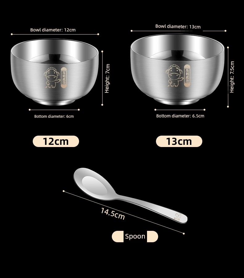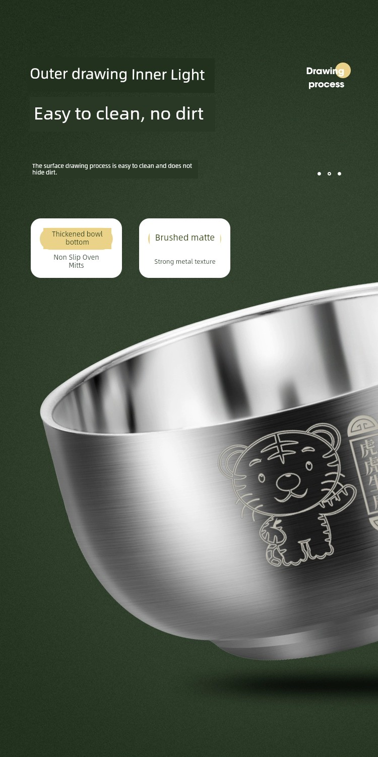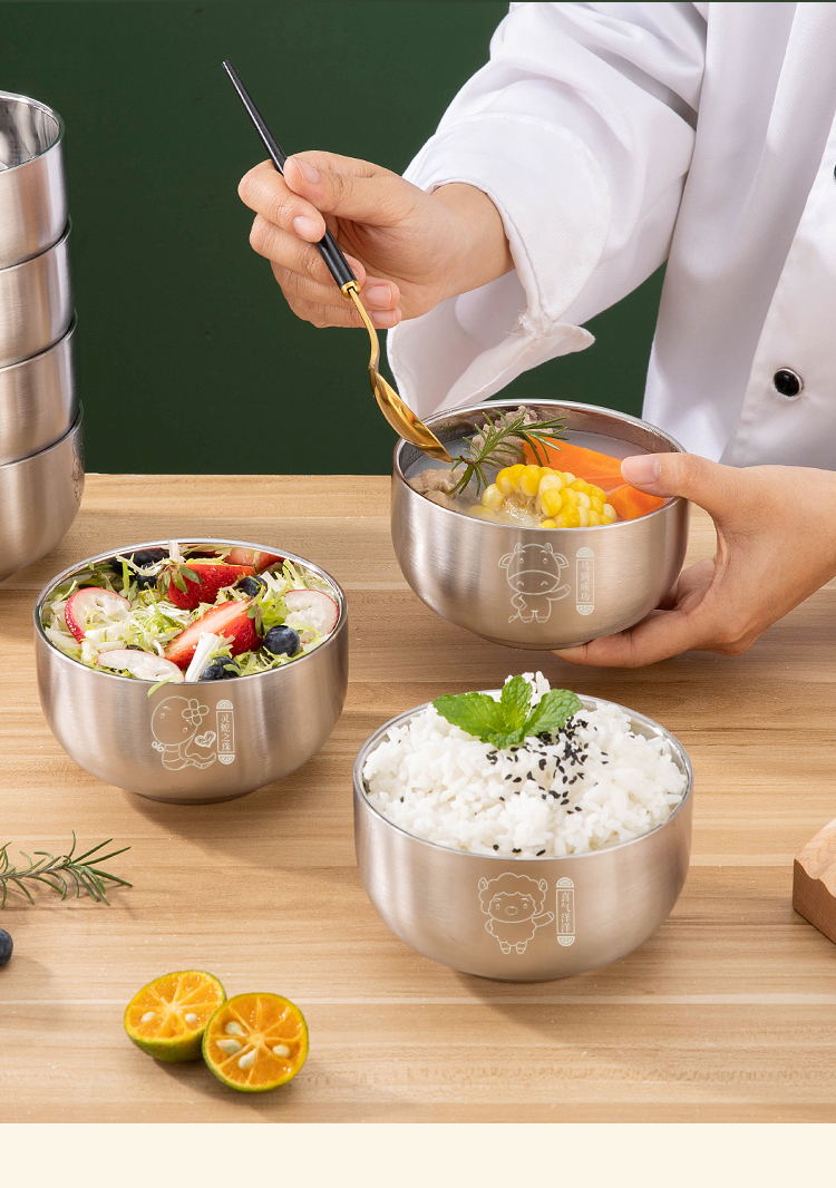 304 Stainless Steel Bowl Food Grade Twelve Zodiac Bowl Baby Double-Layer Anti-Scald Drop Proof Bowl For Home Children's Bowl Instant Noodles
