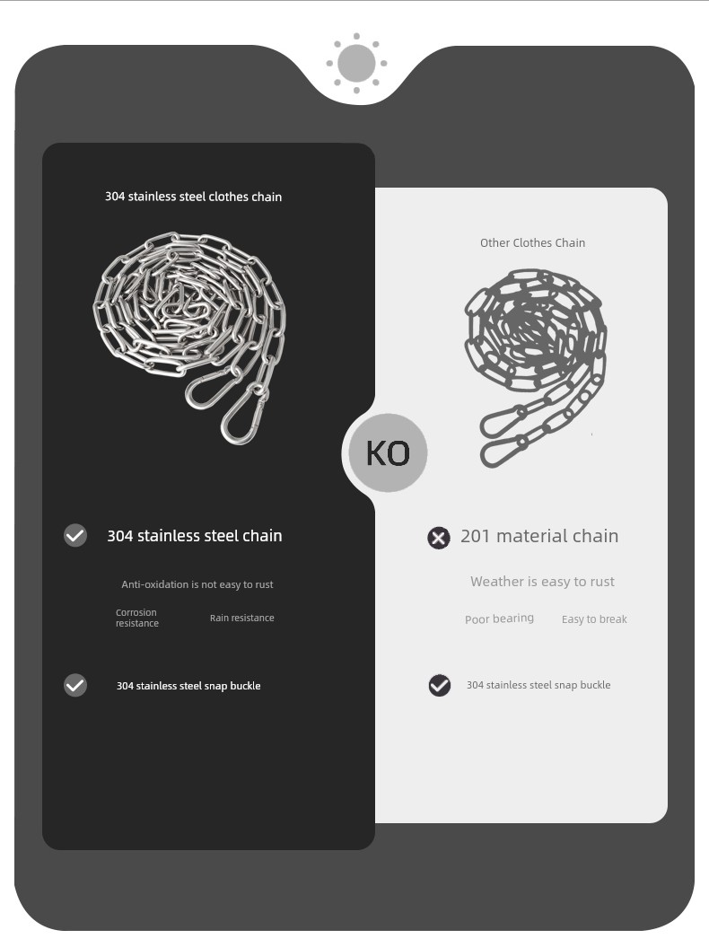 304 Stainless Steel Clothesline Chain Hang Clothes Air Clothes Chain Clothesline Wire Rope Indoor Solid Retractable Windproof