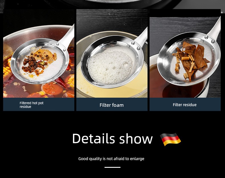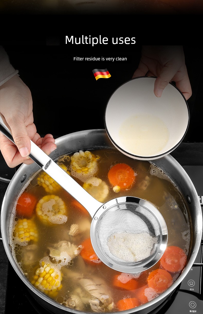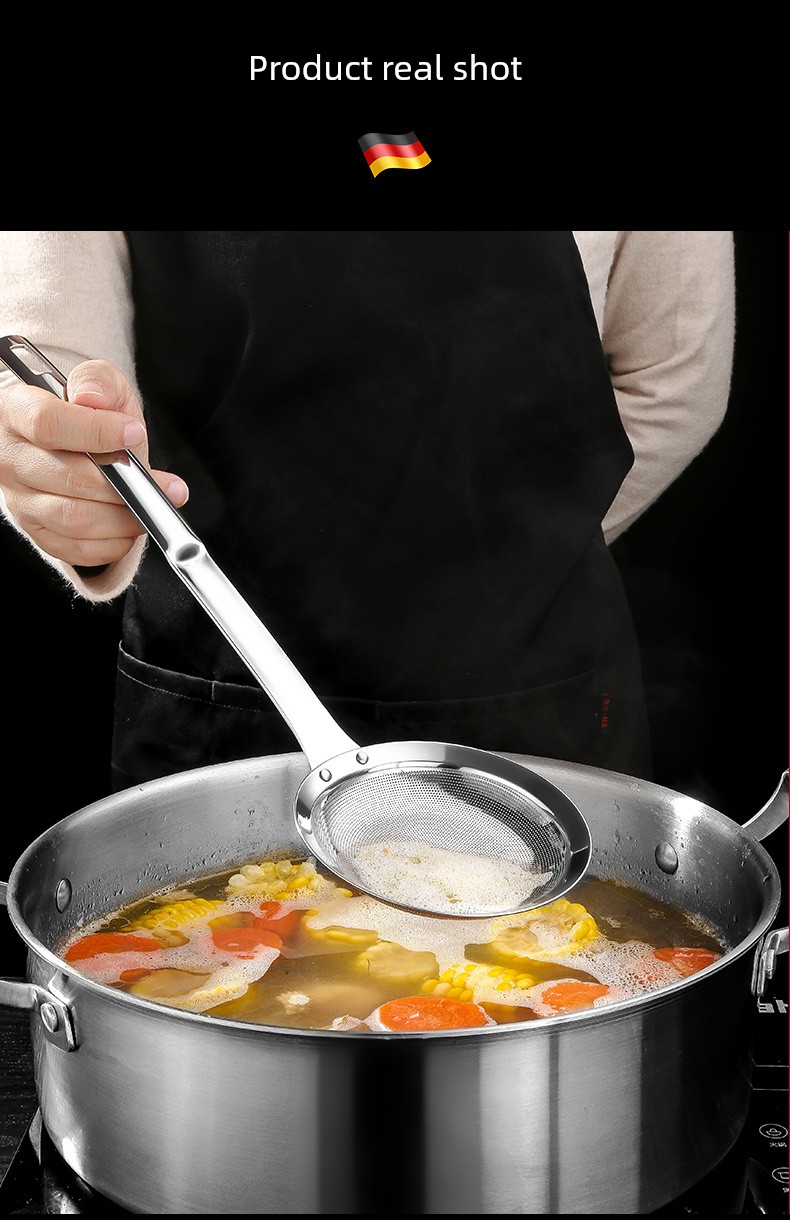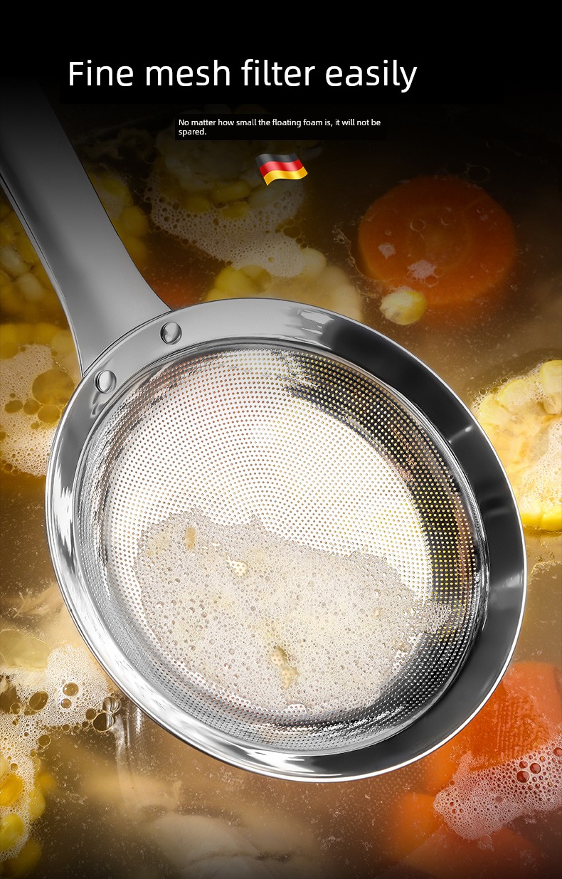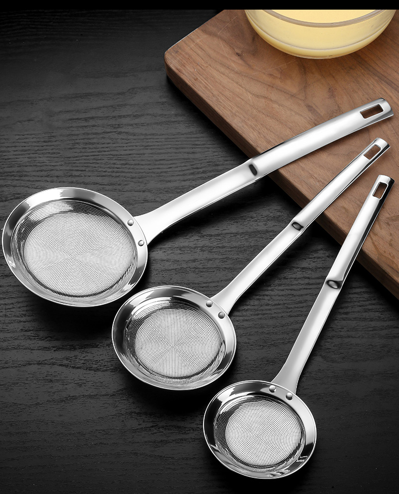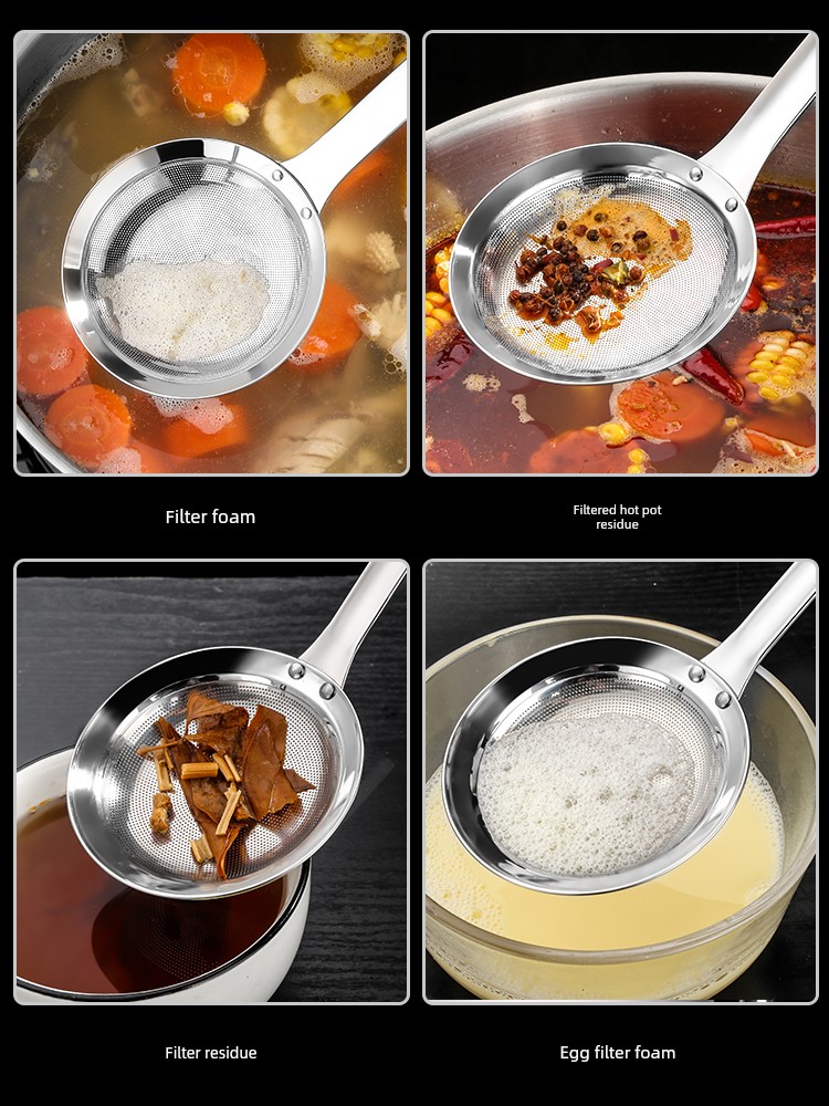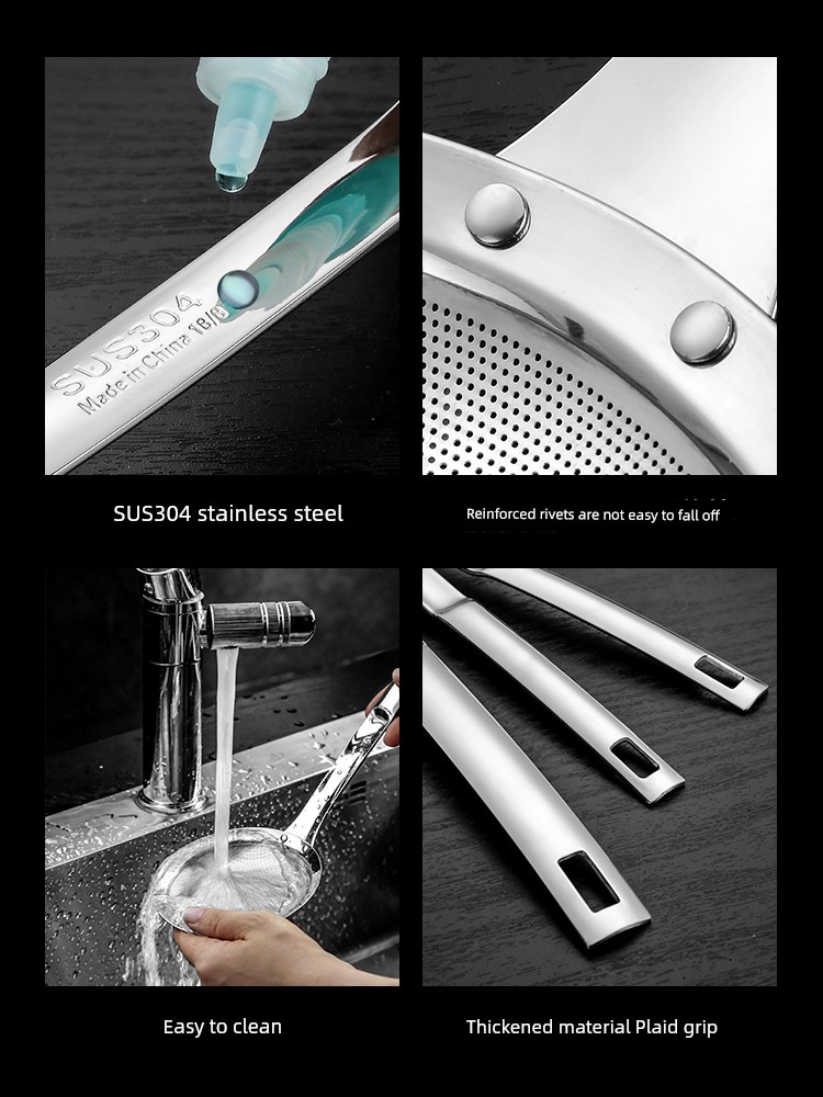 304 Stainless Steel Colander Skimmer Oil Filter Strainer For Home Foaming Spoon Grease Strainer Kitchen Floating Foam Oil Removing Mrun