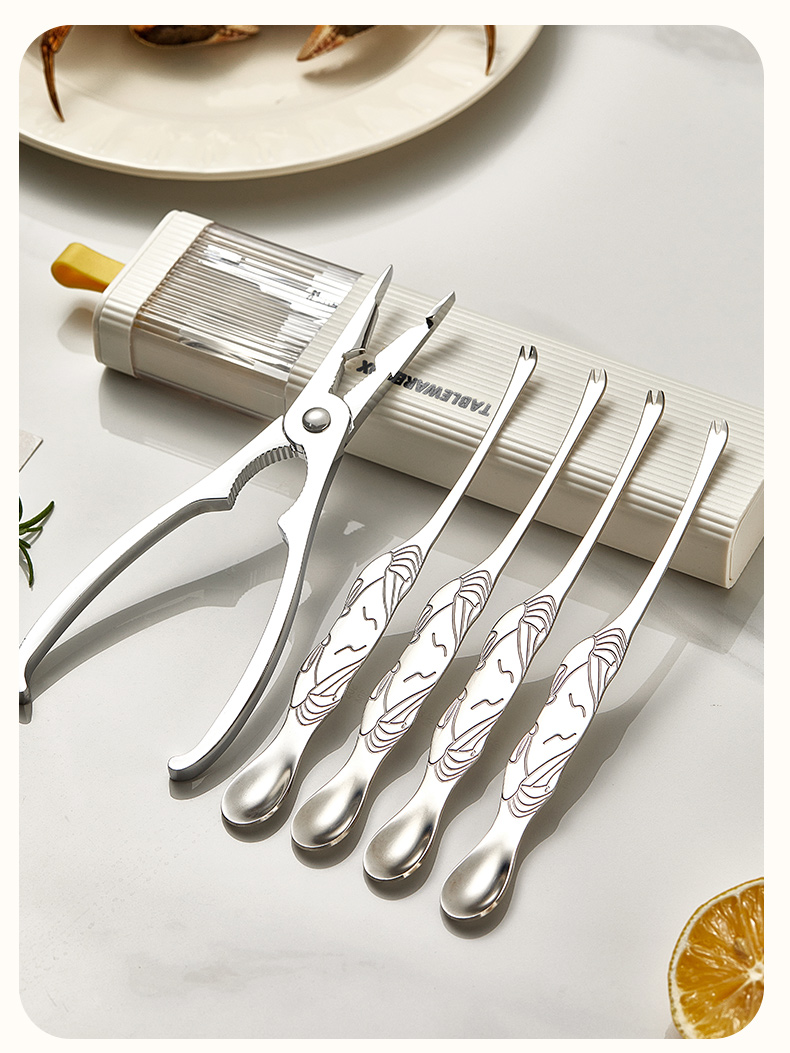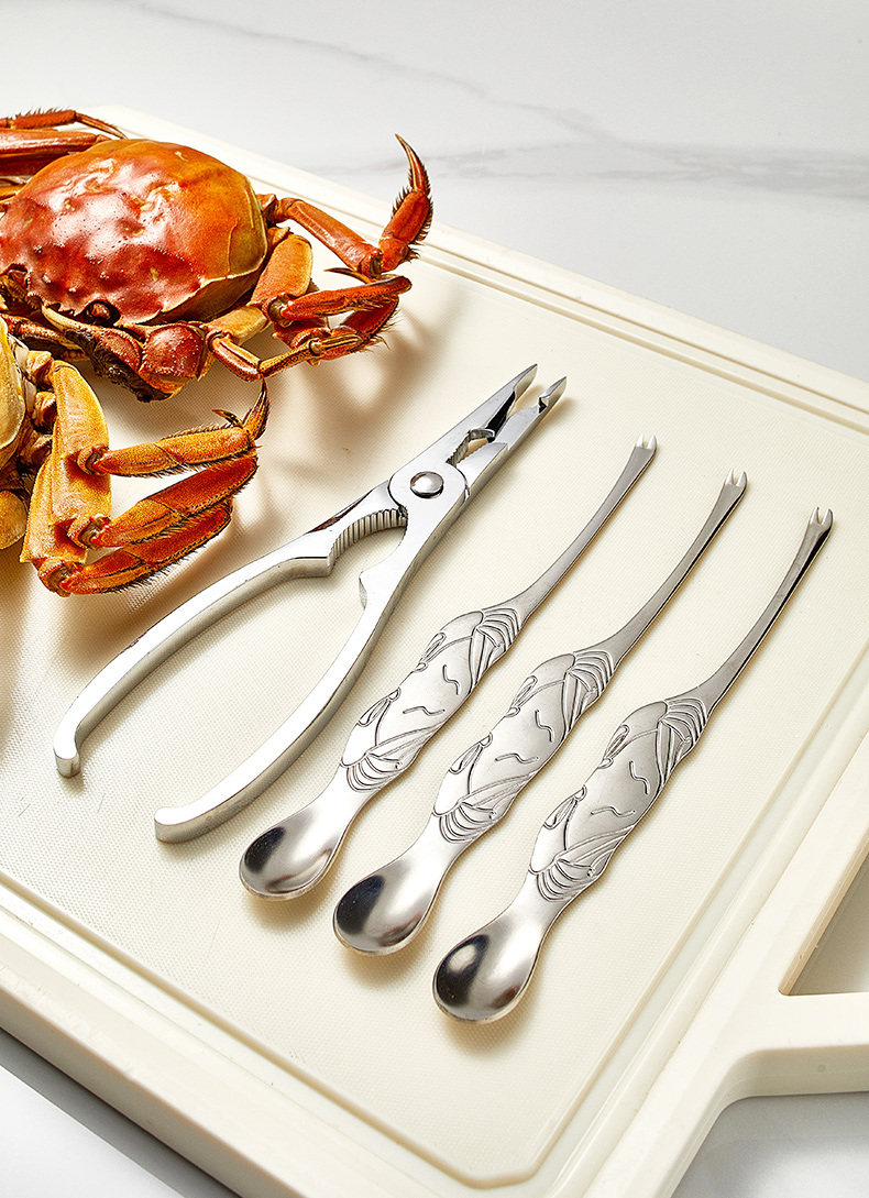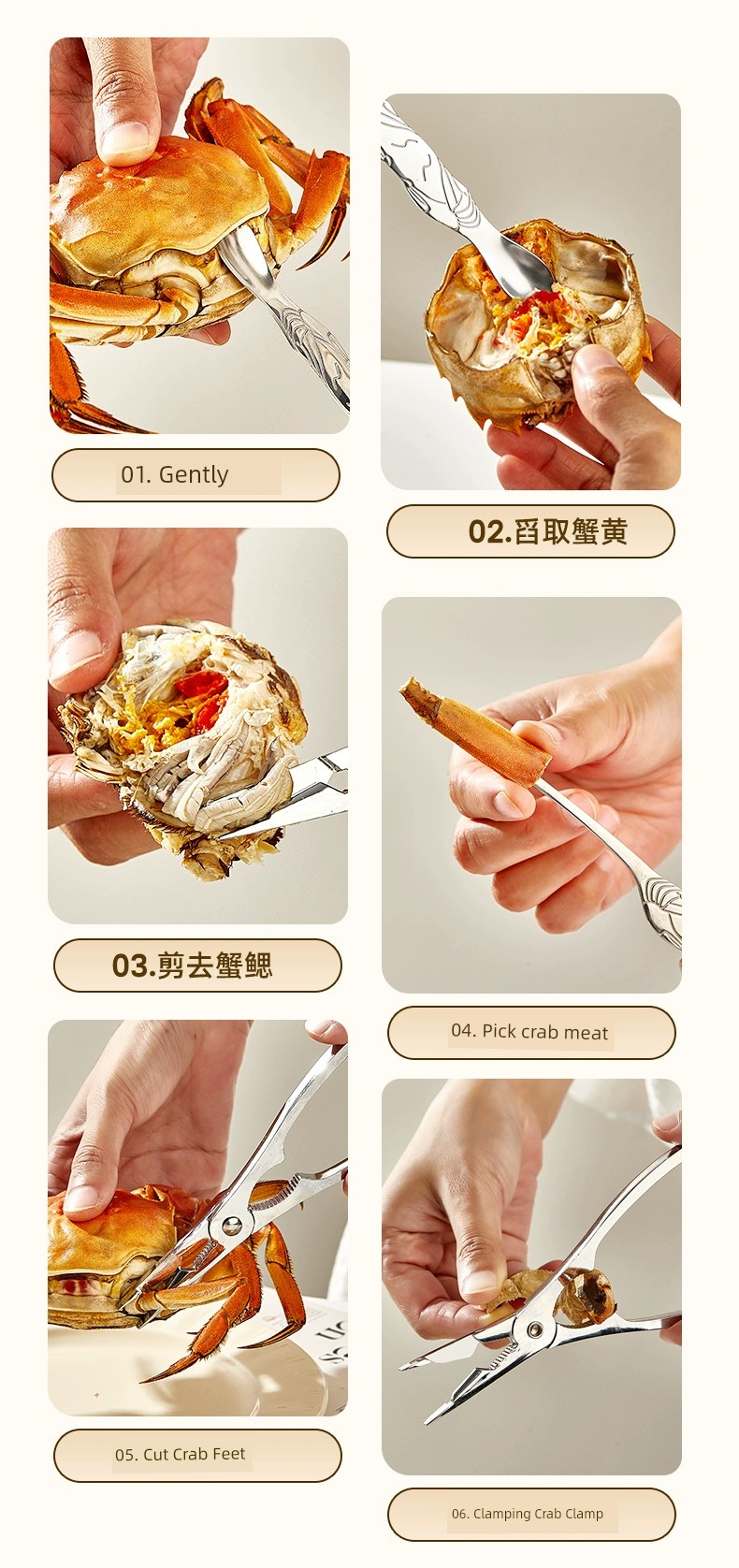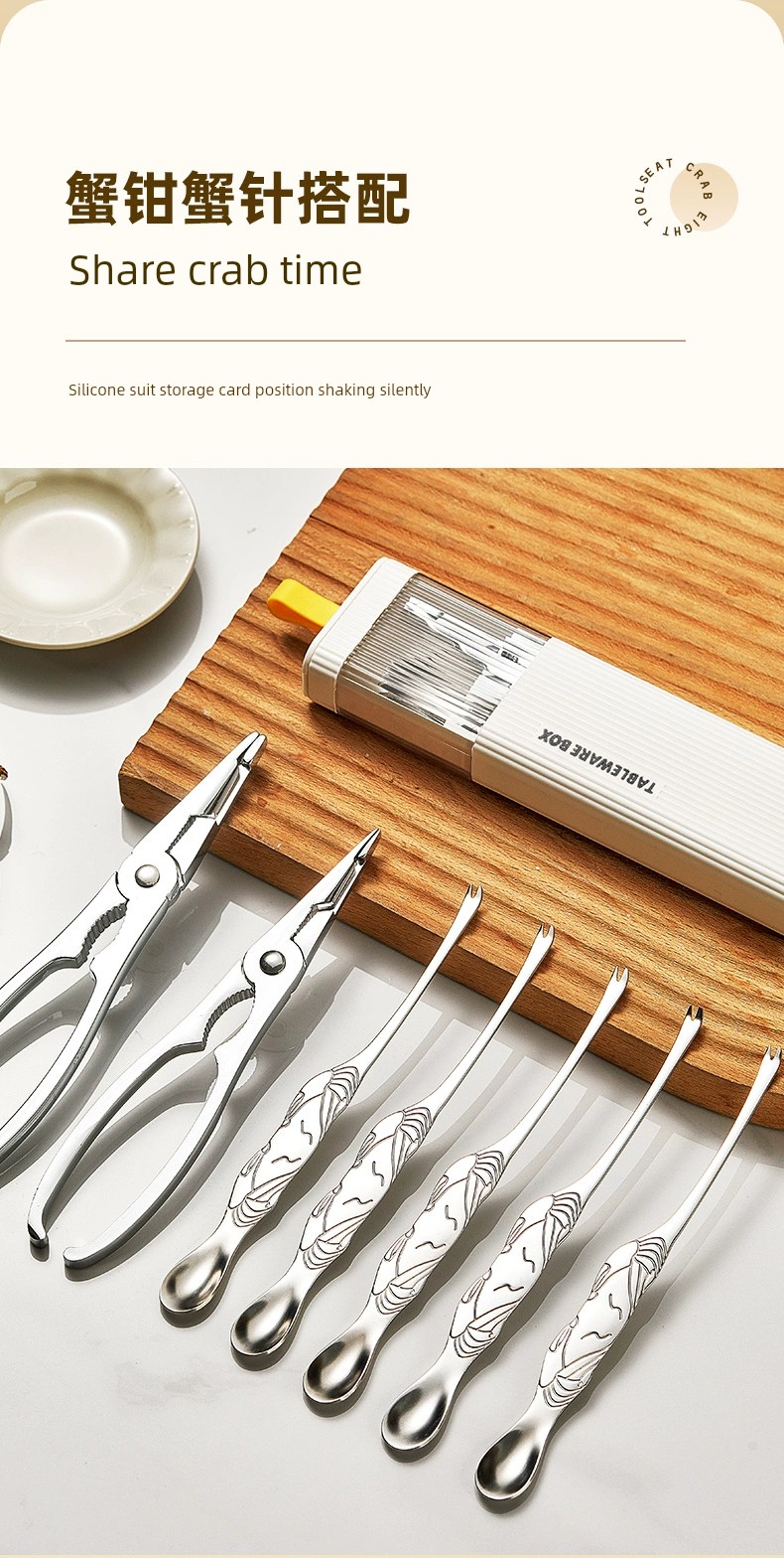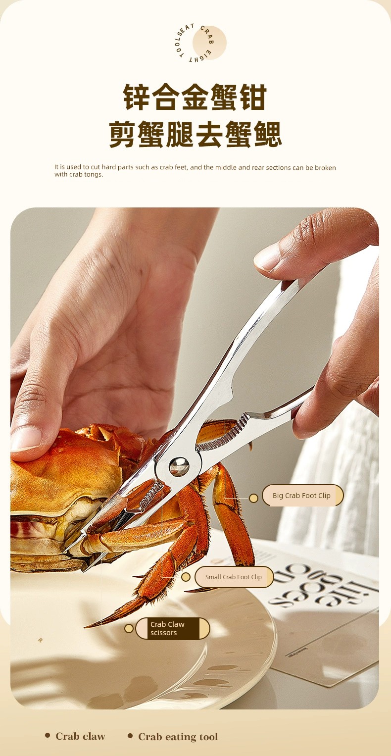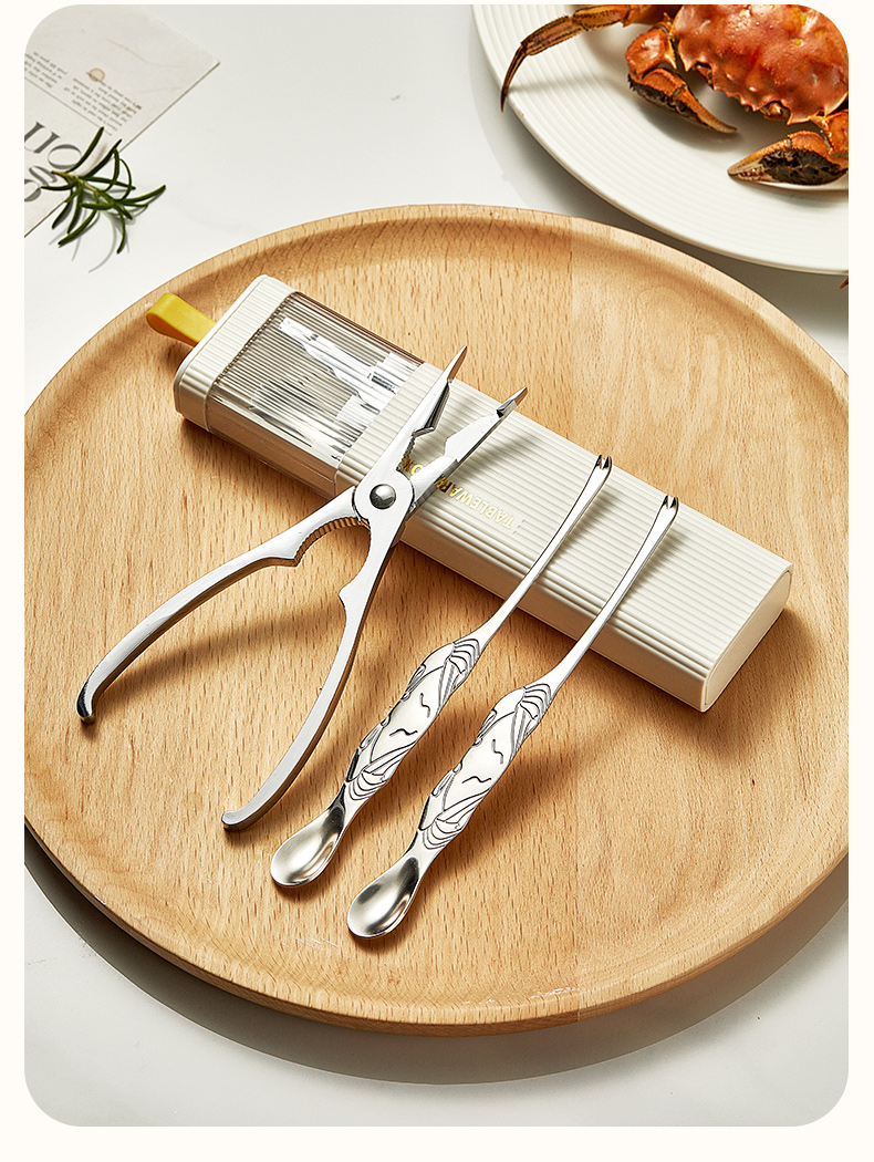 304 Stainless Steel Eight Tools for Eatting Crabs Split Hairy Crab Peeling Crab Dedicated Fantastic Net Clamp Scissors Three-Piece Crab Eating Tool