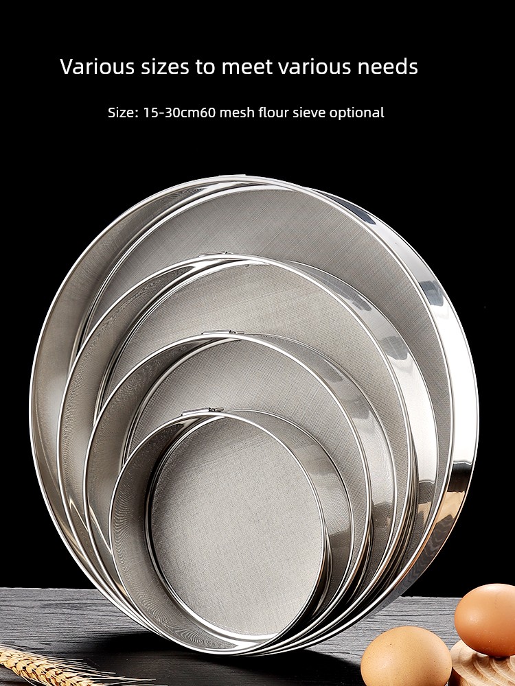 304 Stainless Steel Sieve Flour Sifter Gong Screen Strainer Sieving For Home Screening Mesh Baking Ultra-Fine Leaking Surface