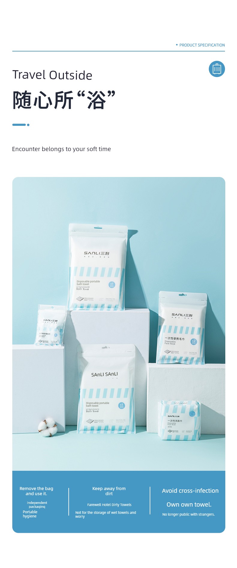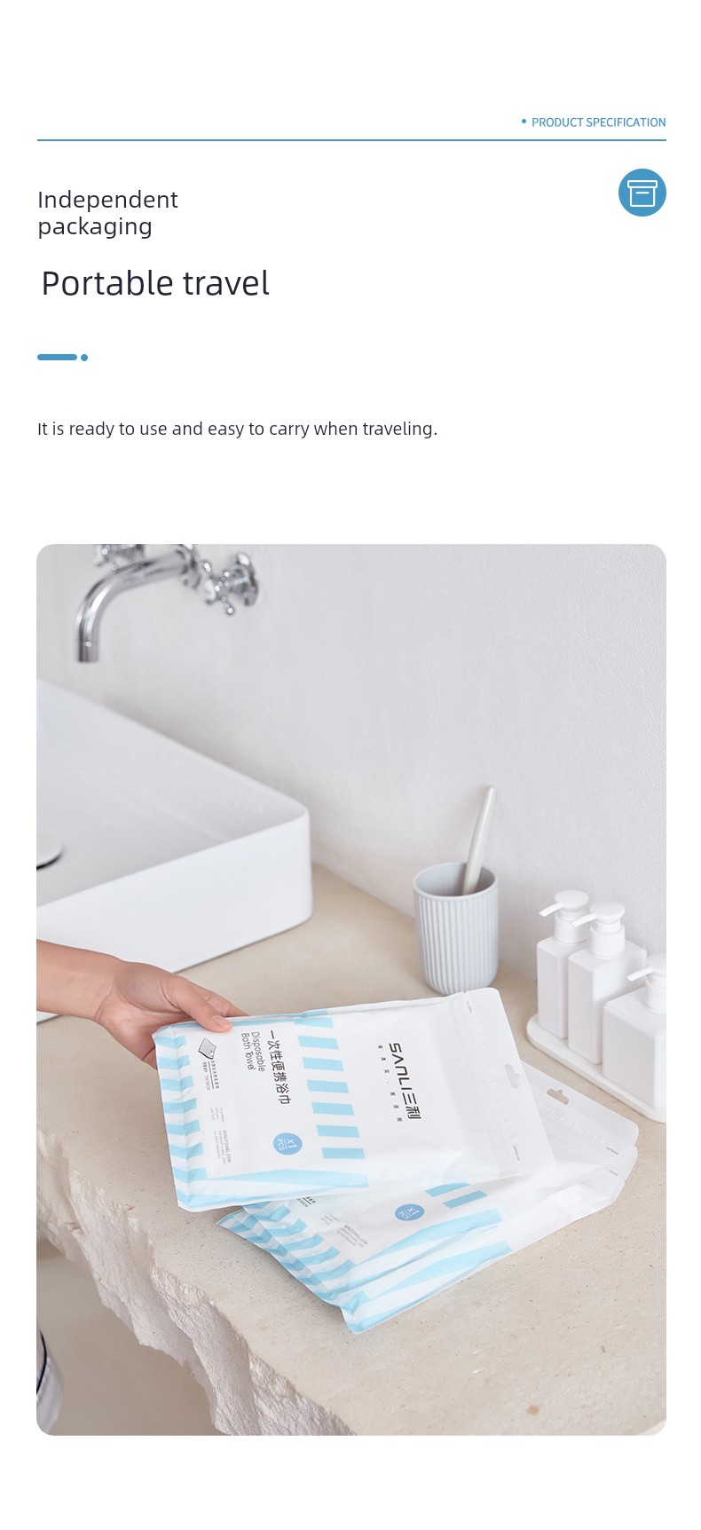 [50 Packs] Sanli Disposable Bath Towel Individually Packaged Travel Portable Thickened Dry Hotel Business Trip Wholesale Towels