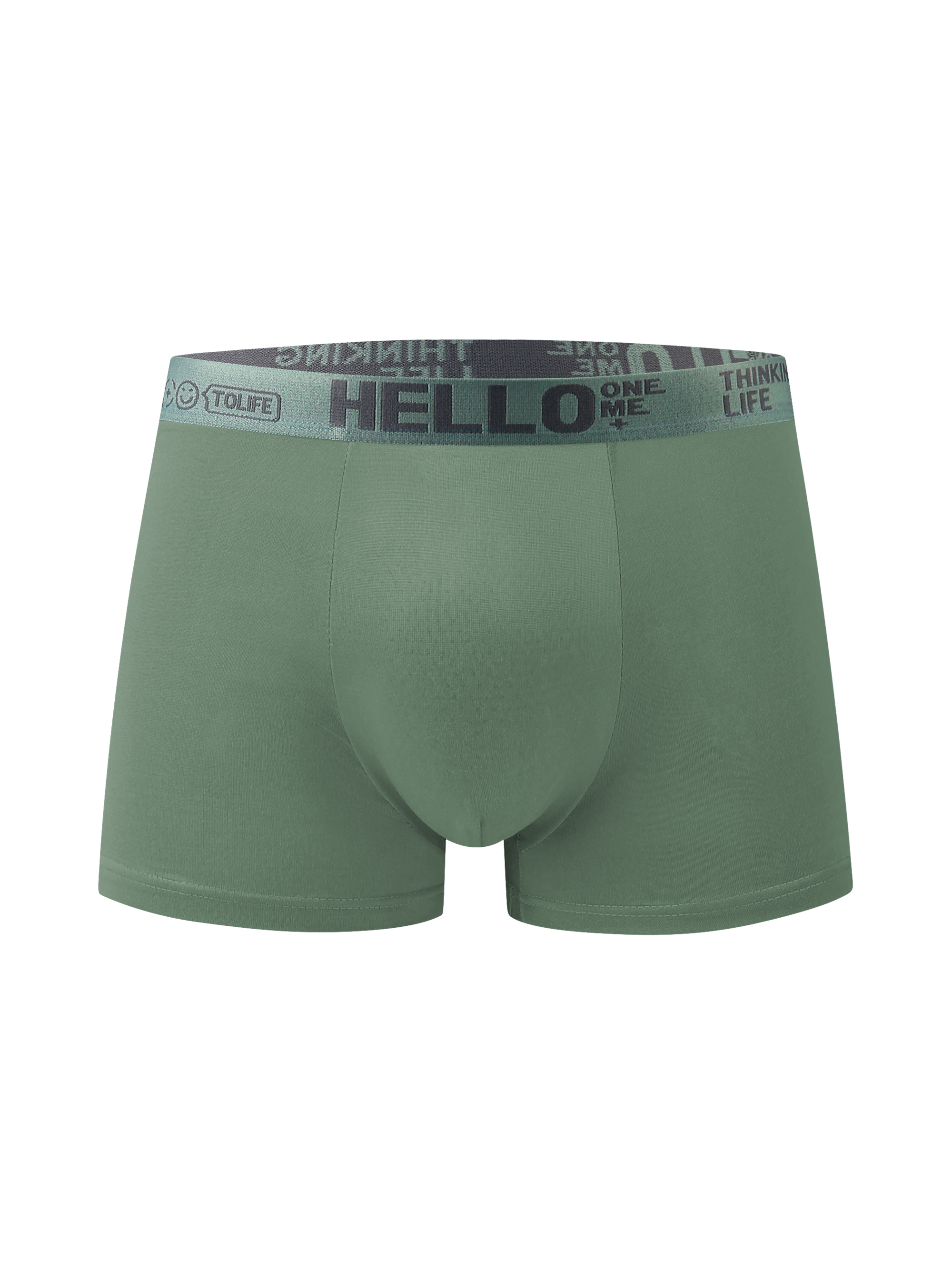 5-piece set of men s quick drying boxer shorts, solid color underwear with the word quot;HELLO quot; printed on it