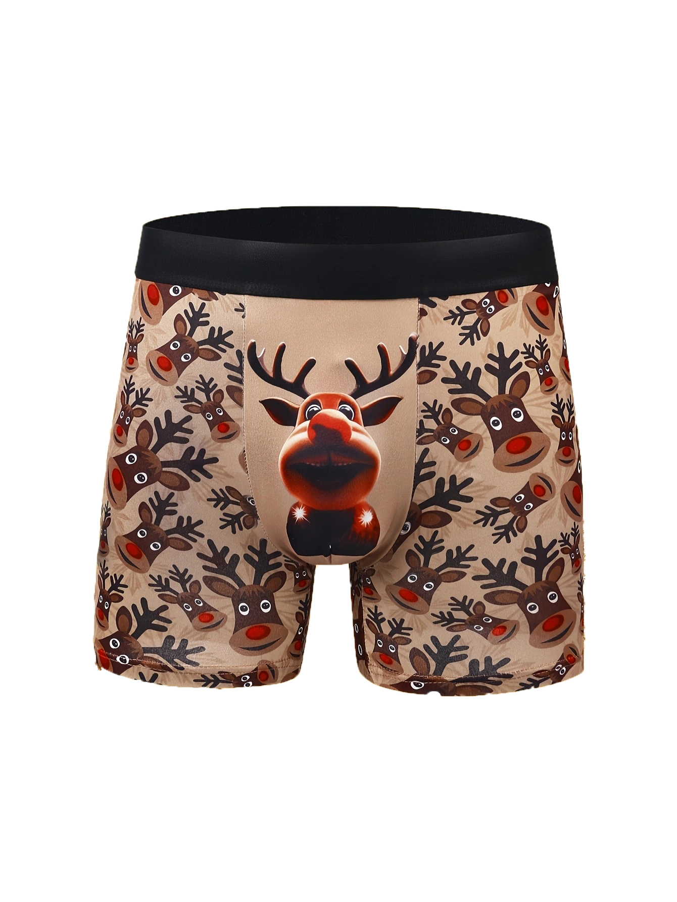 Christmas Exclusive! Men s Boxer Briefs with Reindeer Print, Unique Design, Suitable for Daily Wear/Parties.