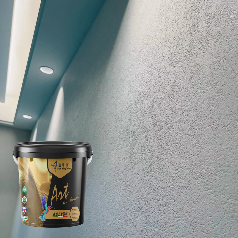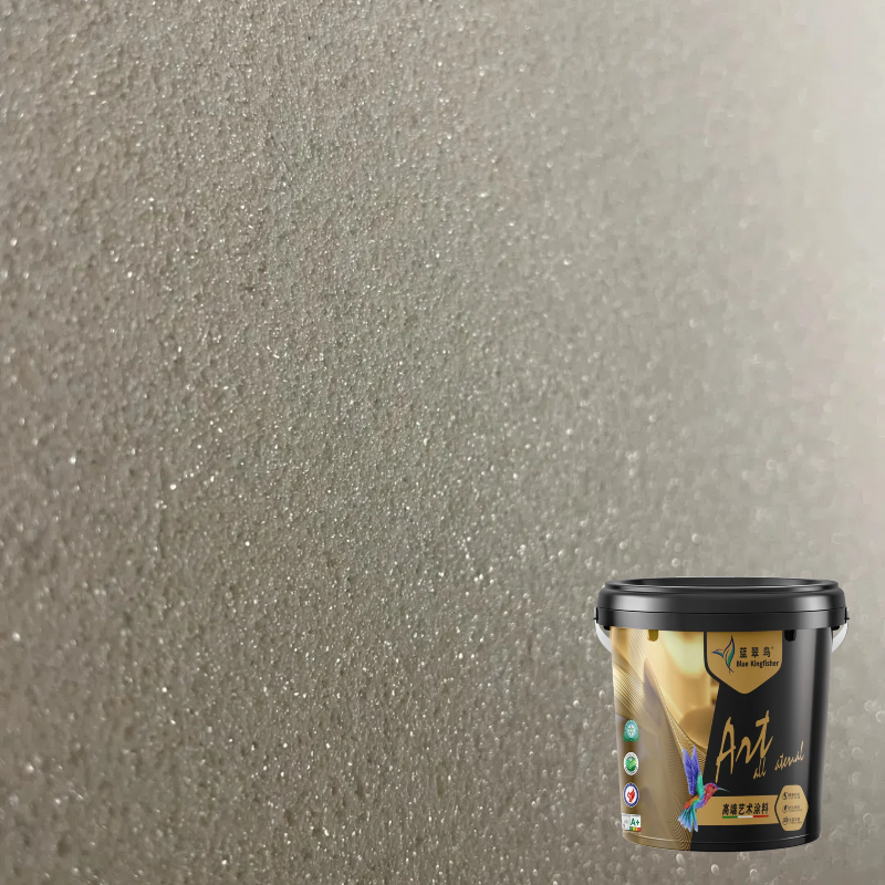 The Blue Kingfisher Texture Paint belongs to the category of art paint, with high-end water-based resin fusion selection of natural color stone as raw material, with strong three-dimensional texture, anti-ultraviolet aging, scrubbing resistance and other characteristics, suitable for villa exterior wall, hotel lobby wall, high-end club art wall and other scenes, both luxury artistic sense and outdoor weather resistance, help to create a high-grade space image.