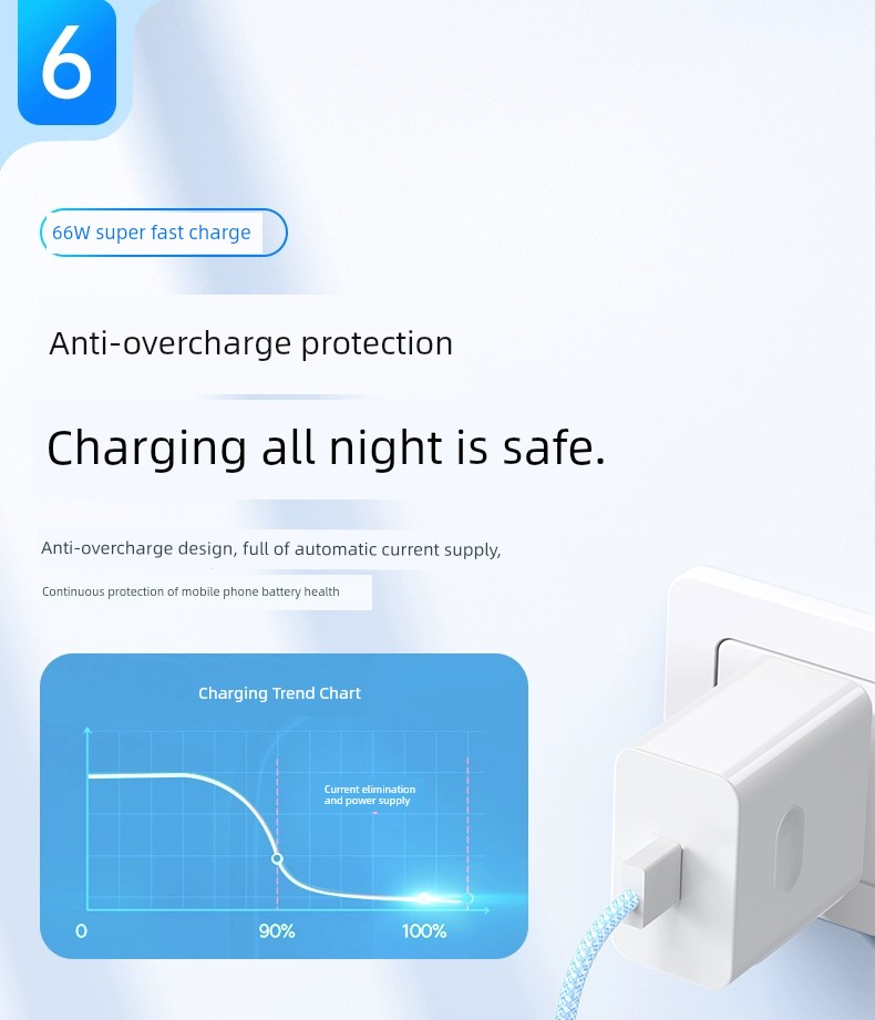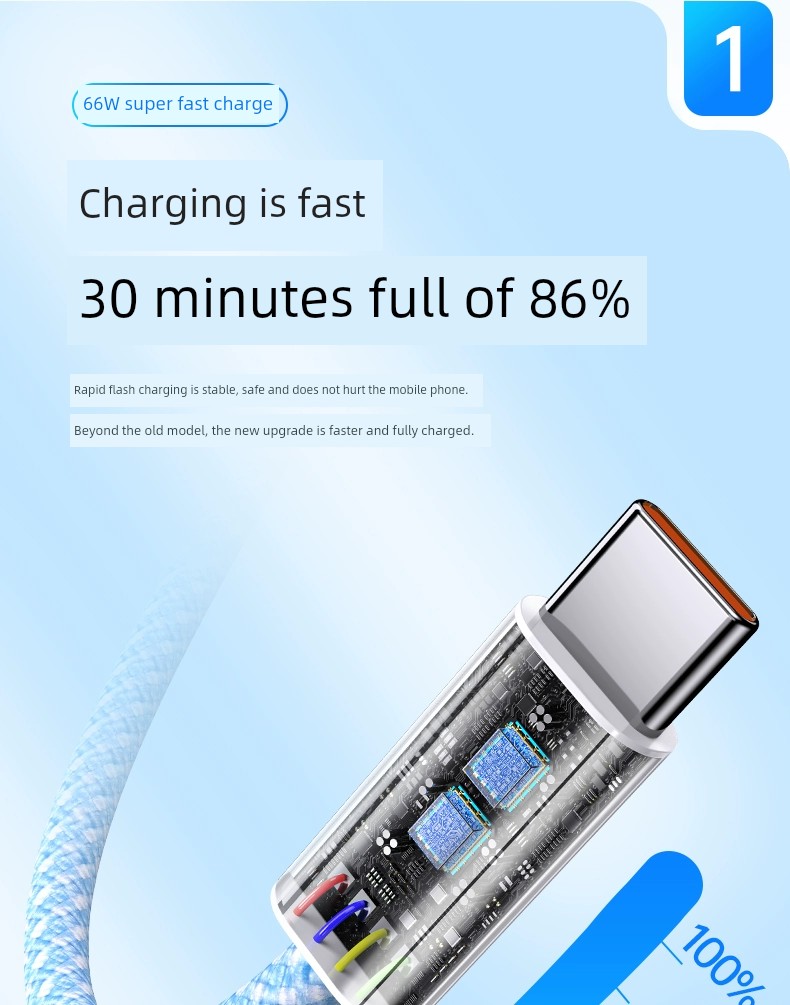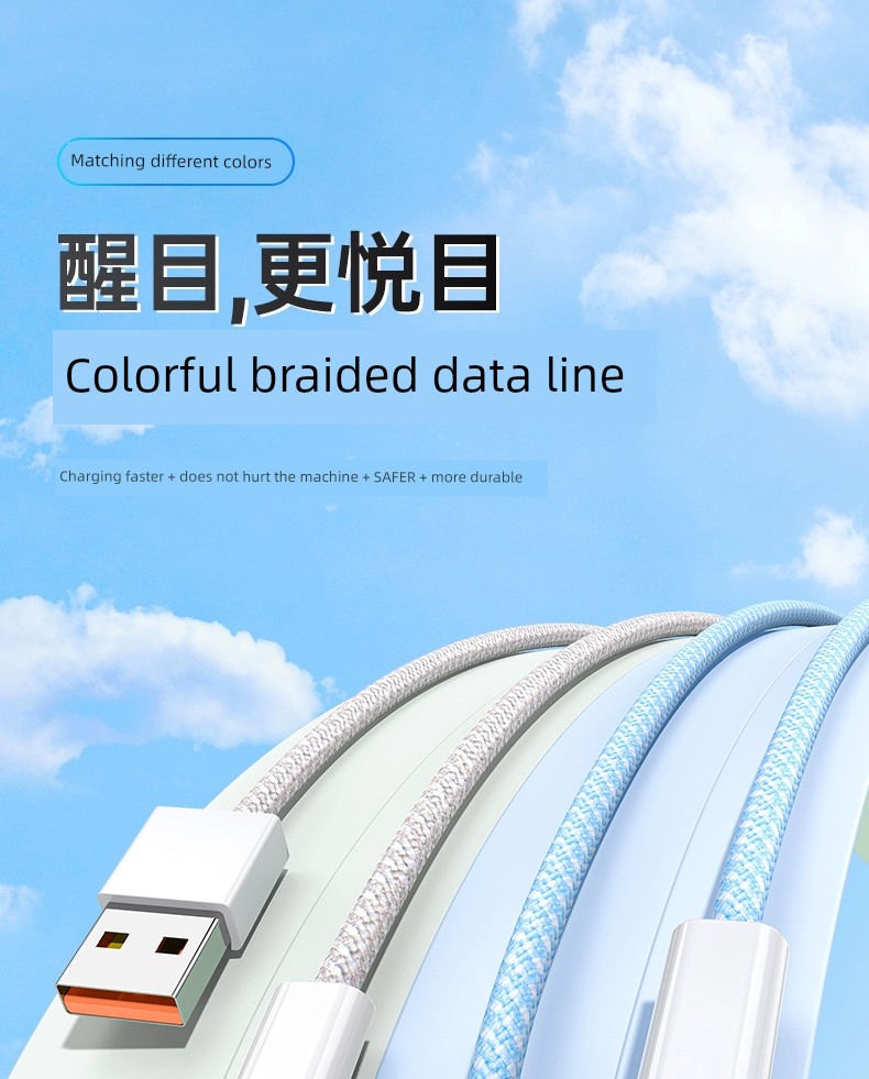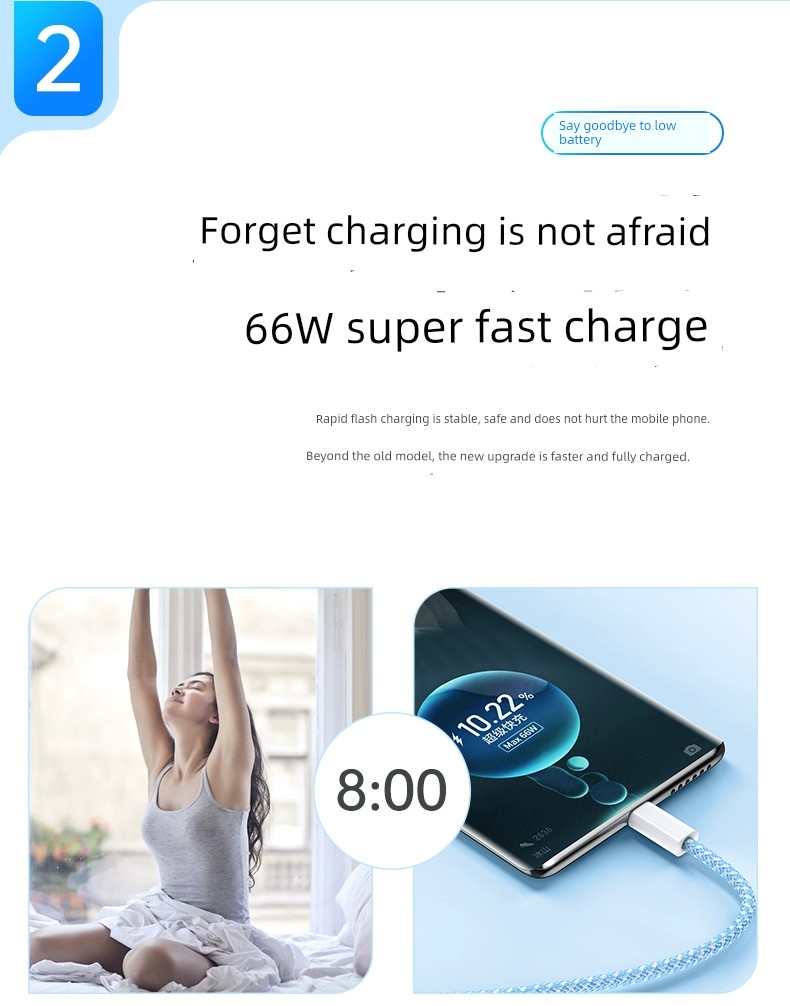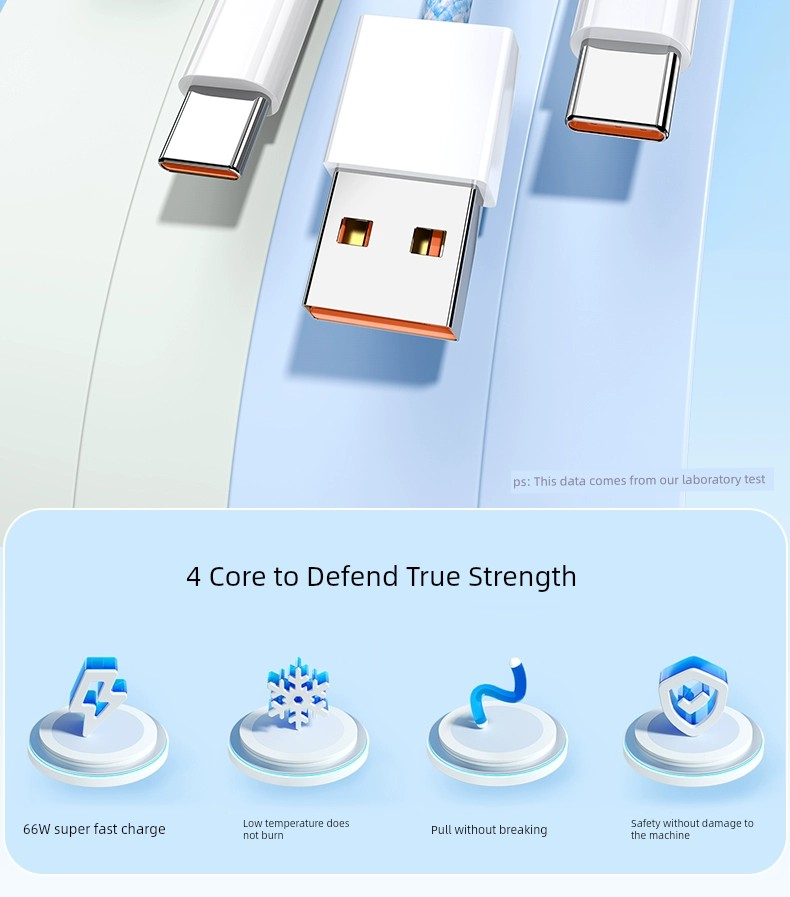 [66W Super Fast Charge] USB Type-C Cable 6A Charger BS for P20p30p40mate50 Huawei Xiaomi Vivo Glory 9/60 Android Phone Long 2 M TPC Punch