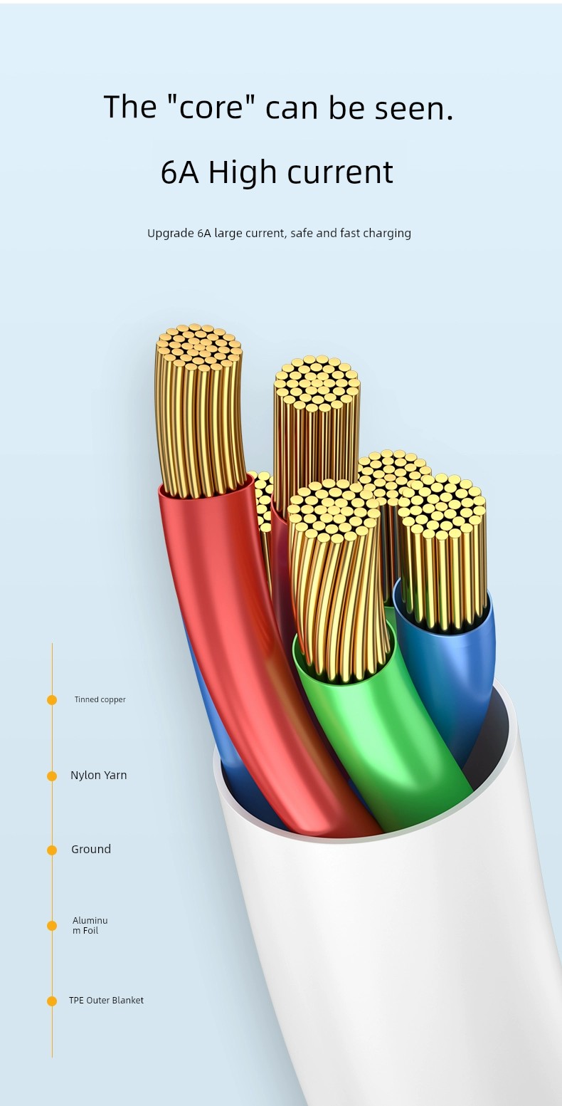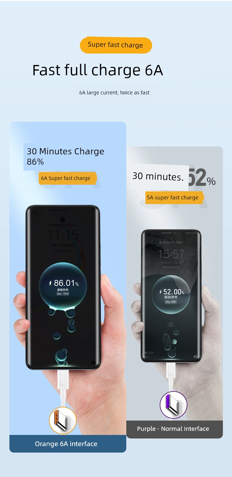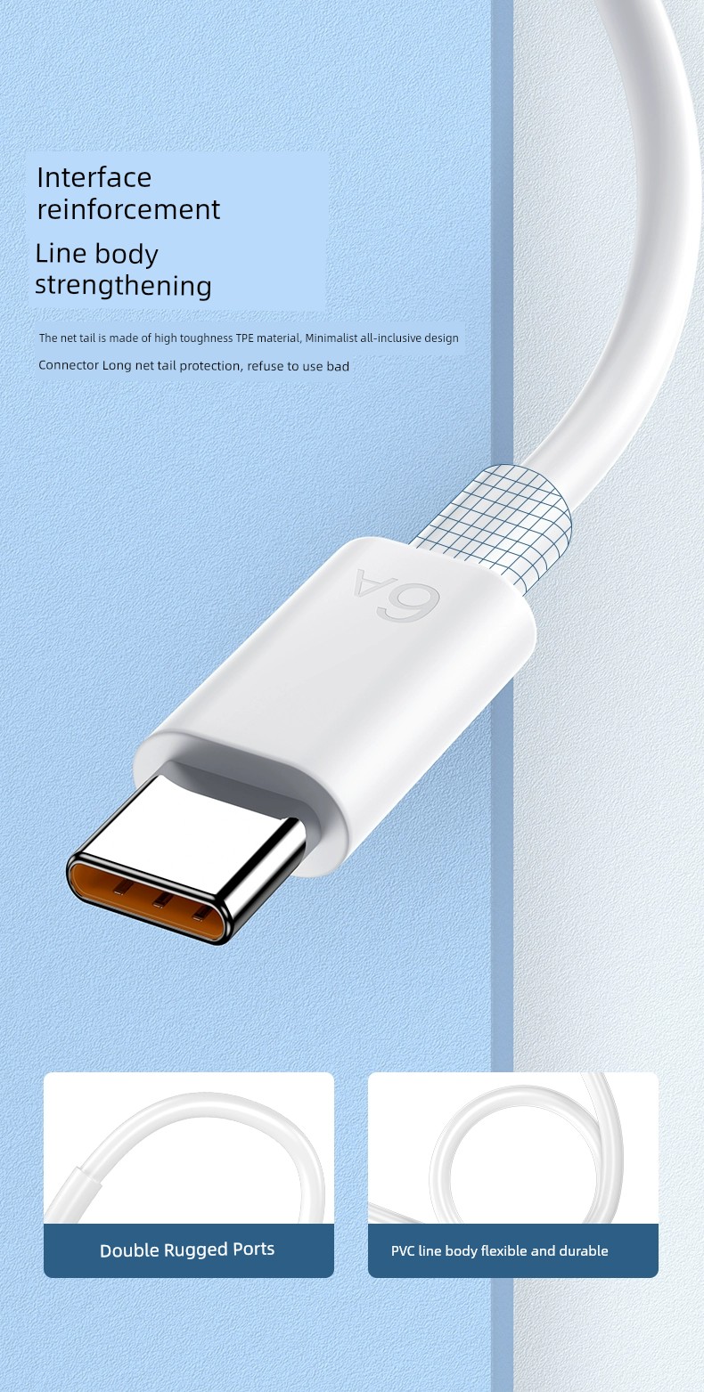 66W Super Fast Charge USB Type-C Cable 6A Genuine Goods BS for P20p30p40mate50 Glory TPC Long Xiaomi Huawei Tpyec Charger Nova8/9 Android Phone