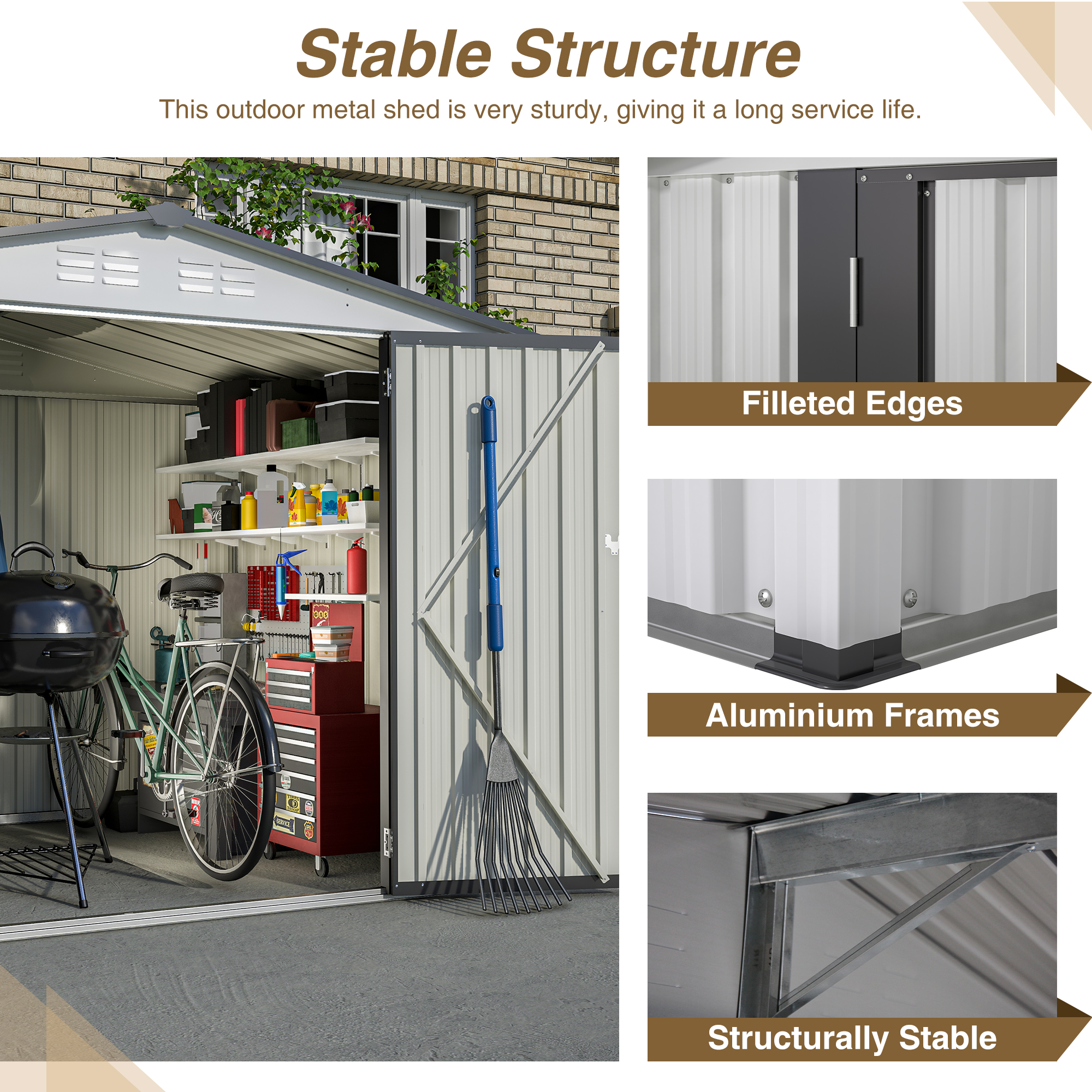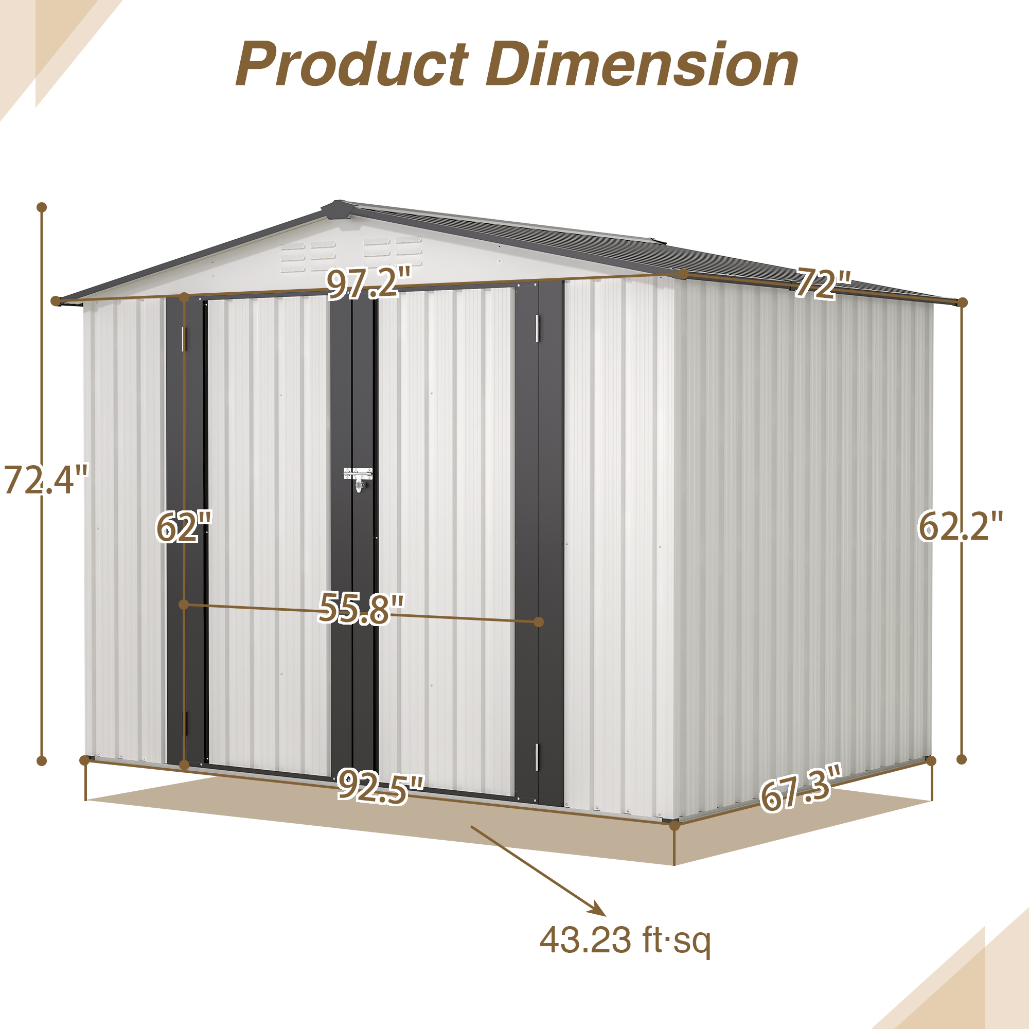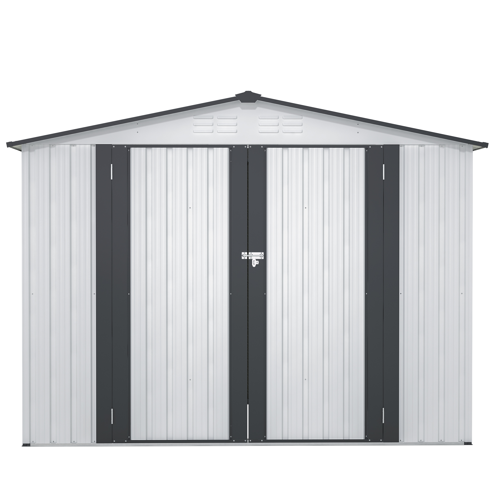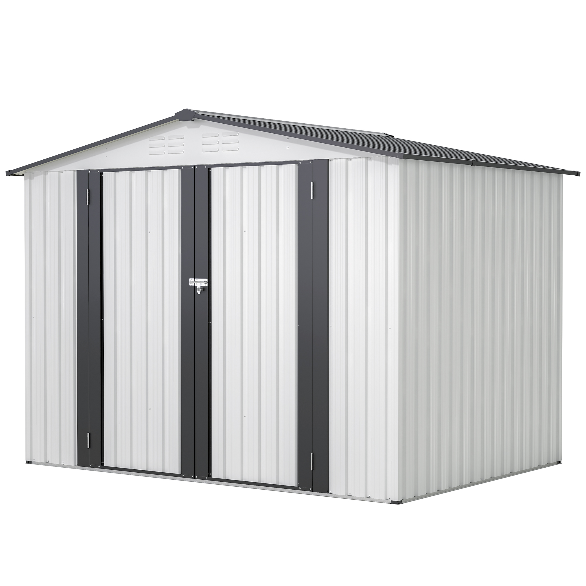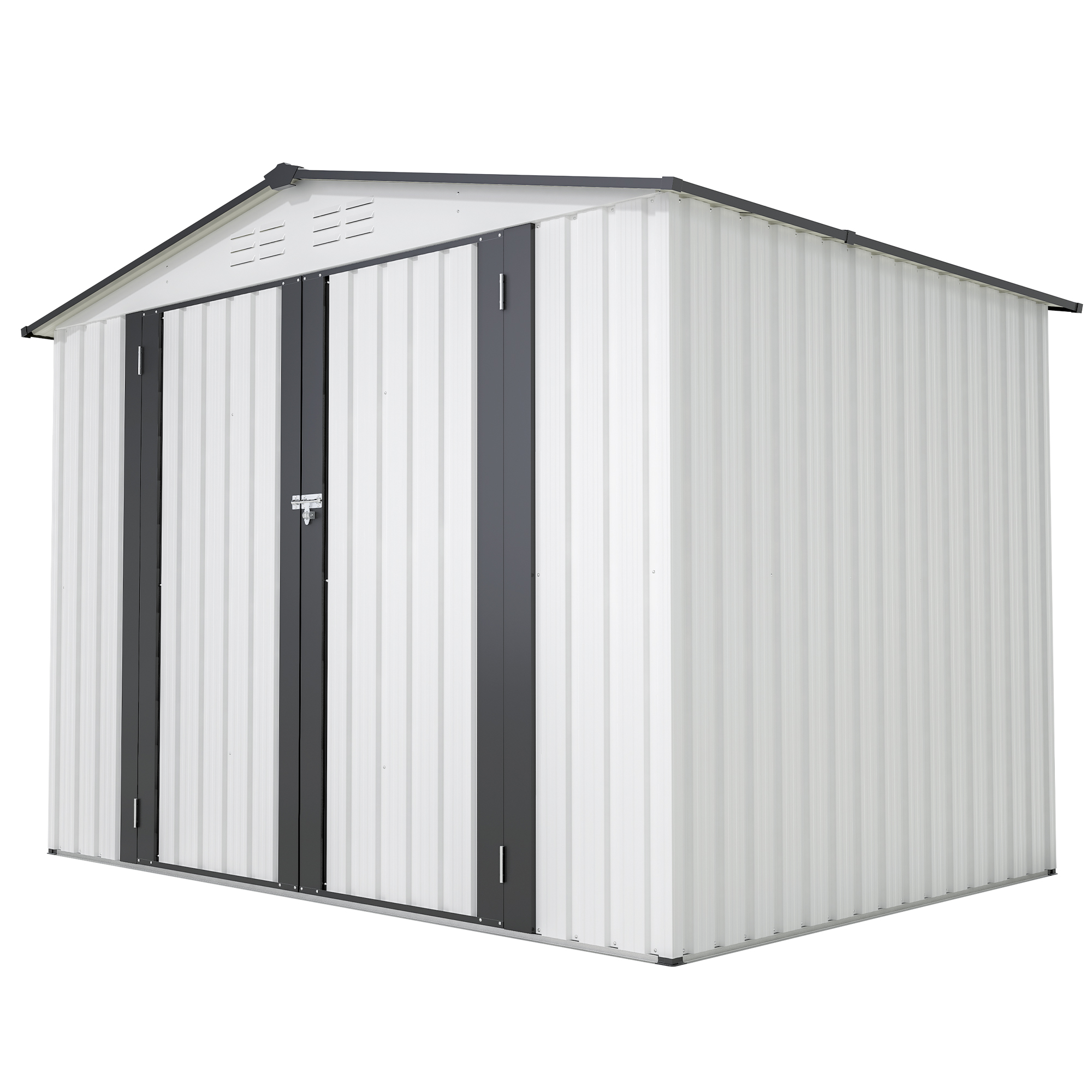 8 X 6 Ft Outdoor Storage Shed, All Weather Metal Sheds With 2 Lockable Doors, Tool Shed For Garden, Backyard, Lawn,White