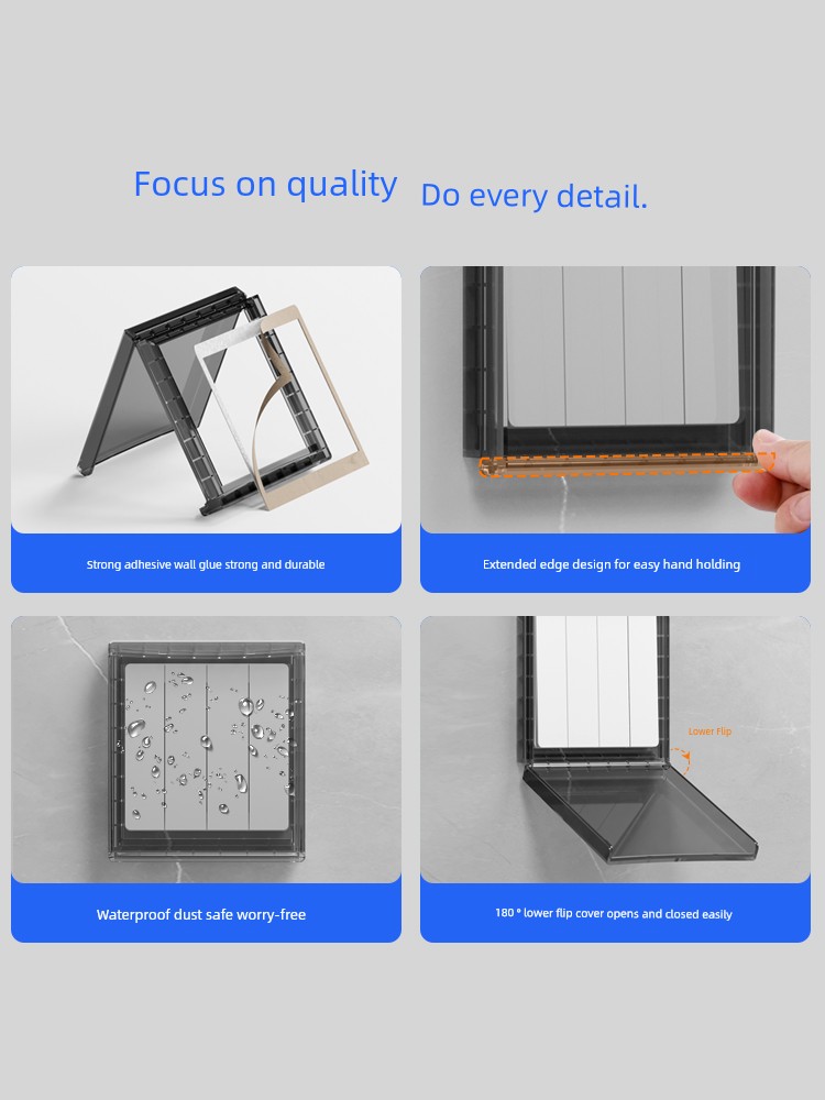 86-Type Bathroom Bath Heater Waterproof Switch Case Ultra-Thin Lower Flip Waterproof Cover Adhesive Water Proof Cover for Switch Protective Cover