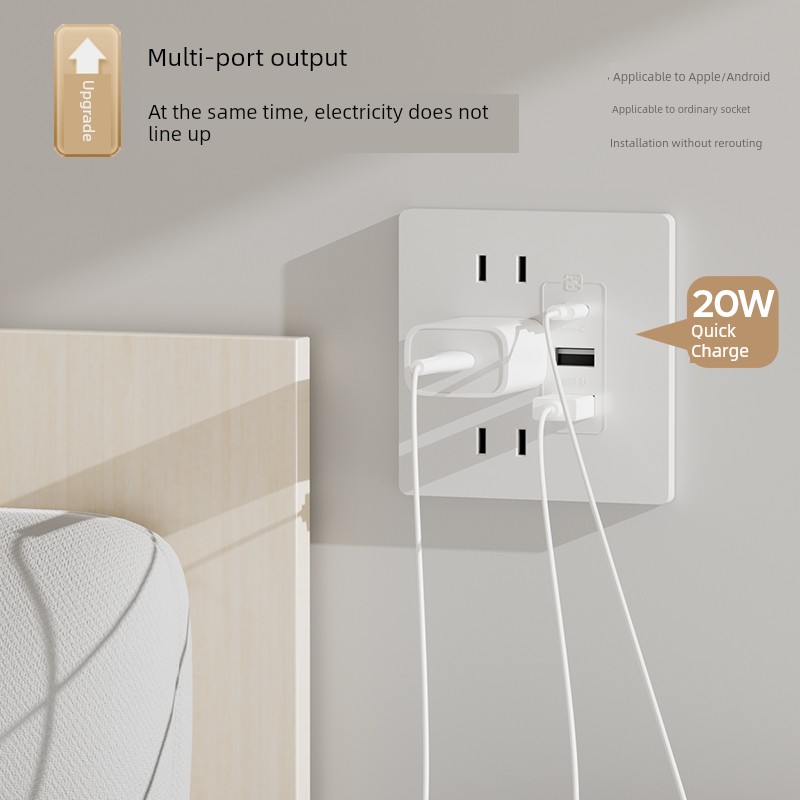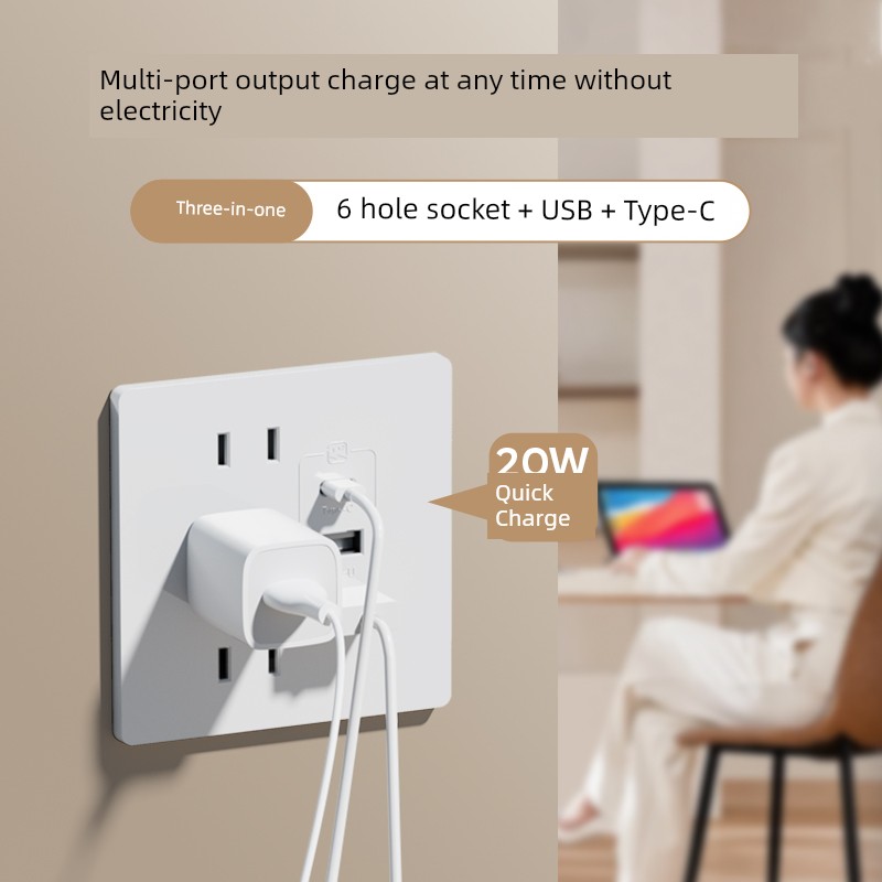 86-Type Concealed Five-Hole Six-Hole 20W Fast Charging USB Socket Switch Panel Wall Mobile Phone Charging Type-C For Home
