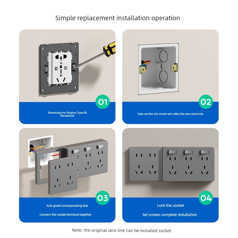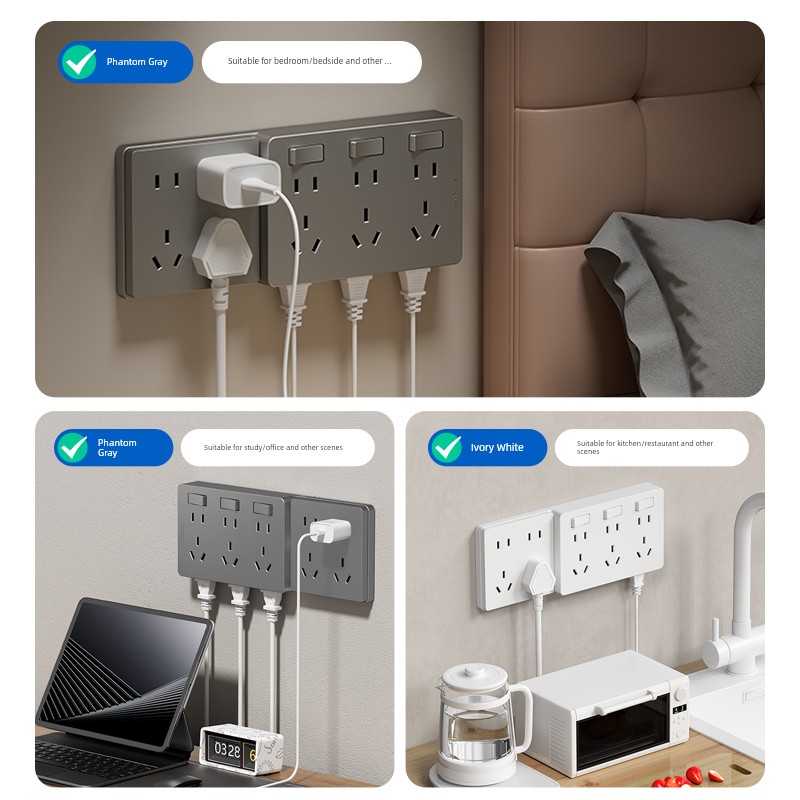 86-Type Extended Socket with Switch Extended Multi-Function Expansion Converter Porous Position Plug Cable Power Strip